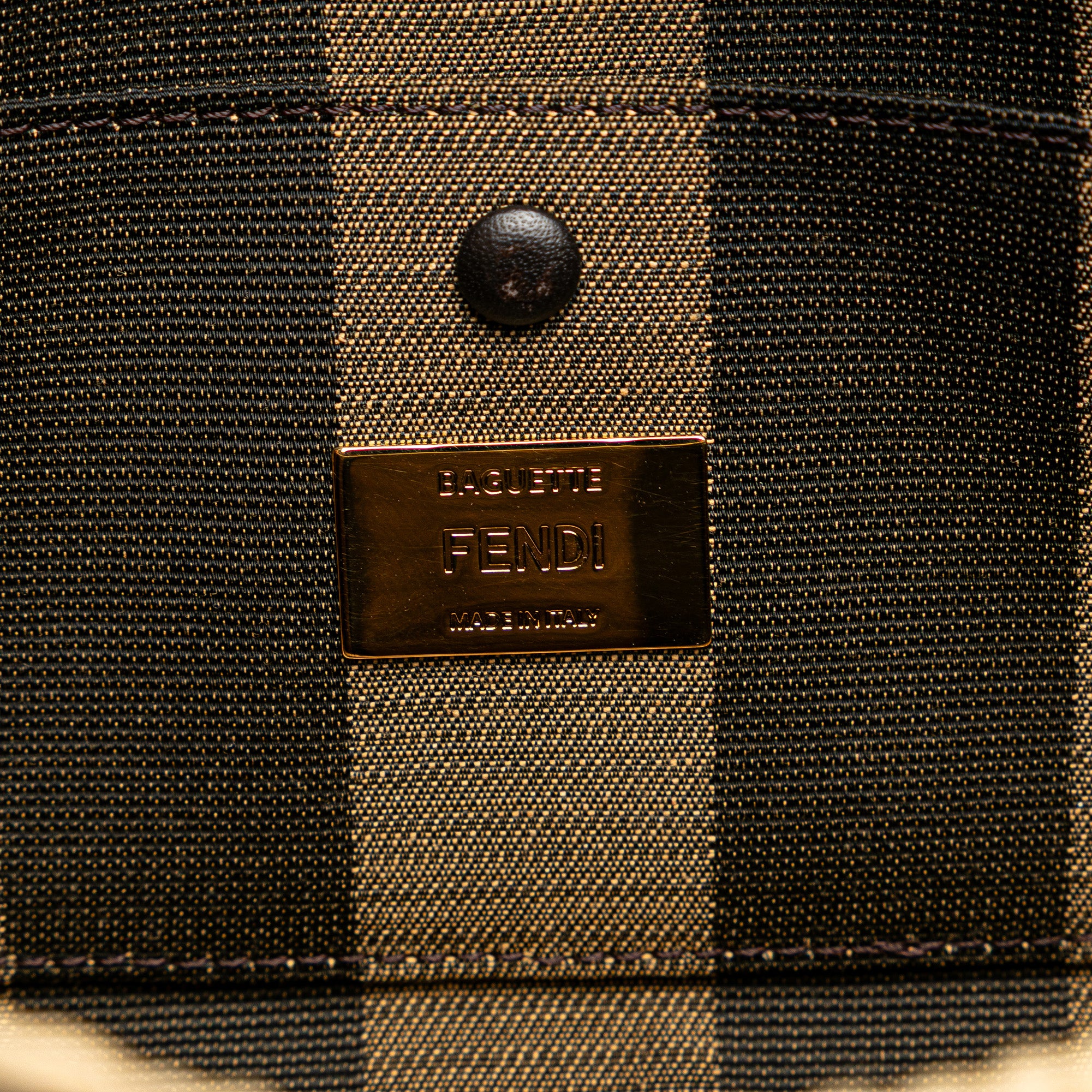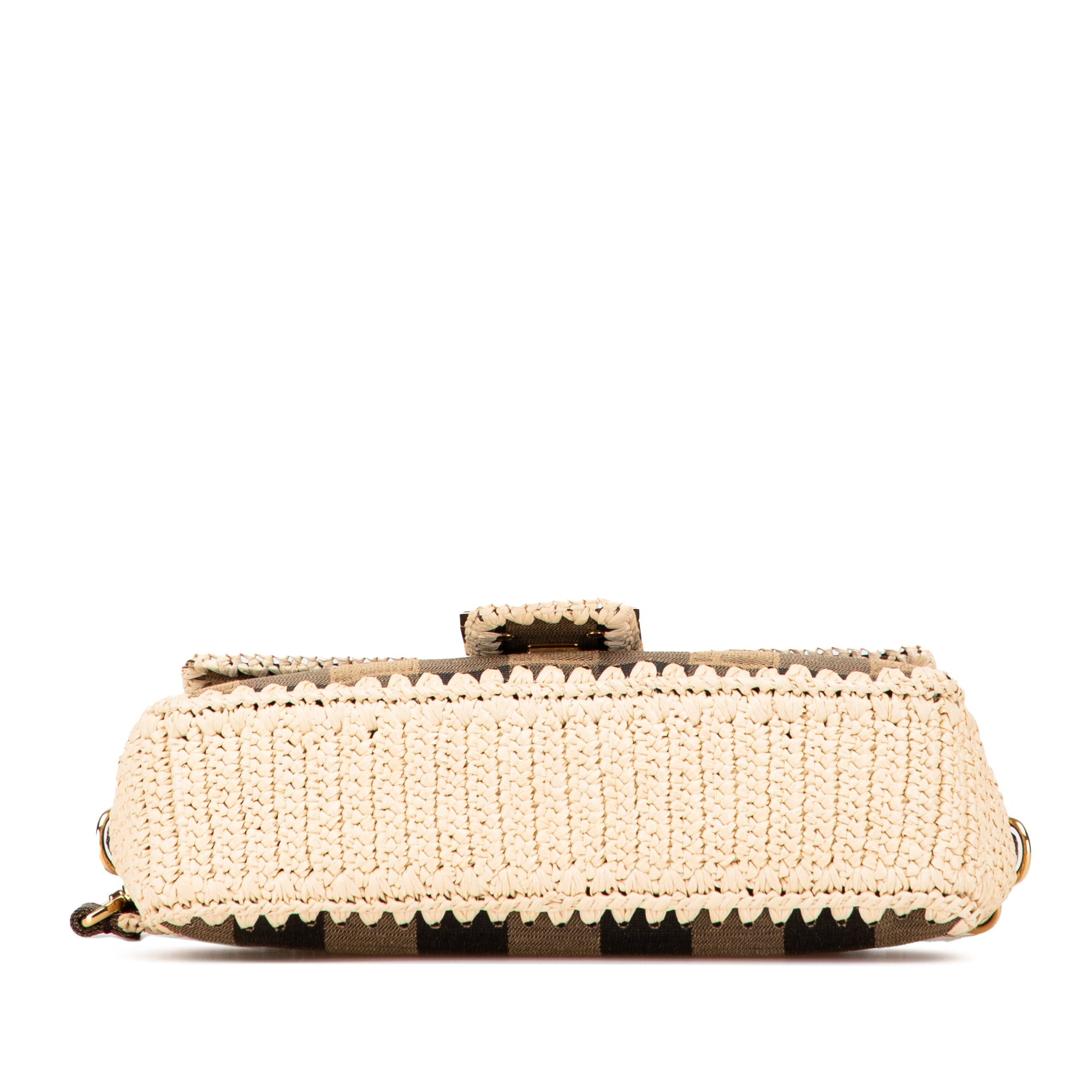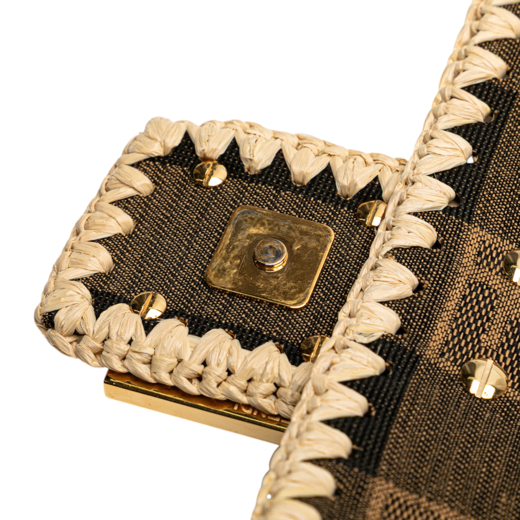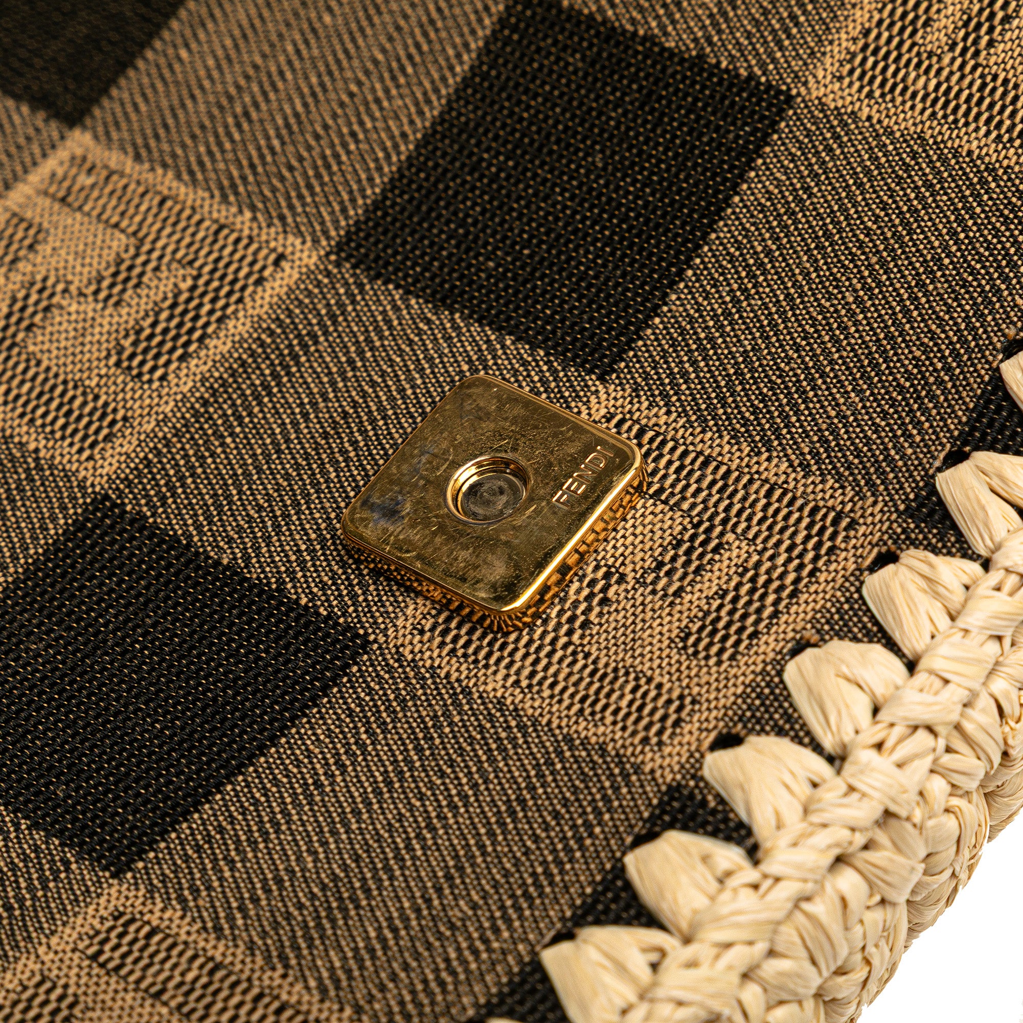 Fendi Pequin Gingham Canvas And Raffia Baguette Satchel