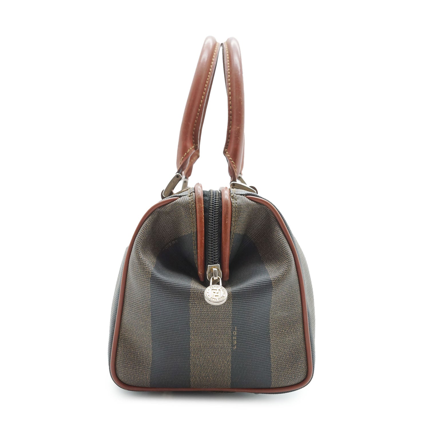 Pequin Mini Boston Bag Brown Canvas, LeatherDepth: 14.5cmHeight: 14cmWidth: 27cmHand Drop: 14.5cmCOutside Rank: BCInside Rank: BCDiscoloration: Visible hardware tarnish, some leather discoloration on the top handles overallScratch: Minor rubbing along the leather pipingPeeling: Minor leather crack on the inside, some powdering throughout the insideWorn: In general, previous use evidentOdor: Slight storage smellTear: Small tear on the canvas on one sideMissing: Shoulder strap missingSKU: 7070132