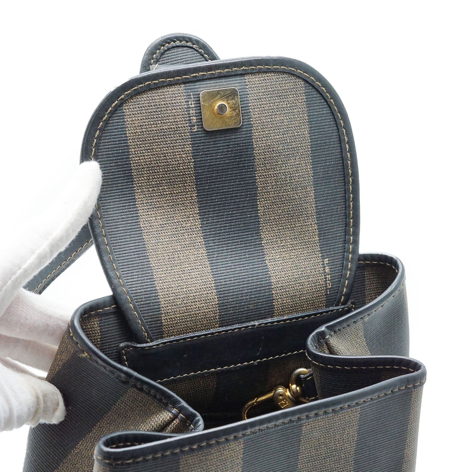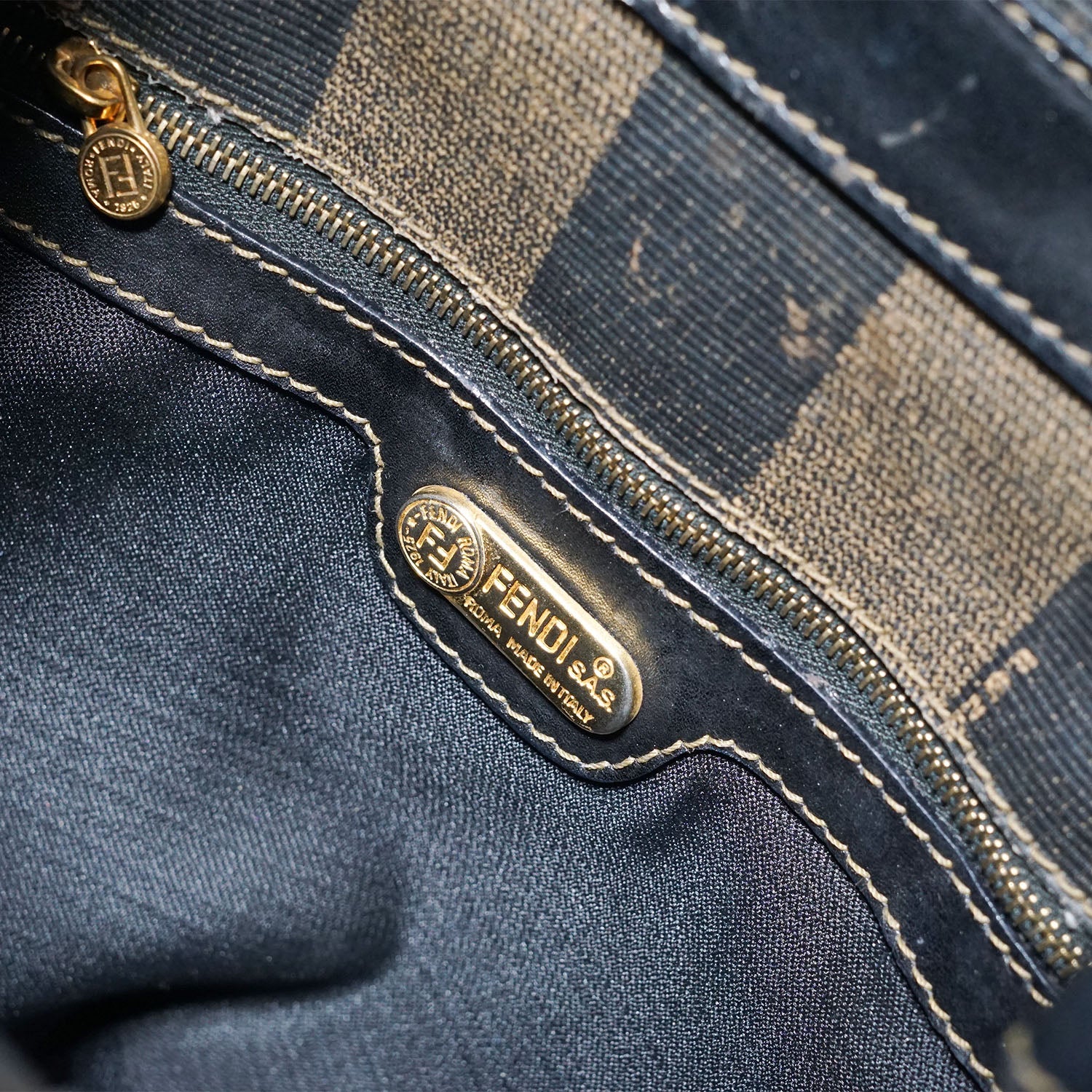 Pequin One Shoulder Bag Brown/Black Canvas, LeatherDepth: 15.5cmHeight: 29cmWidth: 21cmWidth at Top: 16cmShoulder Drop: 55cmOutside Rank: BInside Rank: BDiscoloration: Slight hardware tarnishScratch: Some scratches on the inside (under the flap), slight rubbing along the leather piping on the front flapPeeling: Slight leather creasing along the strapSerial code: 13-B 14559 07