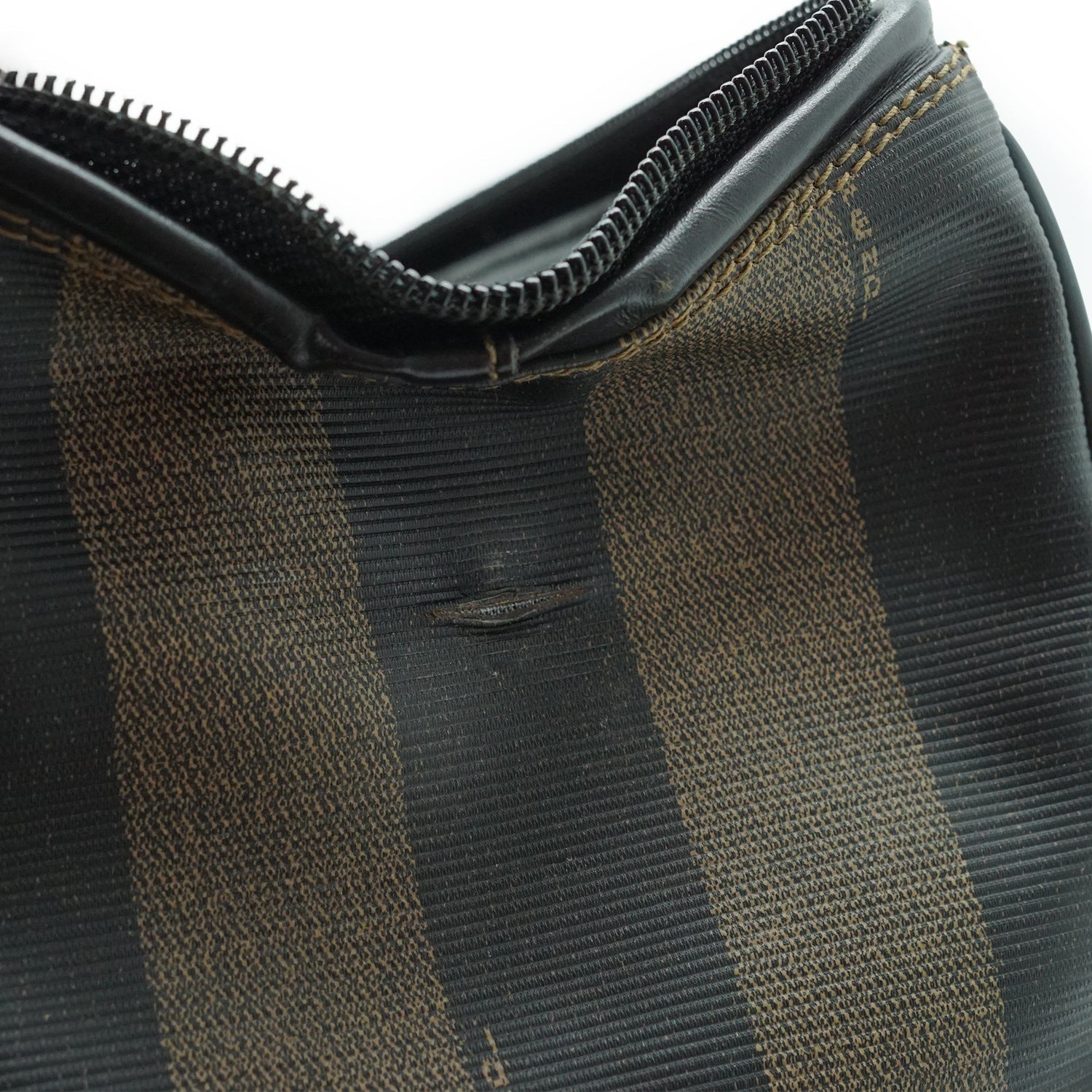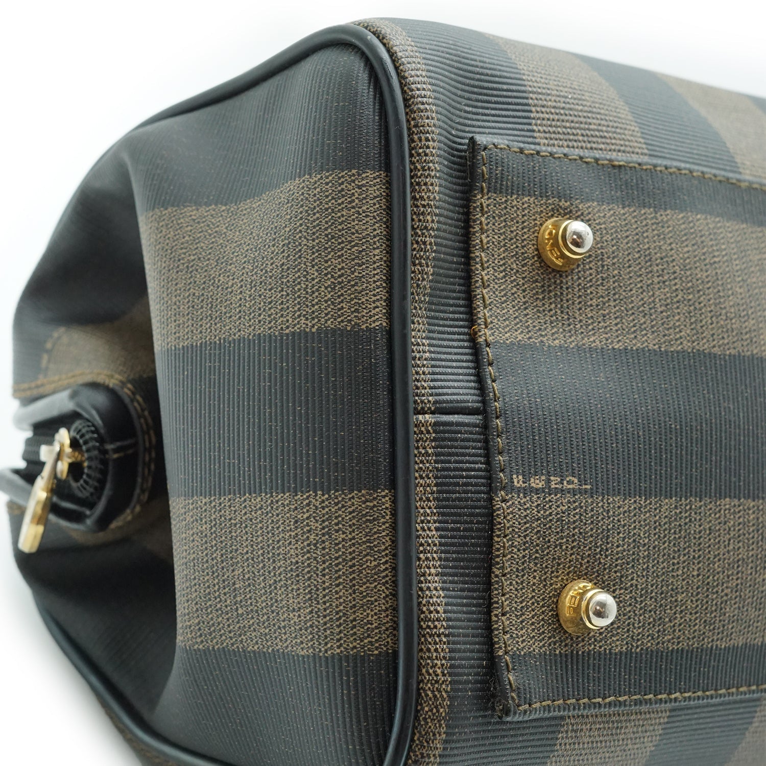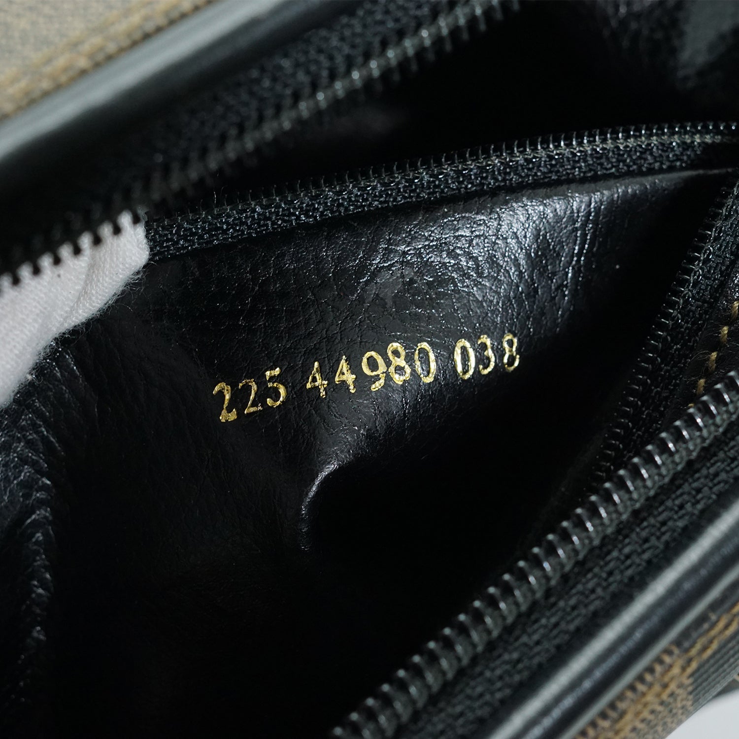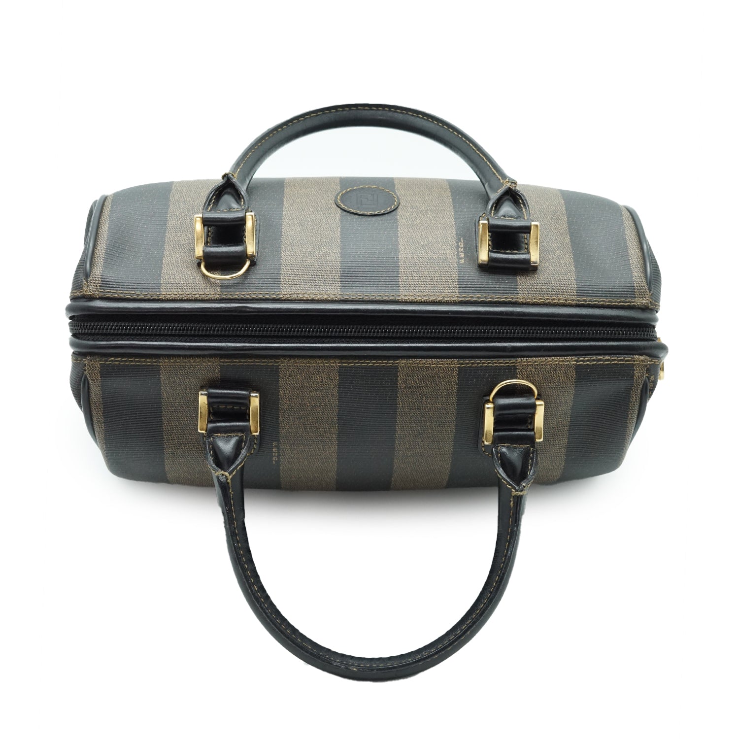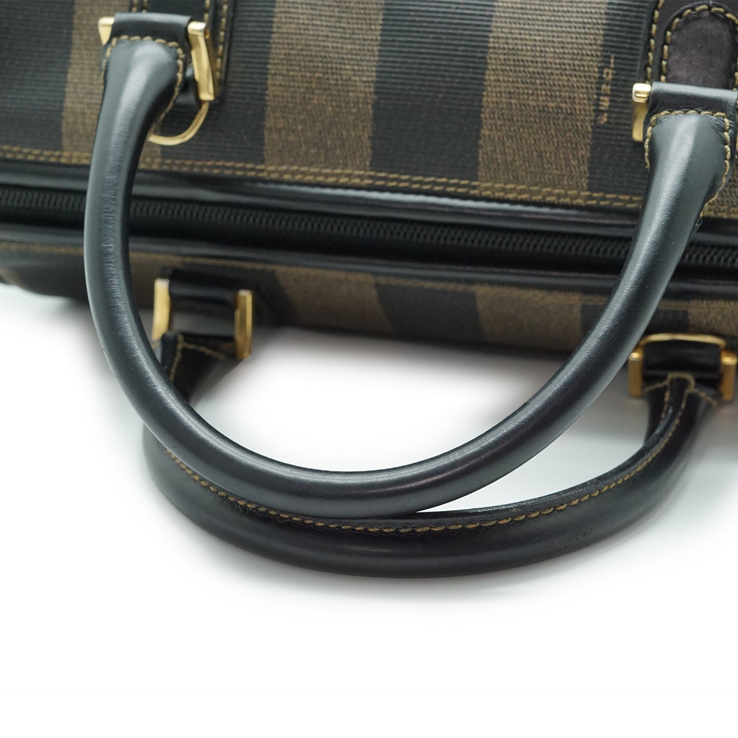 Pequin Small Boston Bag Brown/Black Canvas, LeatherDepth: 14.5cmHeight: 16cmWidth: 27cmHand Drop: 11cmDiscoloration: Some hardware tarnish, some leather discoloration on the insidePeeling: Some creasing and minor peeling on the insideTear: Minor tear on one sideMissing: Leather shoulder strap missingSerial code: 225 44980 038