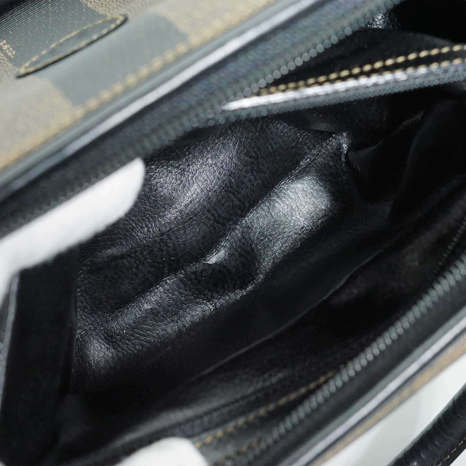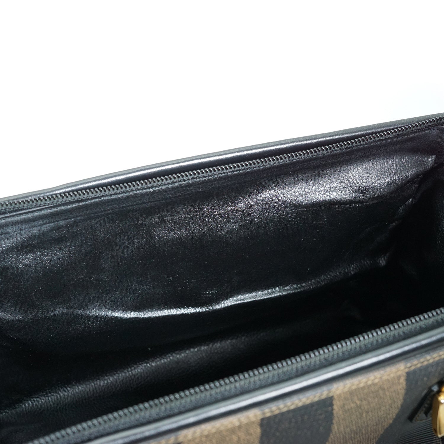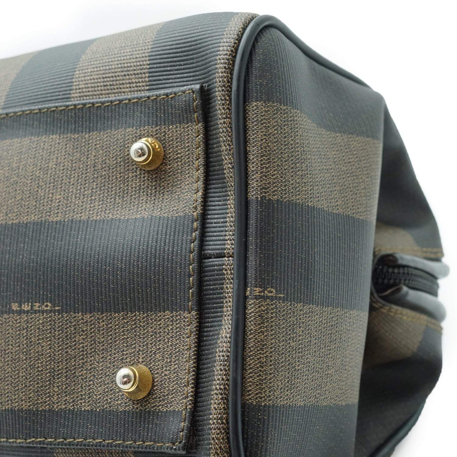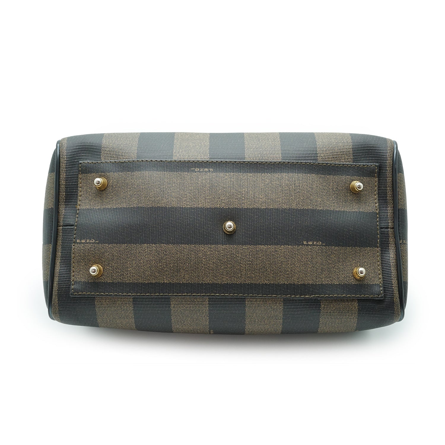 Pequin Small Boston Bag Brown/Black Canvas, LeatherDepth: 14.5cmHeight: 16cmWidth: 27cmHand Drop: 11cmDiscoloration: Some hardware tarnish, some leather discoloration on the insidePeeling: Some creasing and minor peeling on the insideTear: Minor tear on one sideMissing: Leather shoulder strap missingSerial code: 225 44980 038