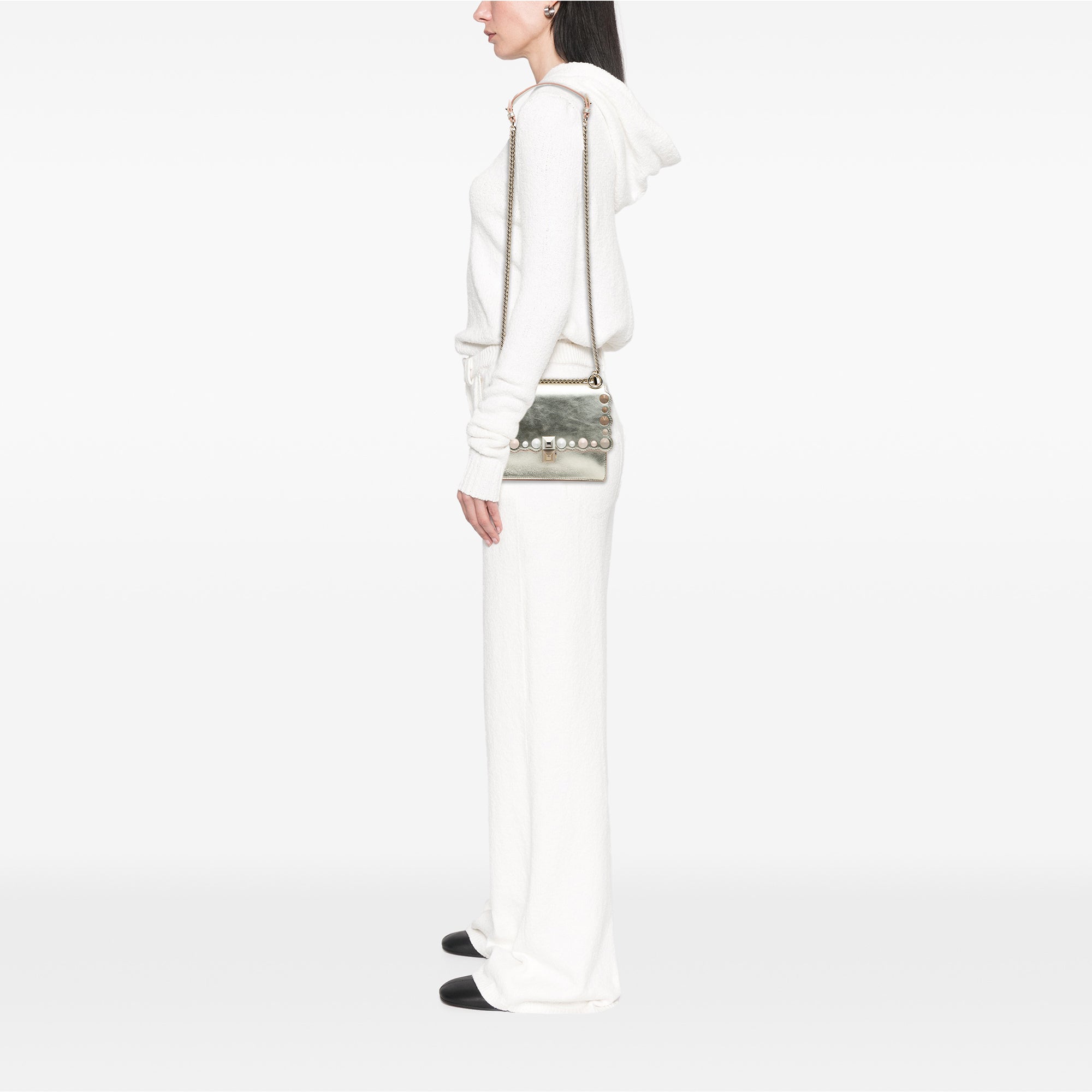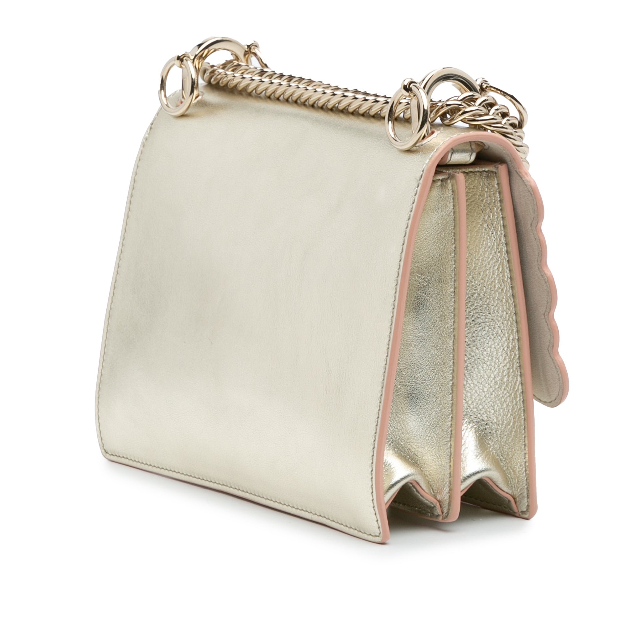 Fendi Small Scalloped Metallic Calfskin Studded Pearl Kan I Crossbody