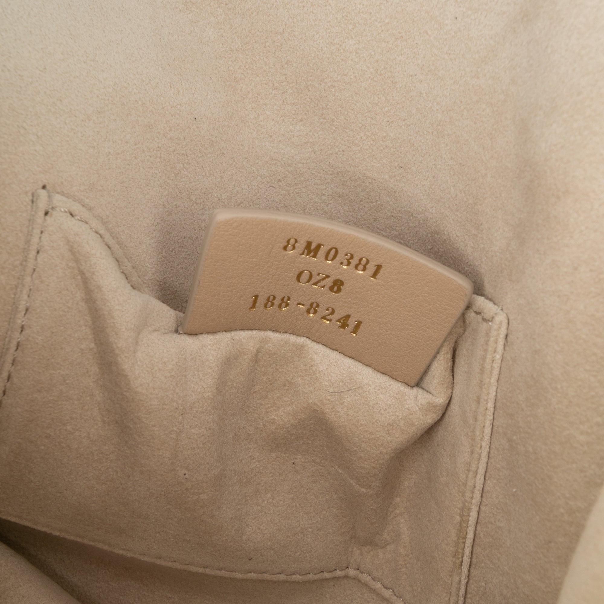 This crossbody bag features a leather body with faux pearl details, a chain link shoulder strap with leather guard, a front flap with a push lock closure, and an interior slip pocket. Inclusion: Dust bag. Retail Price: 1890.00