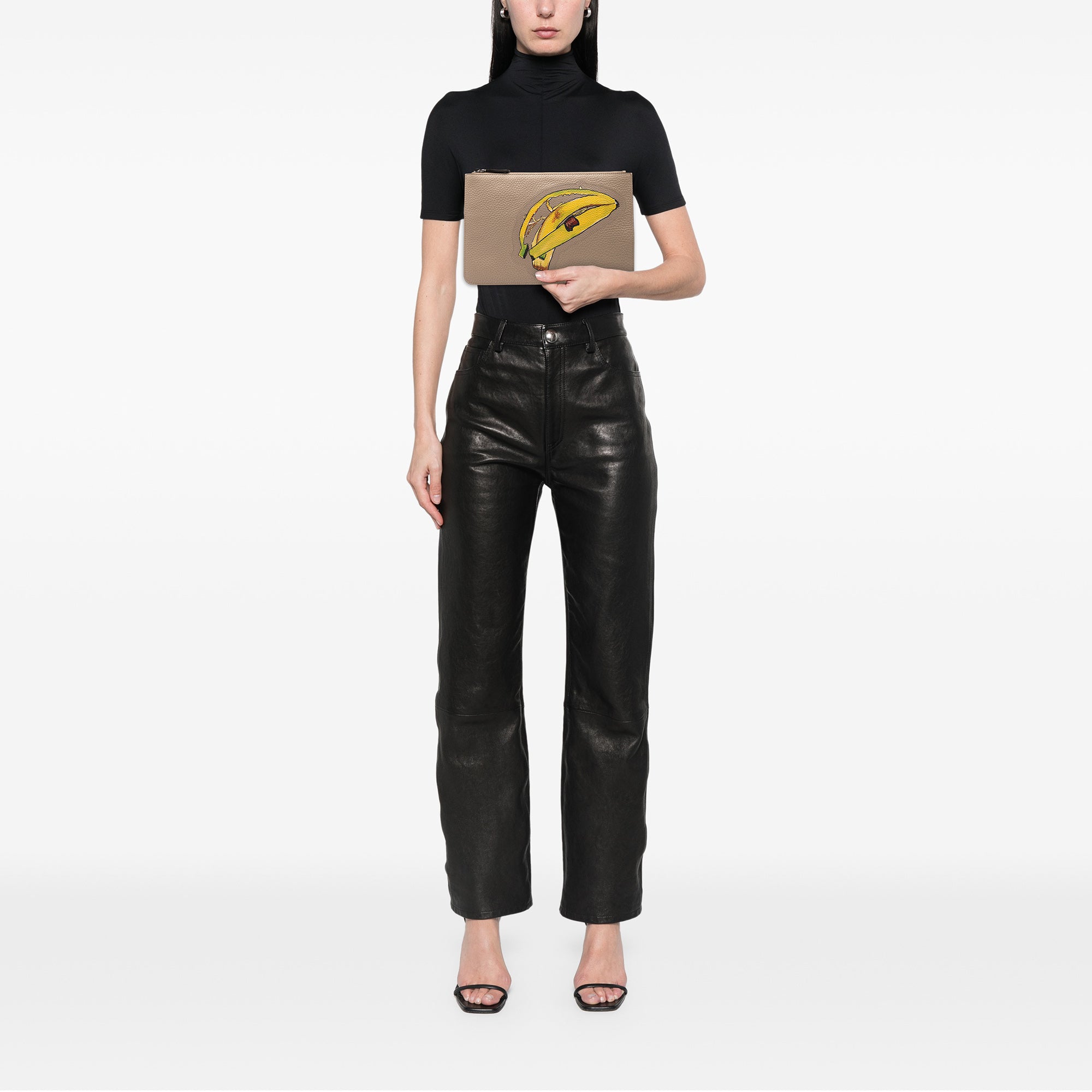 Fendi Sue Tilley Leather Banana Zip Clutch