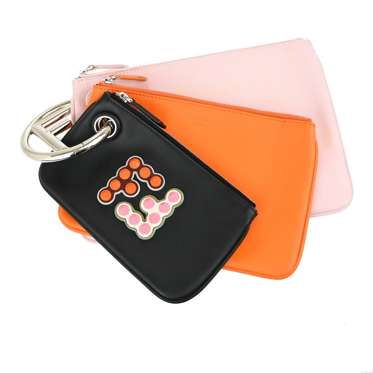 Brand : Fendi Model : Triplette Pouch Set Style : Calfskin Serial number : 8BS001 A0YK 188-0059 Inclusions : Ring,Dust bag