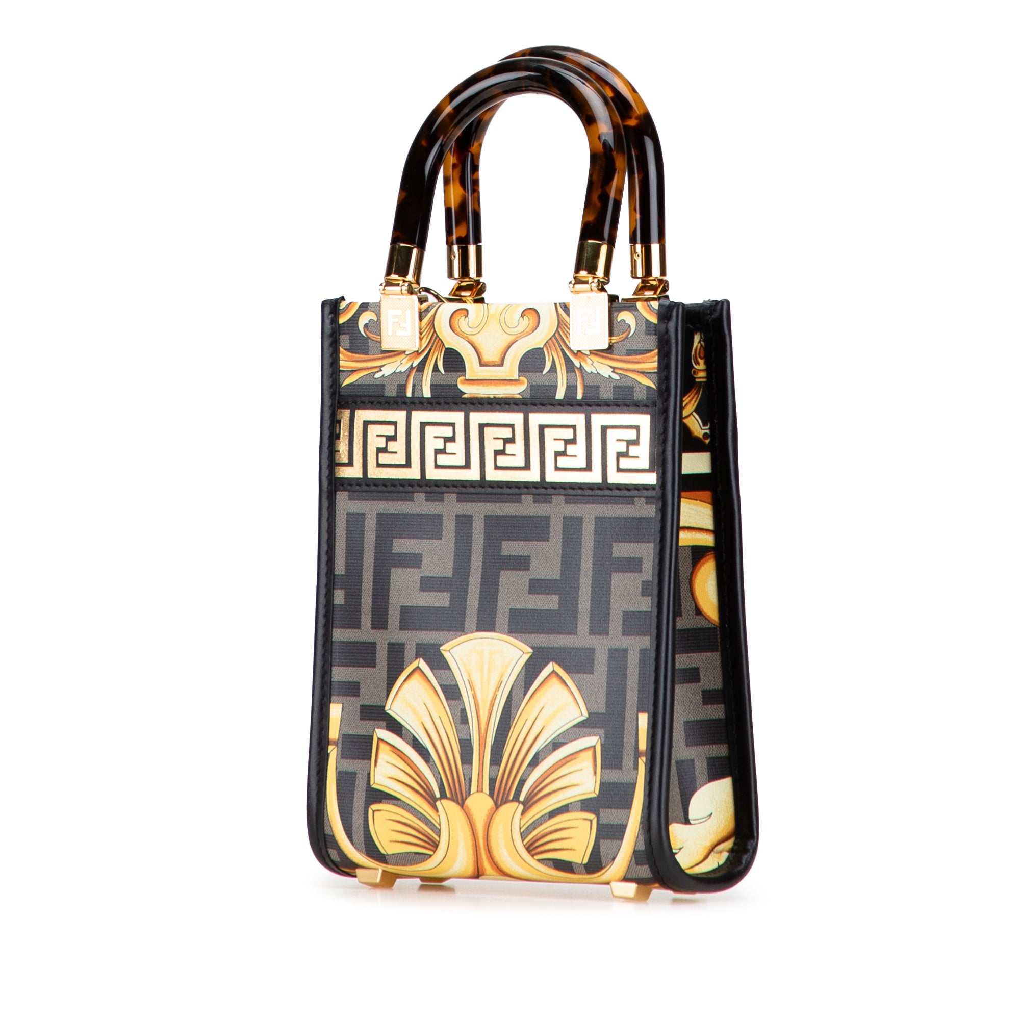 Fendi Versace Fendace Mini Calfskin Baroque Print Sunshine Shopper Tote