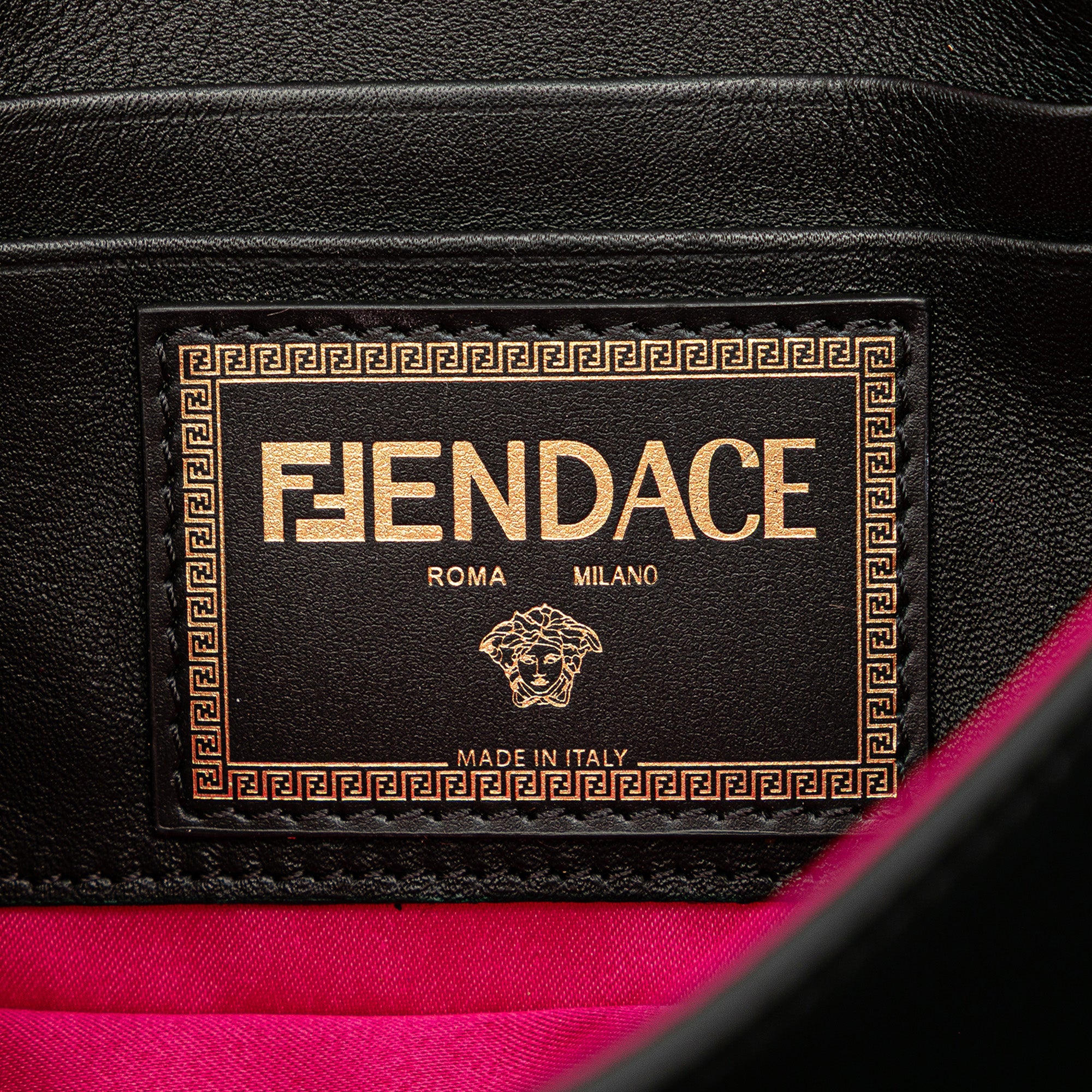 Fendi Versace Vitello Seta Fendace Mini Brooch Baguette Satchel