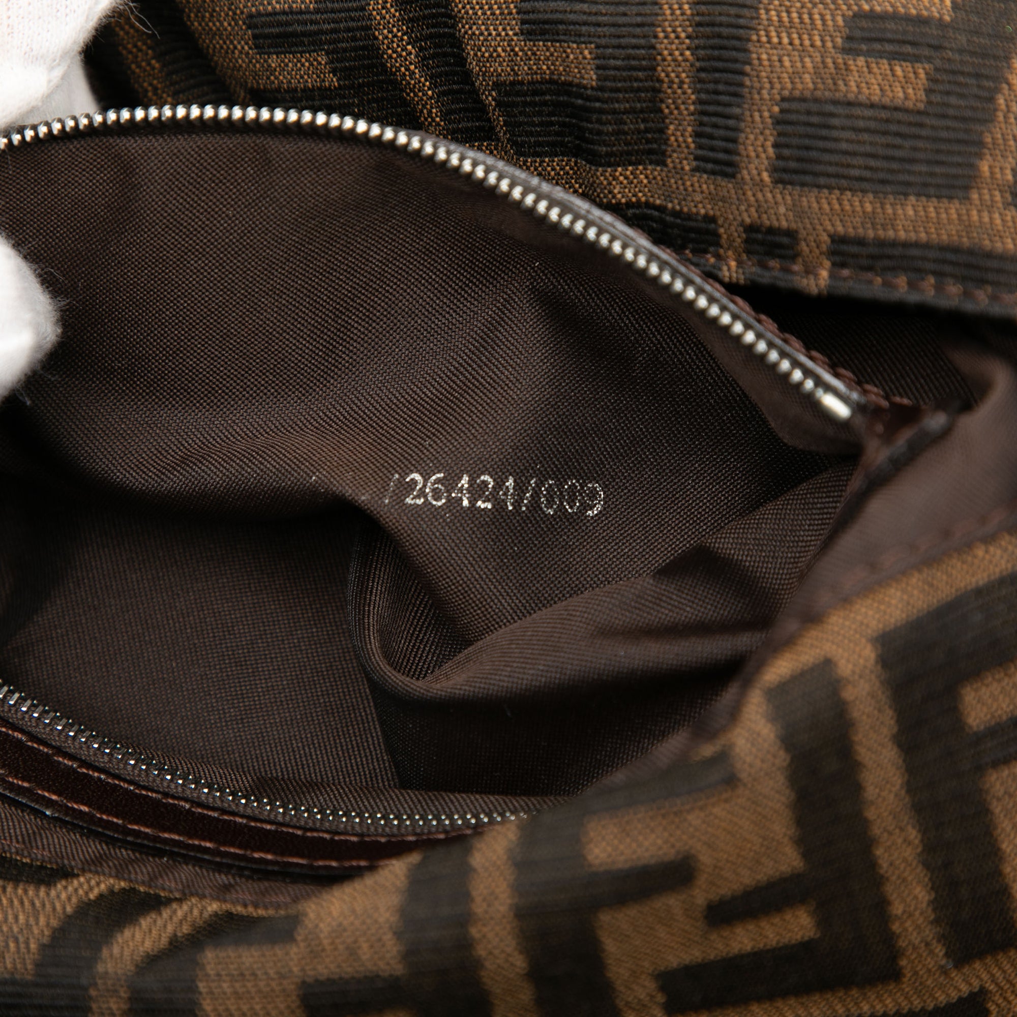 The Baguette features a canvas body, a flat leather strap, a front flap with a flat leather strap and magnetic snap closure, and an interior zip pocket. Retail Price: 1911.00