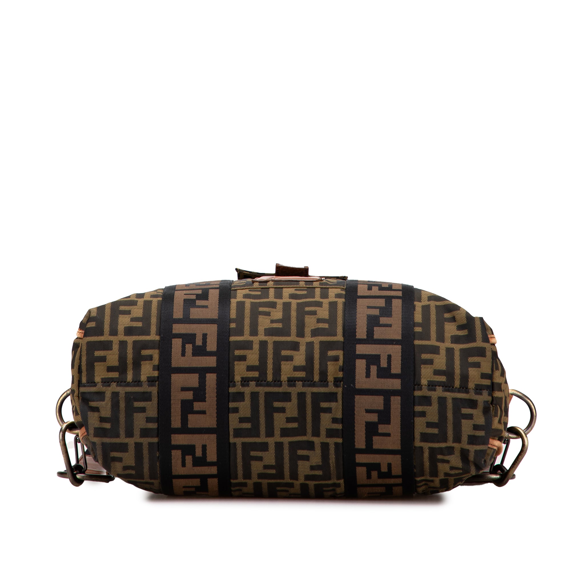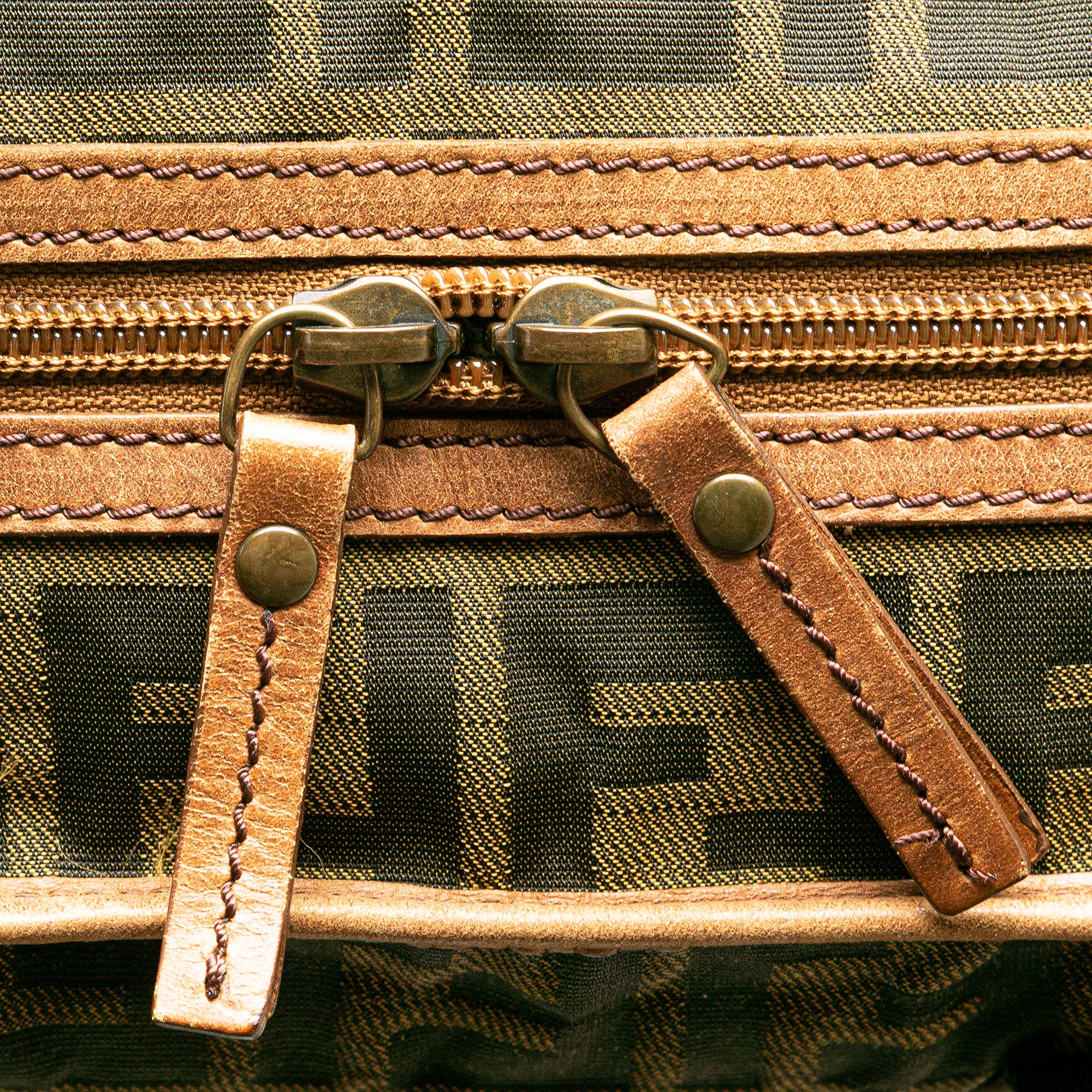 This satchel bag features a canvas body with leather trim, flat top handles, a detachable flat canvas shoulder strap, a top zip closure, and an interior slip pocket. Retail Price: 600.00