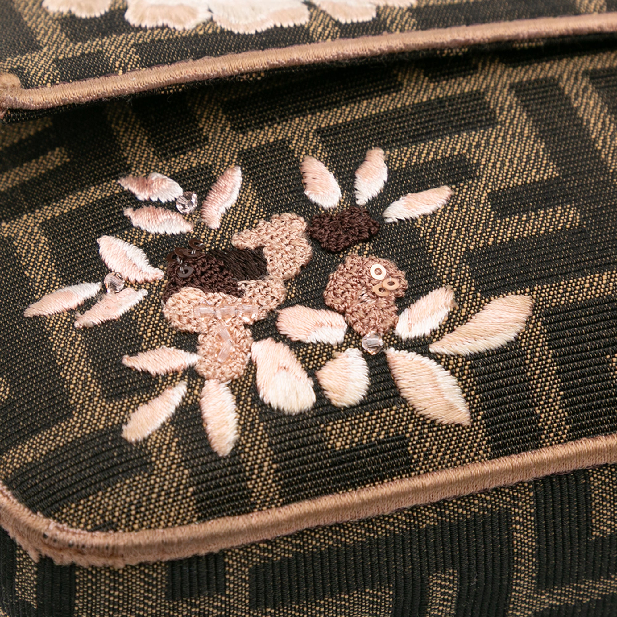 Fendi Zucca Canvas Paisley Embroidery Baguette Satchel