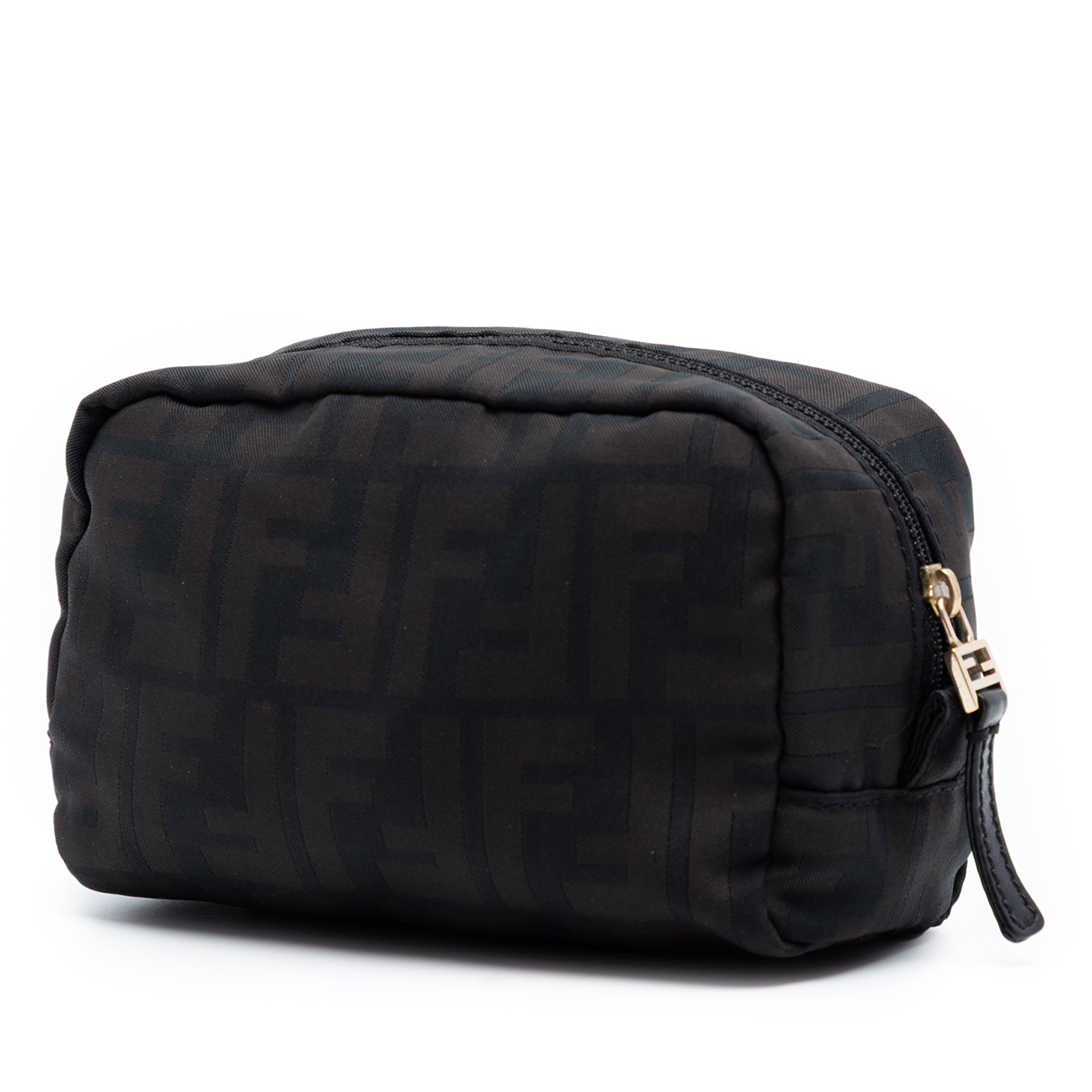This pouch features a canvas body, and a top zip closure. Retail Price: 375.00