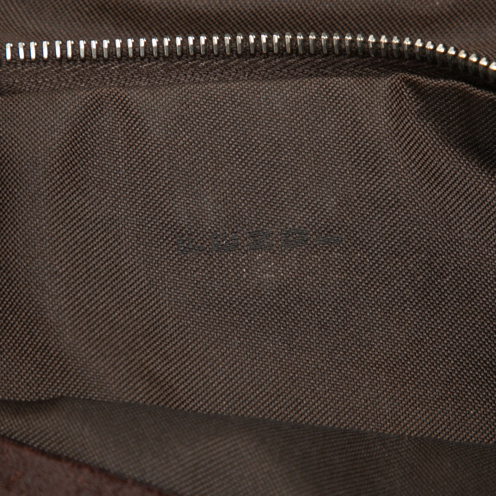 This shoulder bag features a canvas body, an adjustable flat leather strap, an open top with magnetic snap closure, and an interior zip pocket. Inclusion: Dust bag. Retail Price: 990.00
