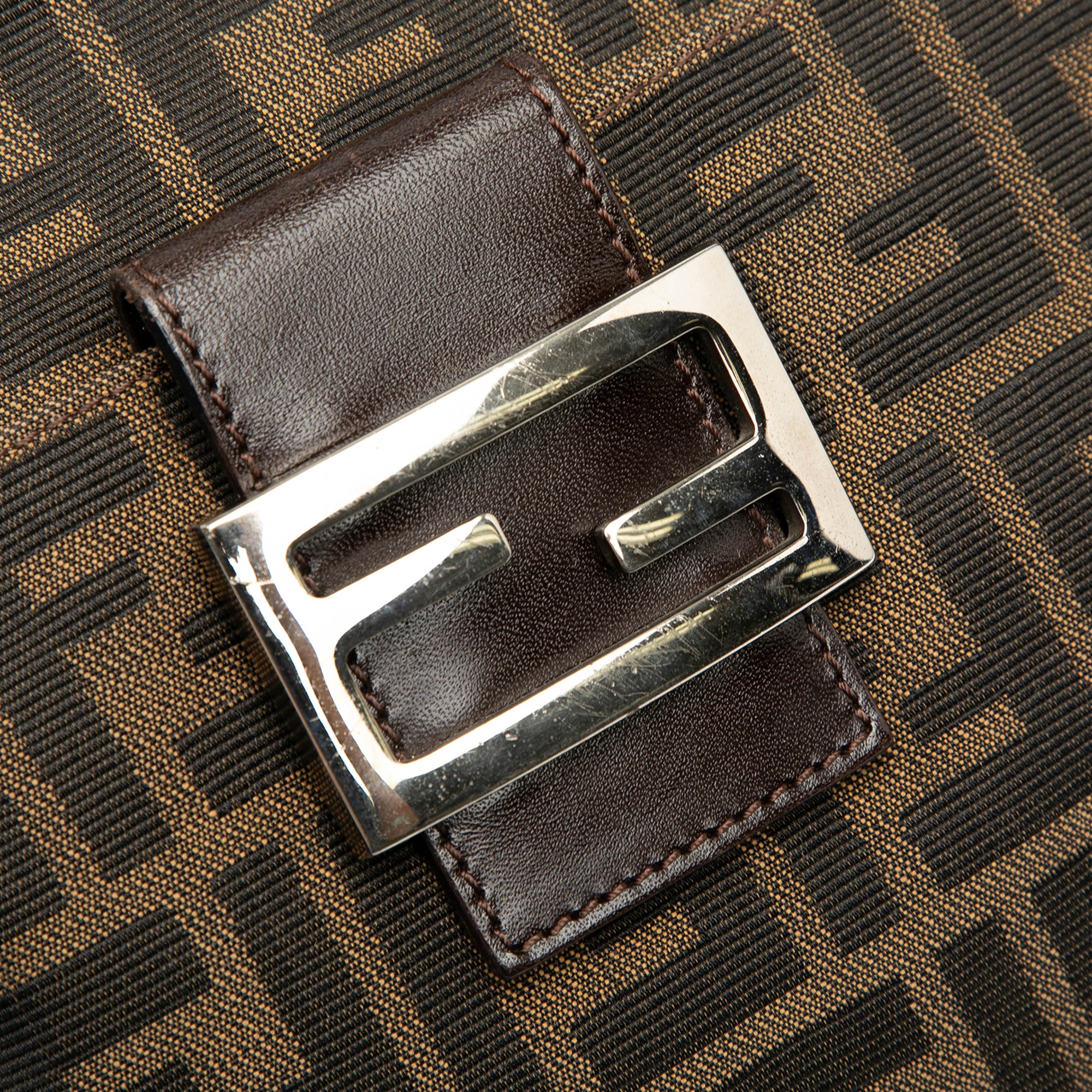 This shoulder bag features a canvas body, a flat leather strap, a top zip closure, exterior slip pocket with flat leather strap and magnetic closure, and an interior zip pocket. Inclusion: Dust bag. Retail Price: 1670.00