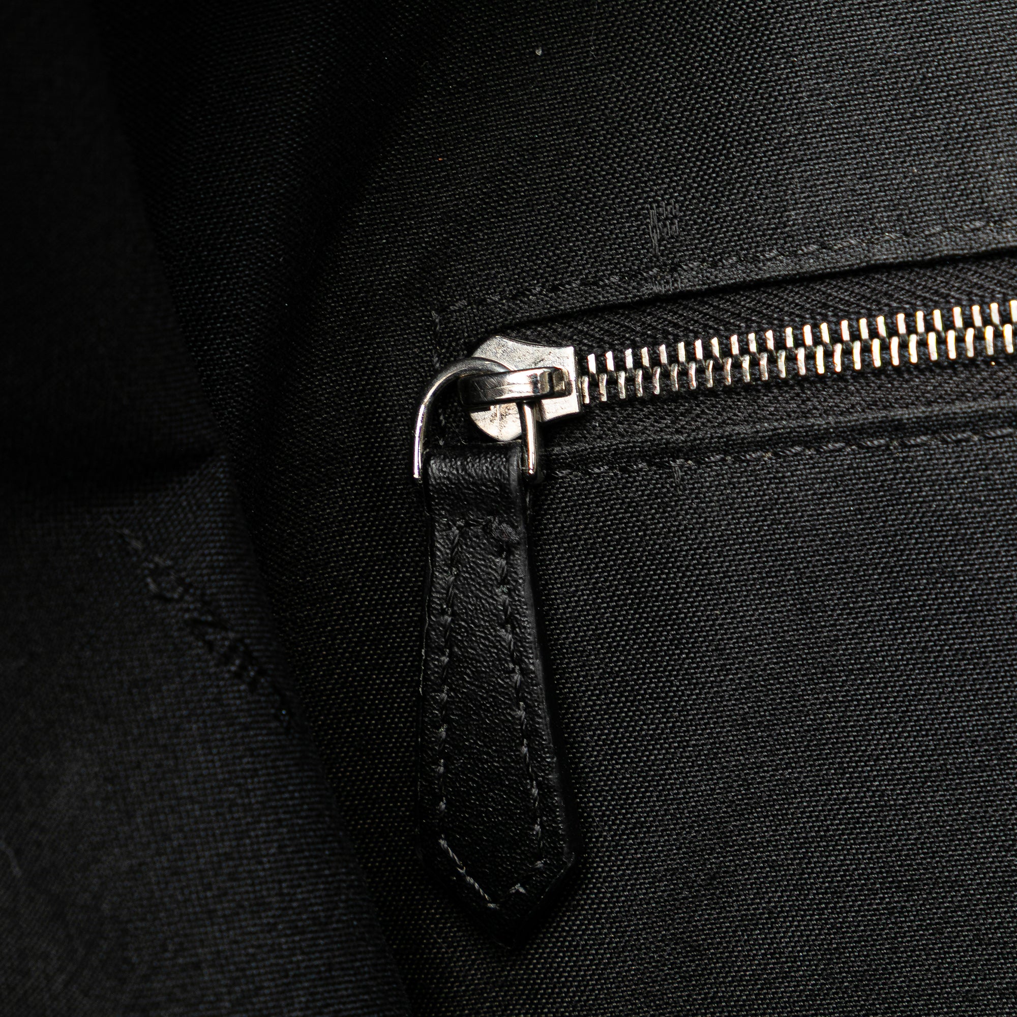 This tote bag features a coated canvas body, rolled leather handles, an open top, a detachable and adjustable flat canvas strap, and an interior zip pocket. Retail Price: 1690.00