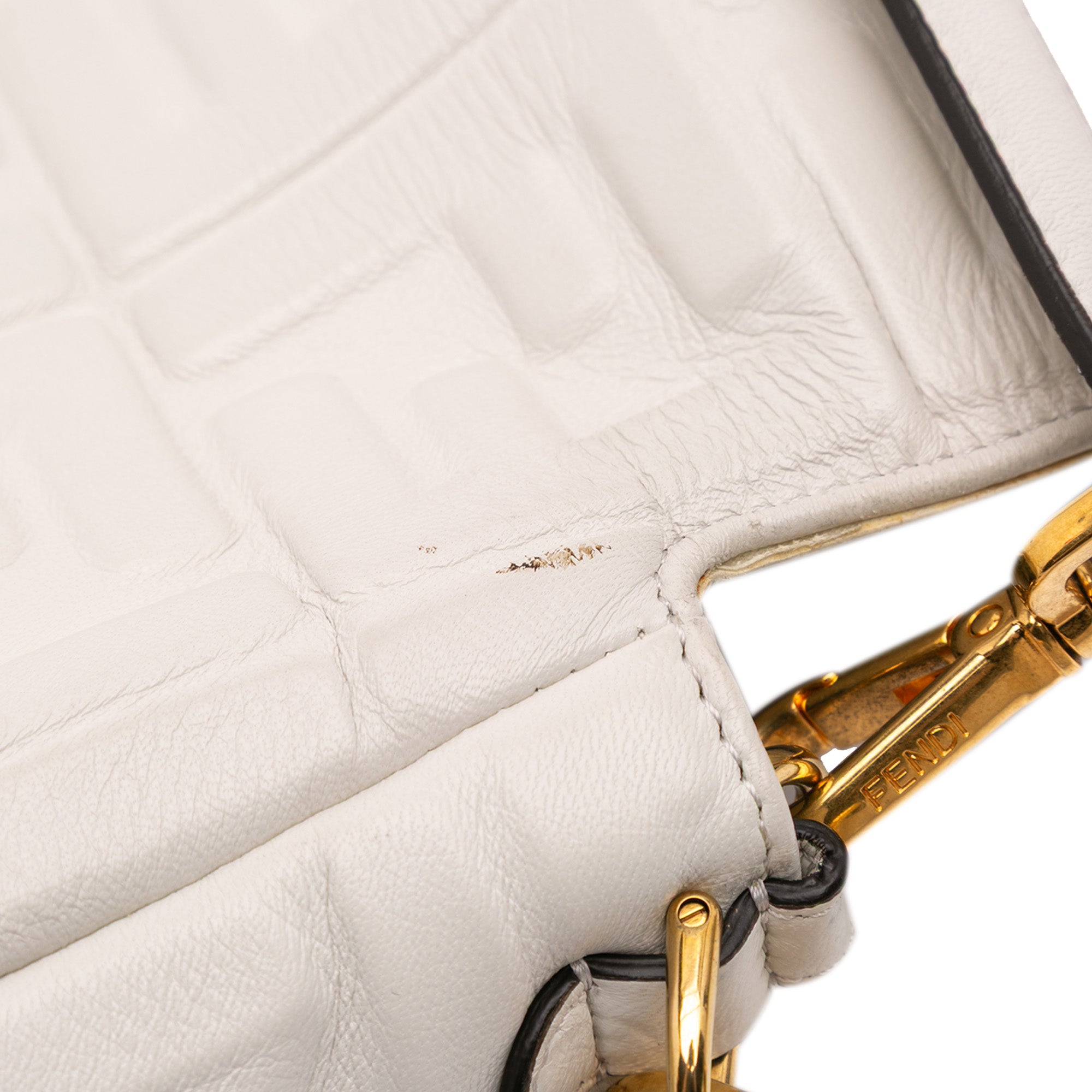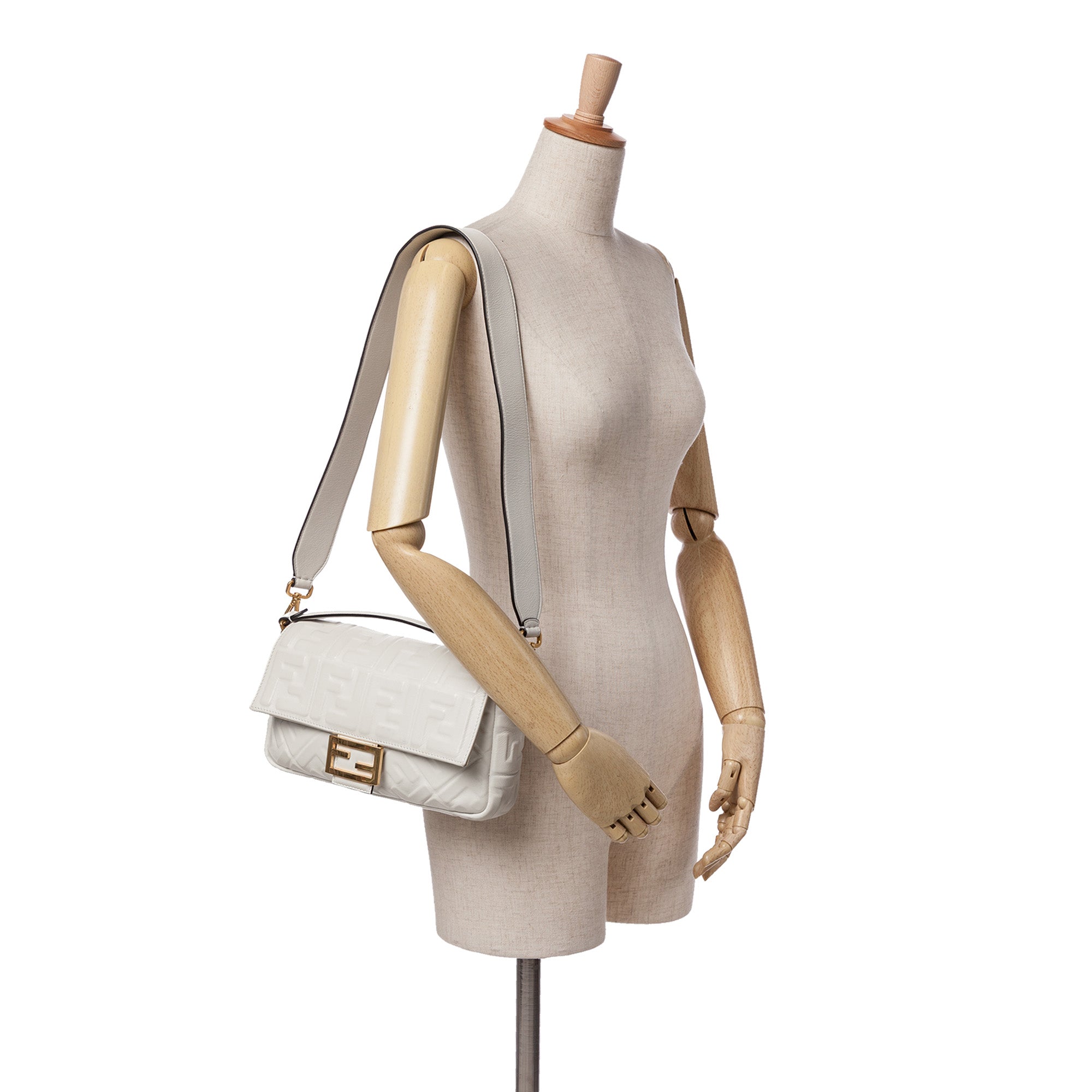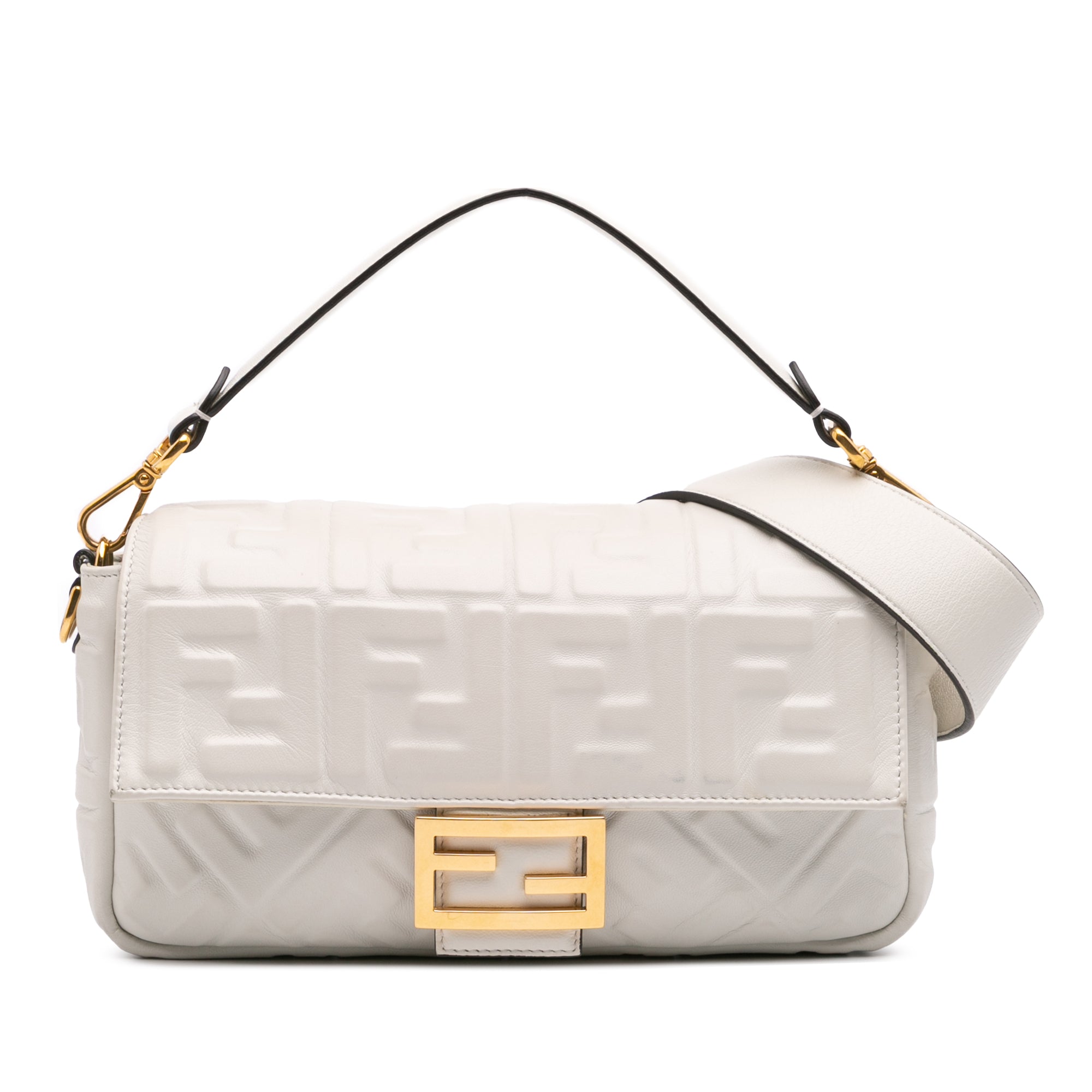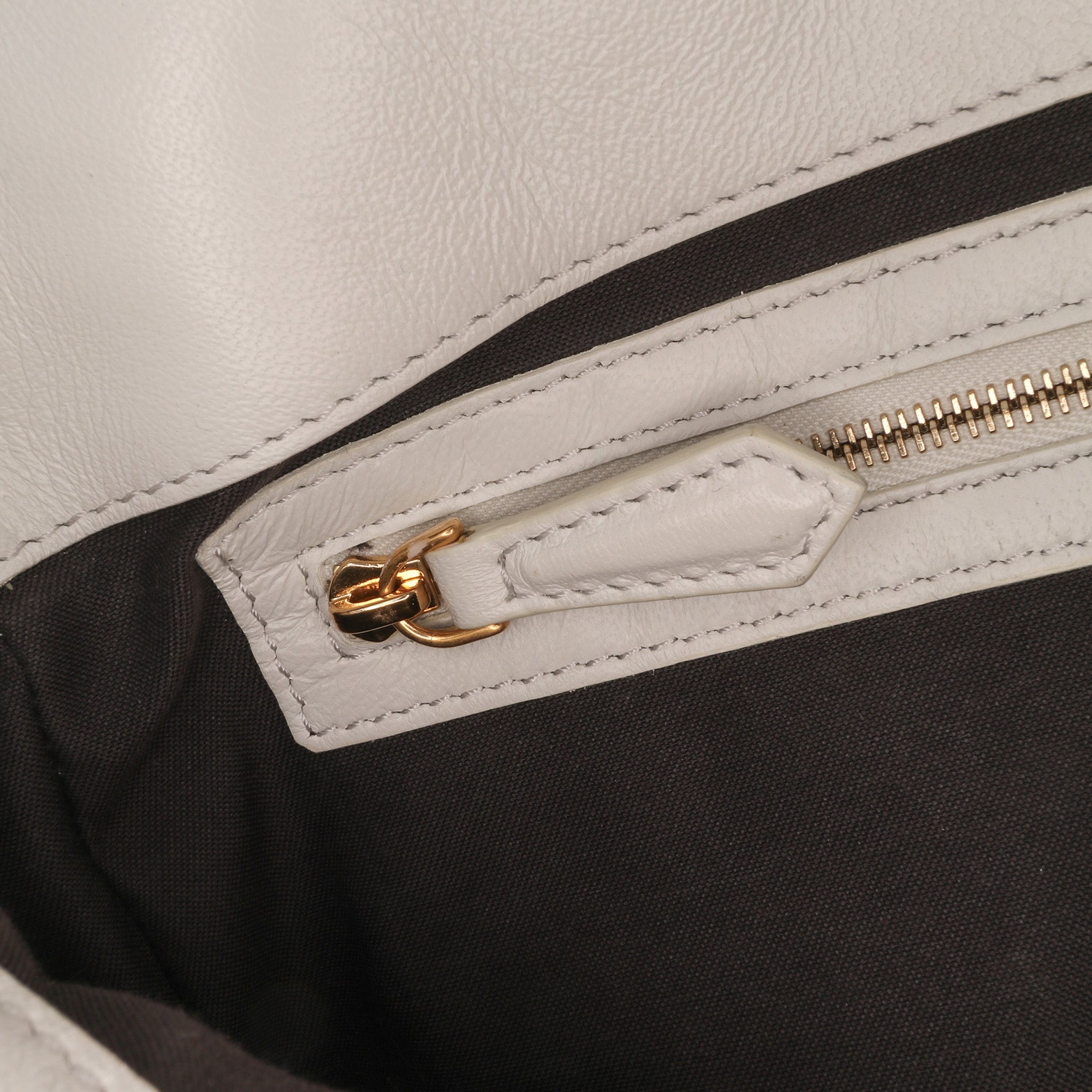 This satchel features an embossed leather body, a flat leather handle, a detachable flat leather strap, a front flap with magnetic snap closure, and an interior zip pocket. Inclusion: Dust bag. Retail Price: 3150.00