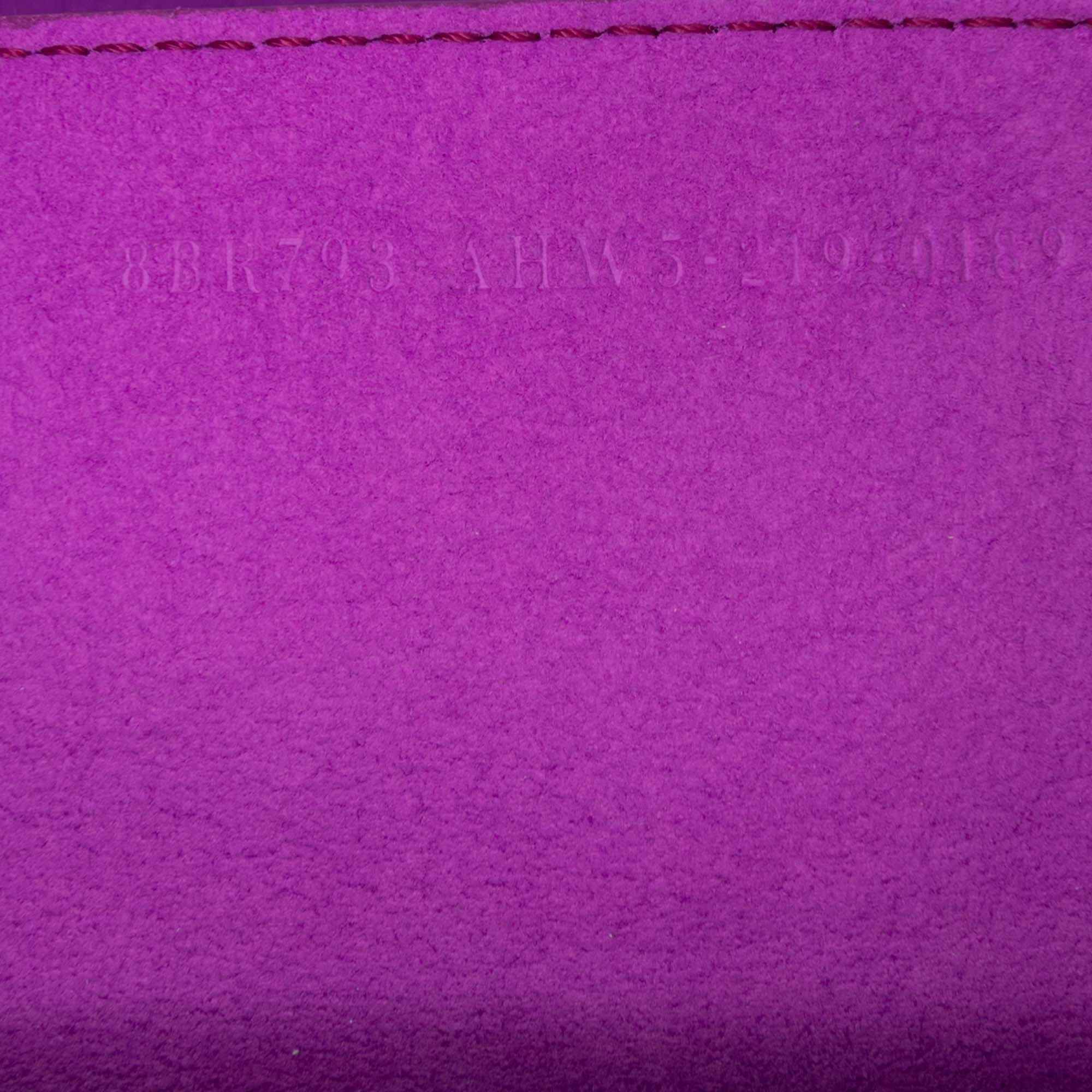 This shoulder bag features a canvas body, a flat top handle, chain link shoulder straps with leather guard, a flap with magnetic snap closure, and an interior slip pocket. Retail Price: 2480.00