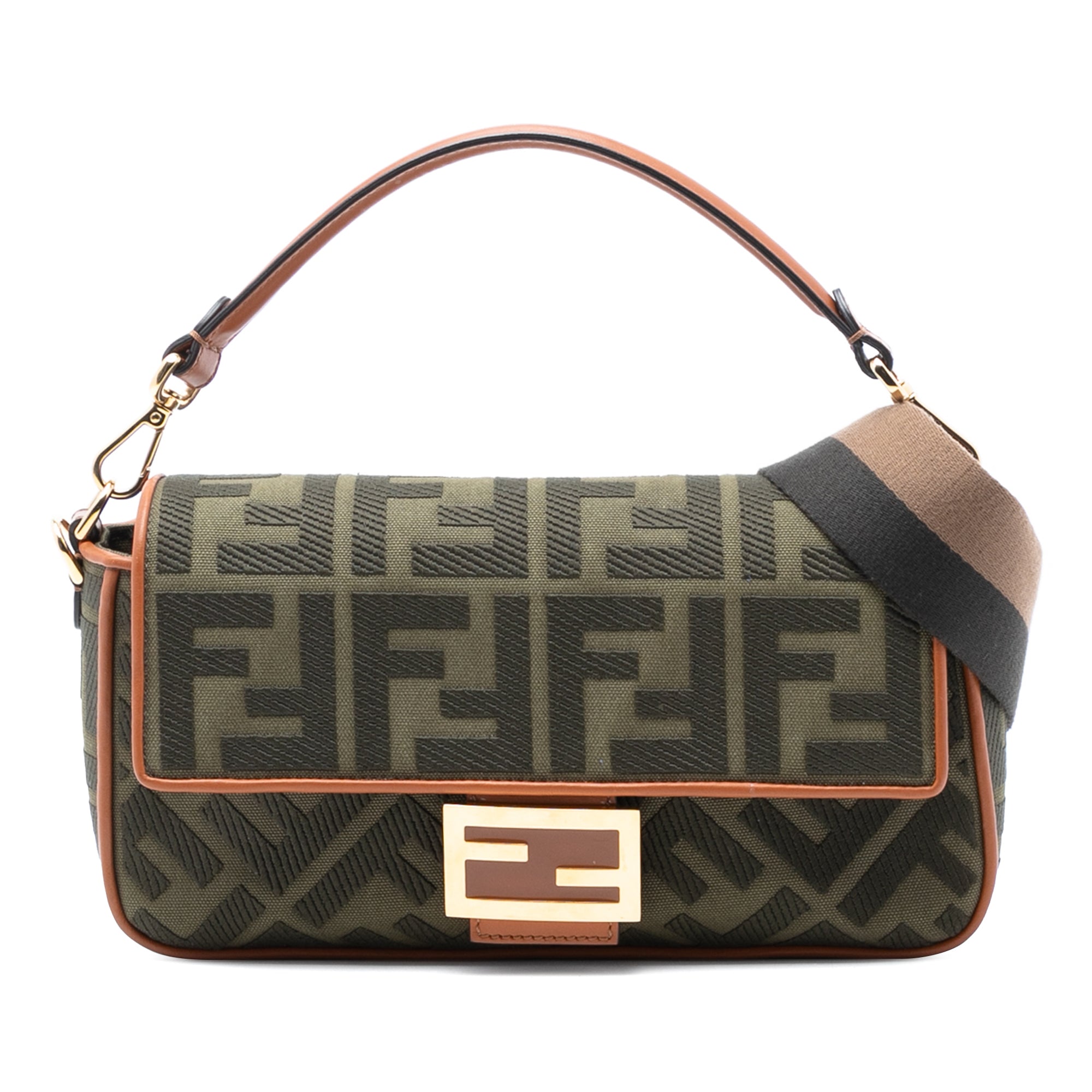 Fendi Zucca Embroidered Canvas Baguette Satchel