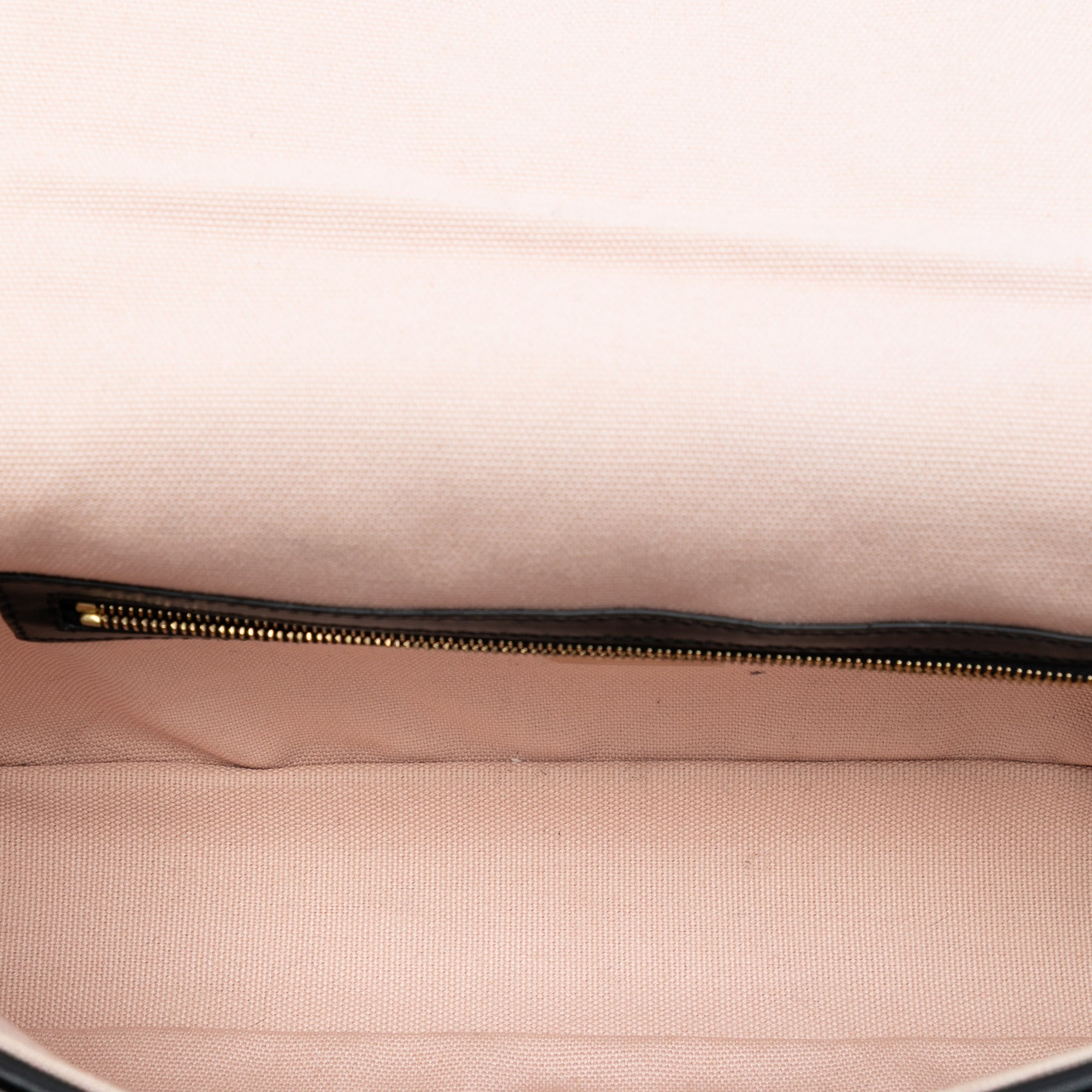 The Baguette features an embroidered canvas body with leather trim, a detachable leather top handle, a detachable canvas strap, a front flap with magnetic closure, and an interior zip pocket. Retail Price: 3500.00