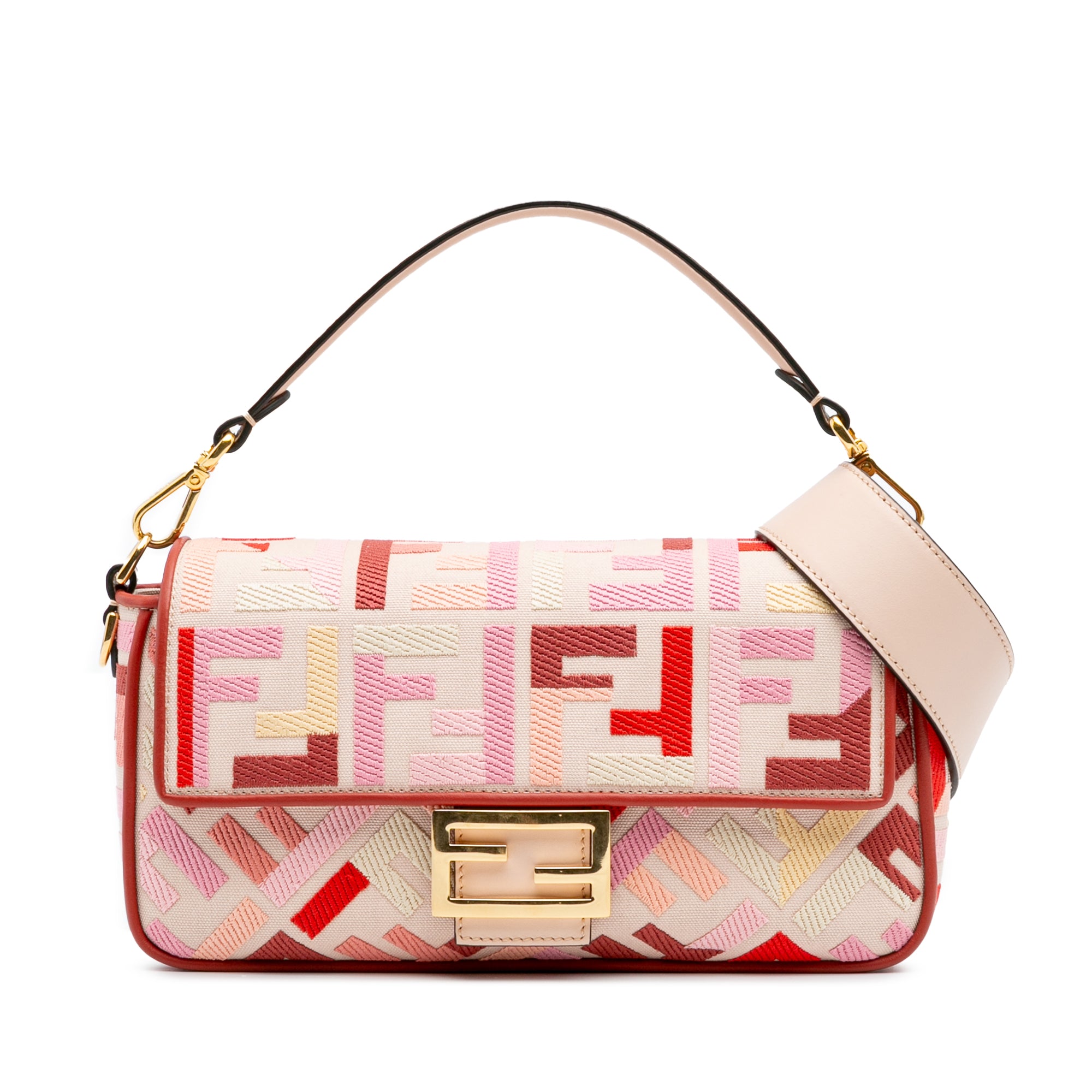 Fendi Zucca Embroidered Canvas Baguette Satchel