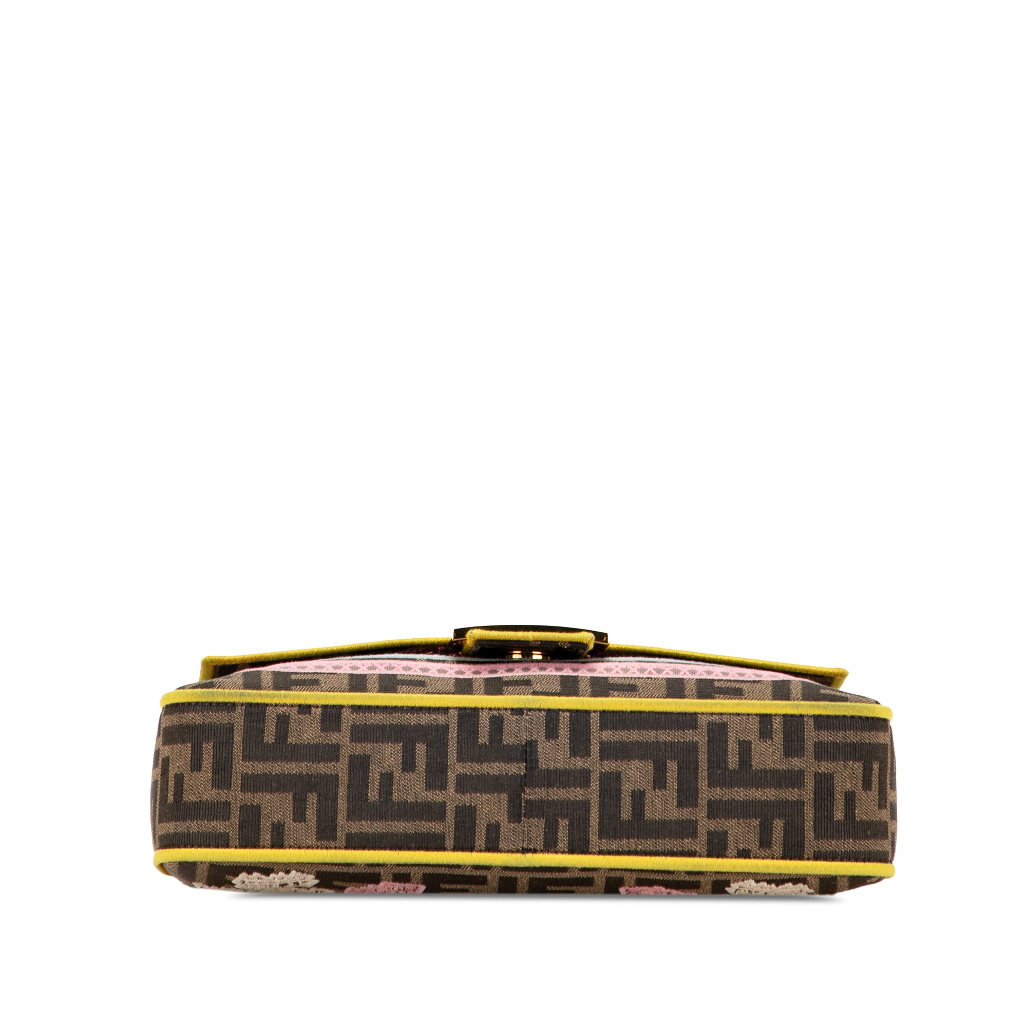 Fendi Zucca Embroidered Canvas Floral Baguette Satchel