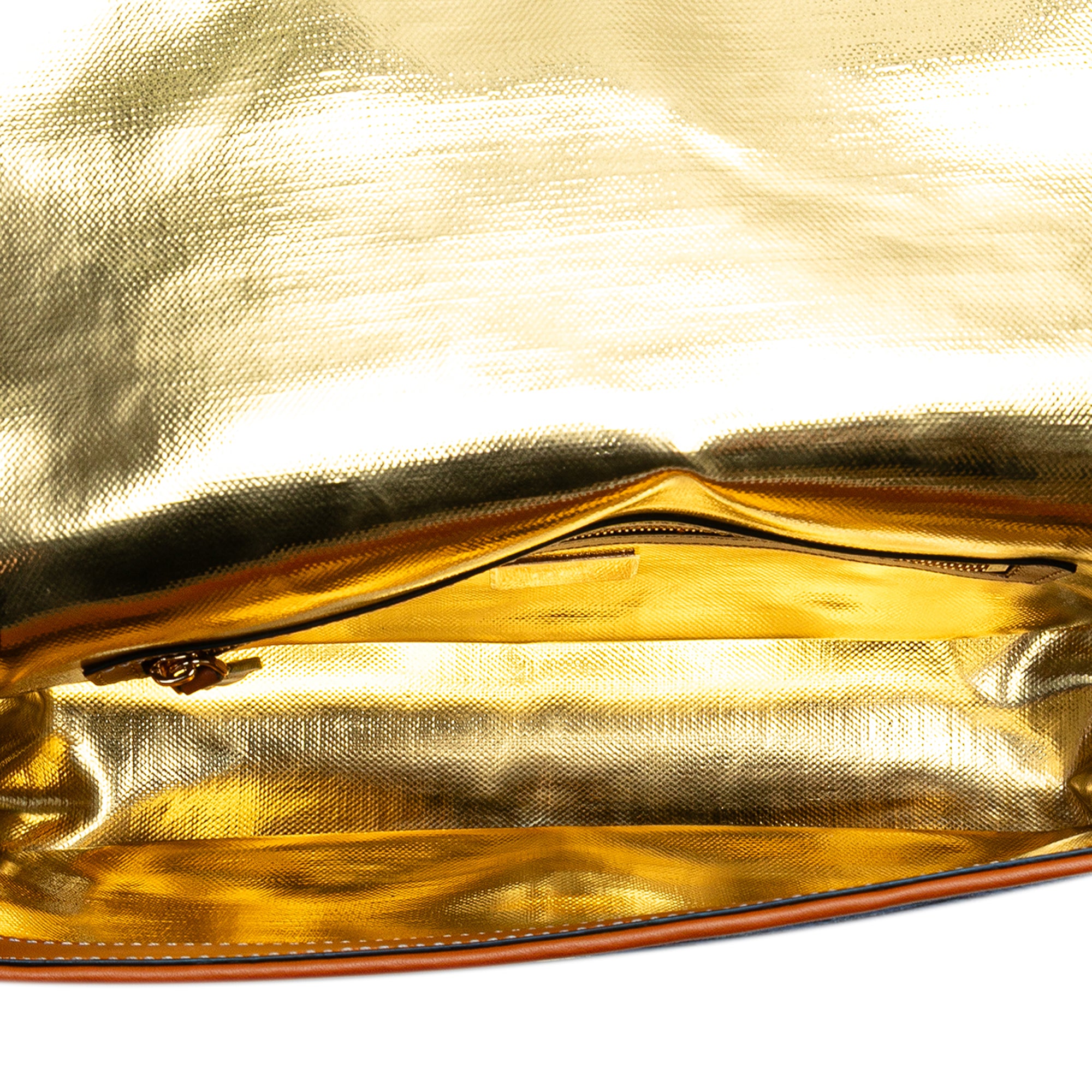 Fendi Zucca Embroidered Denim Baguette Satchel
