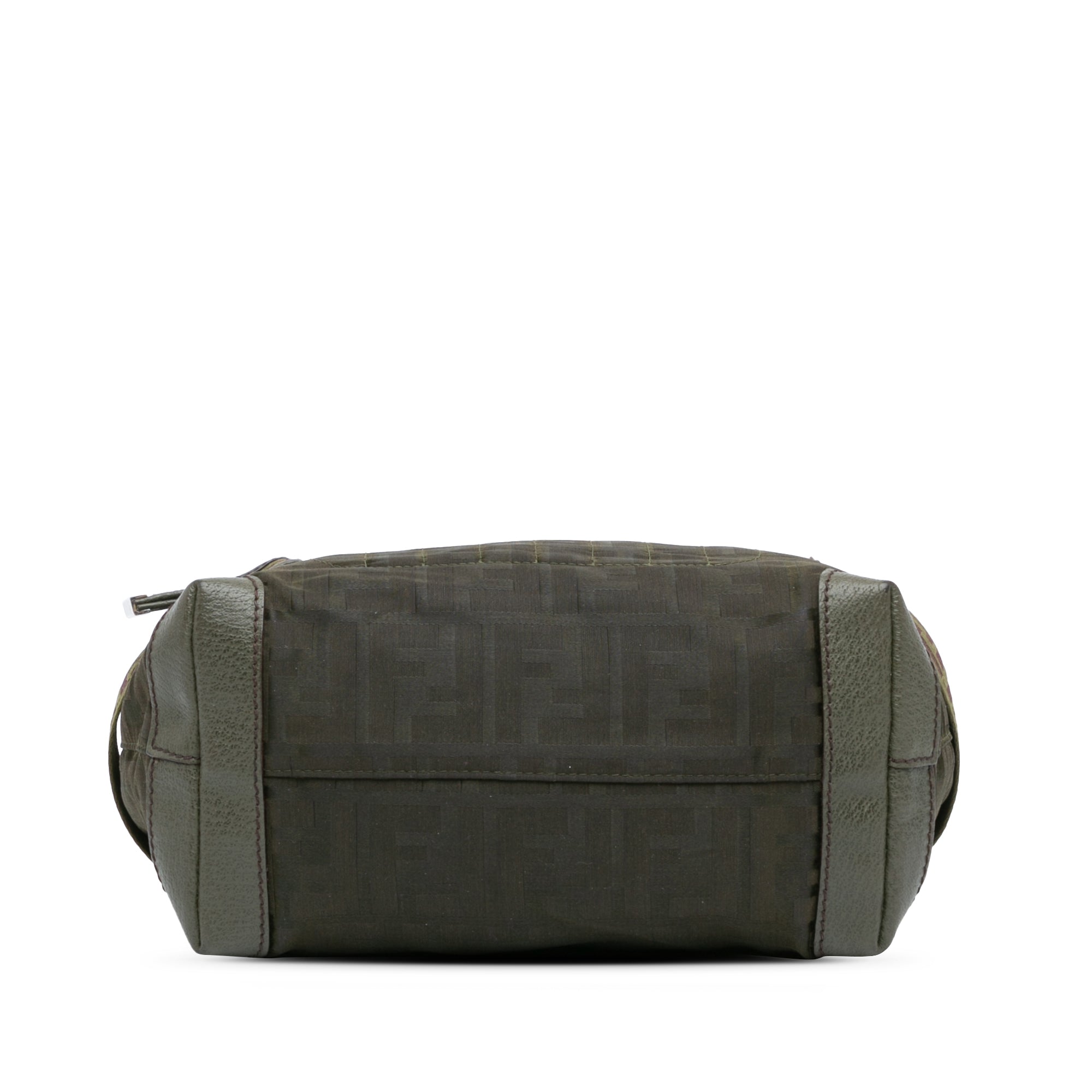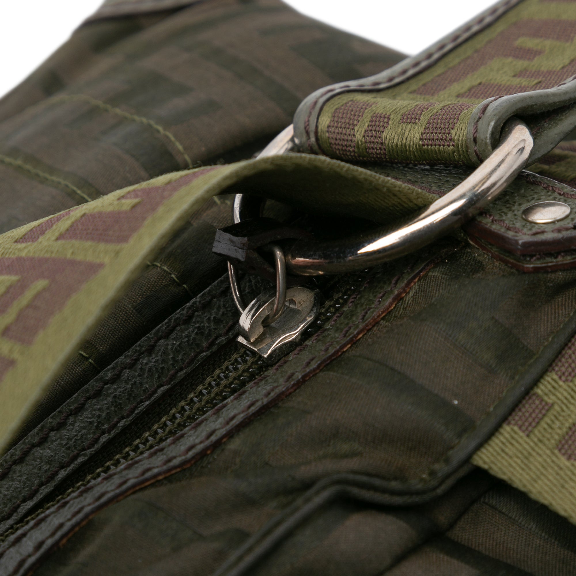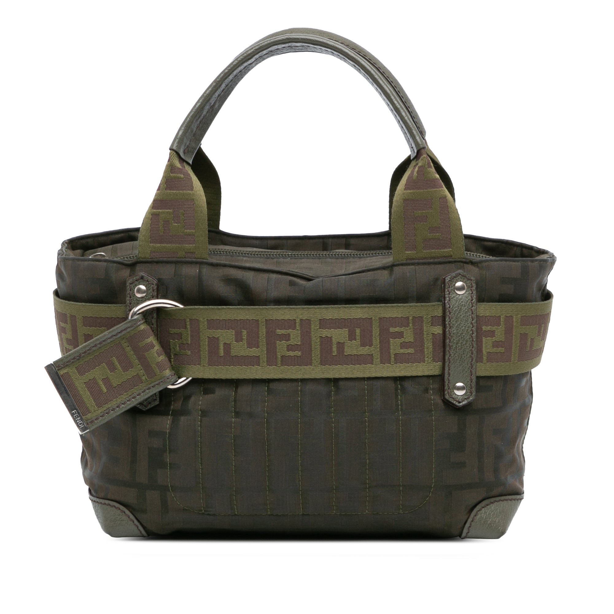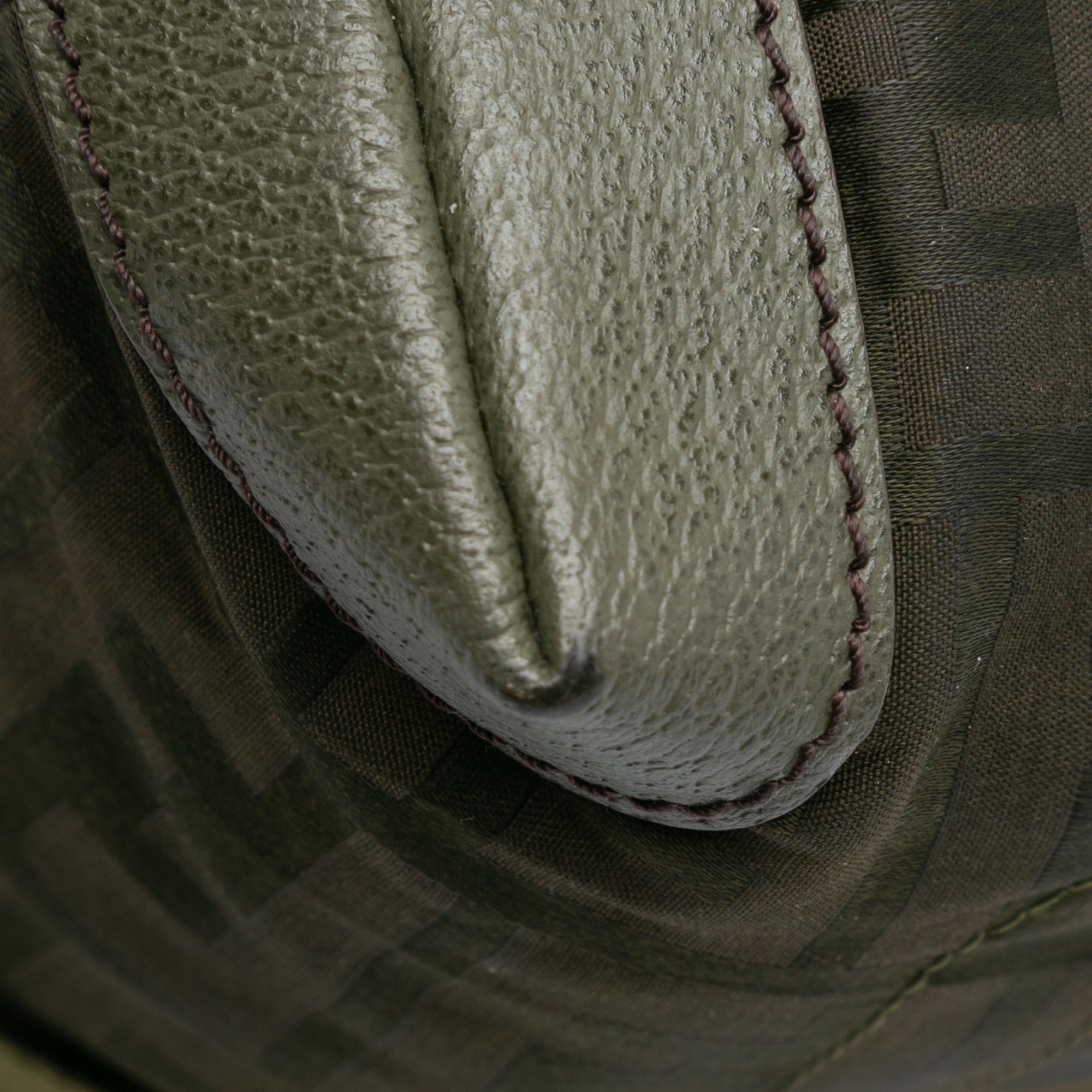 This handbag features a nylon body, flat leather handles, top zip closure, and interior zip and slip pockets. Retail Price: 990.00