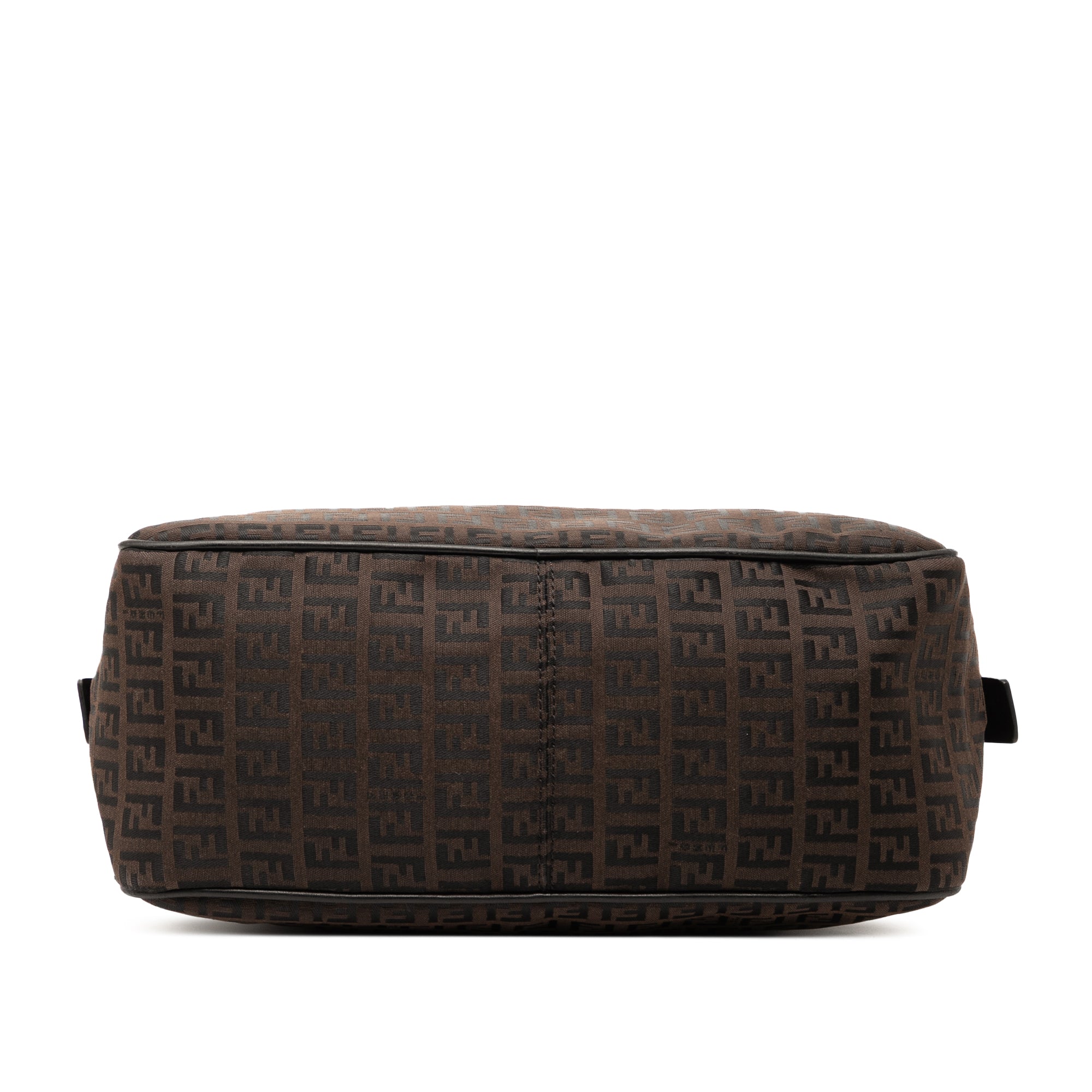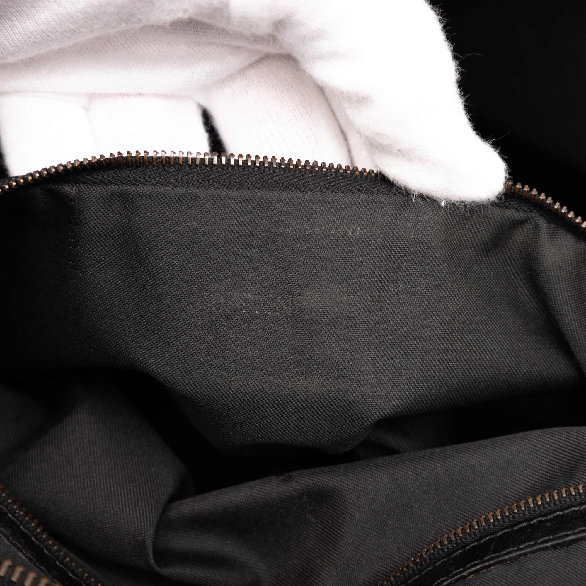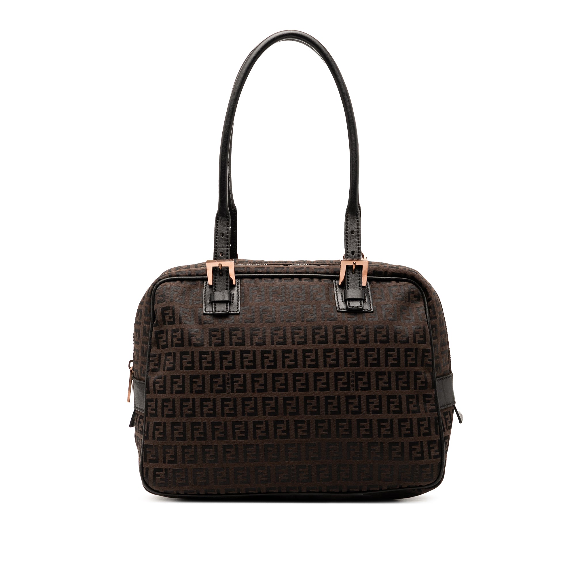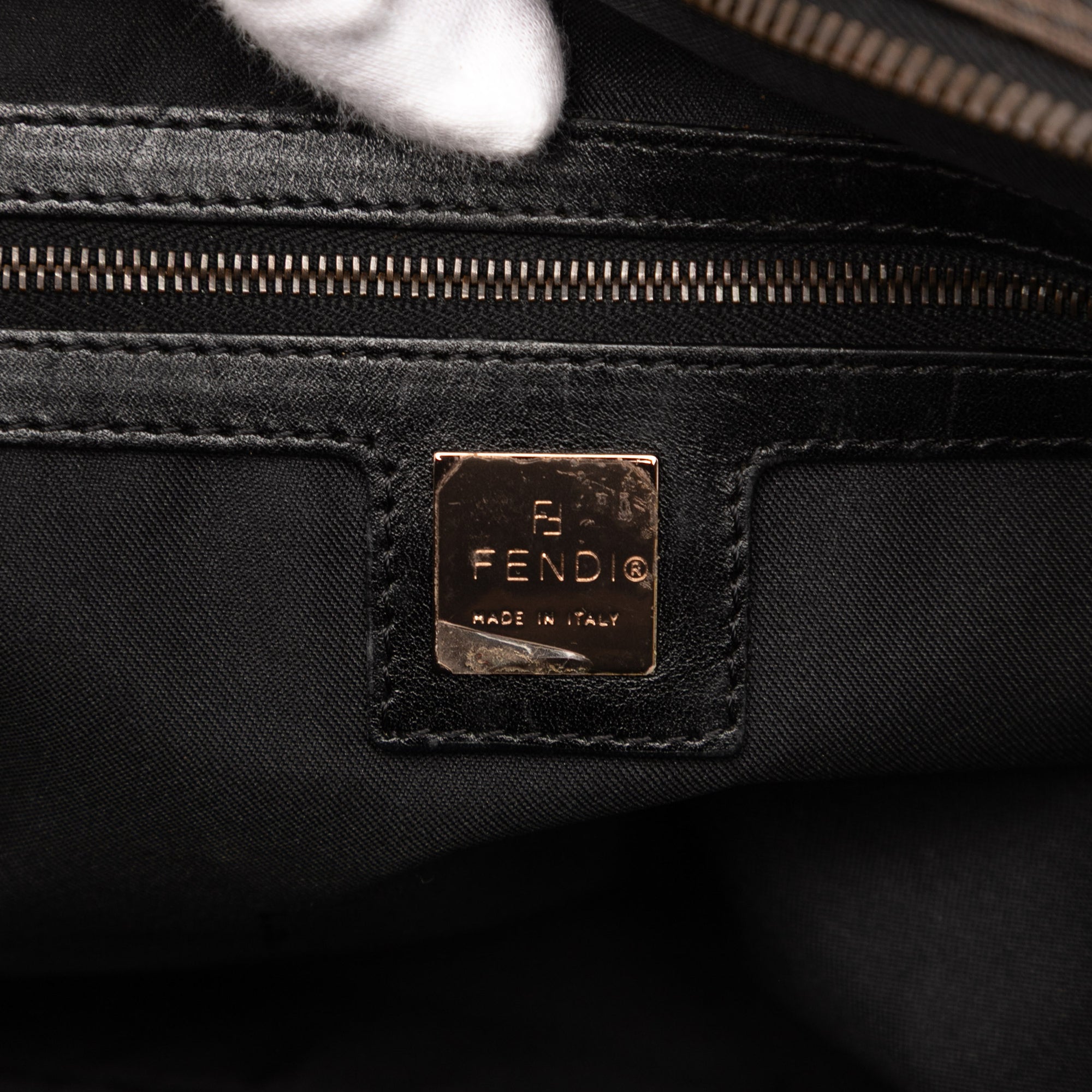This handbag features a canvas body with leather trim, flat leather handles, a zip around closure, and an interior zip pocket. Retail Price: 1100.00