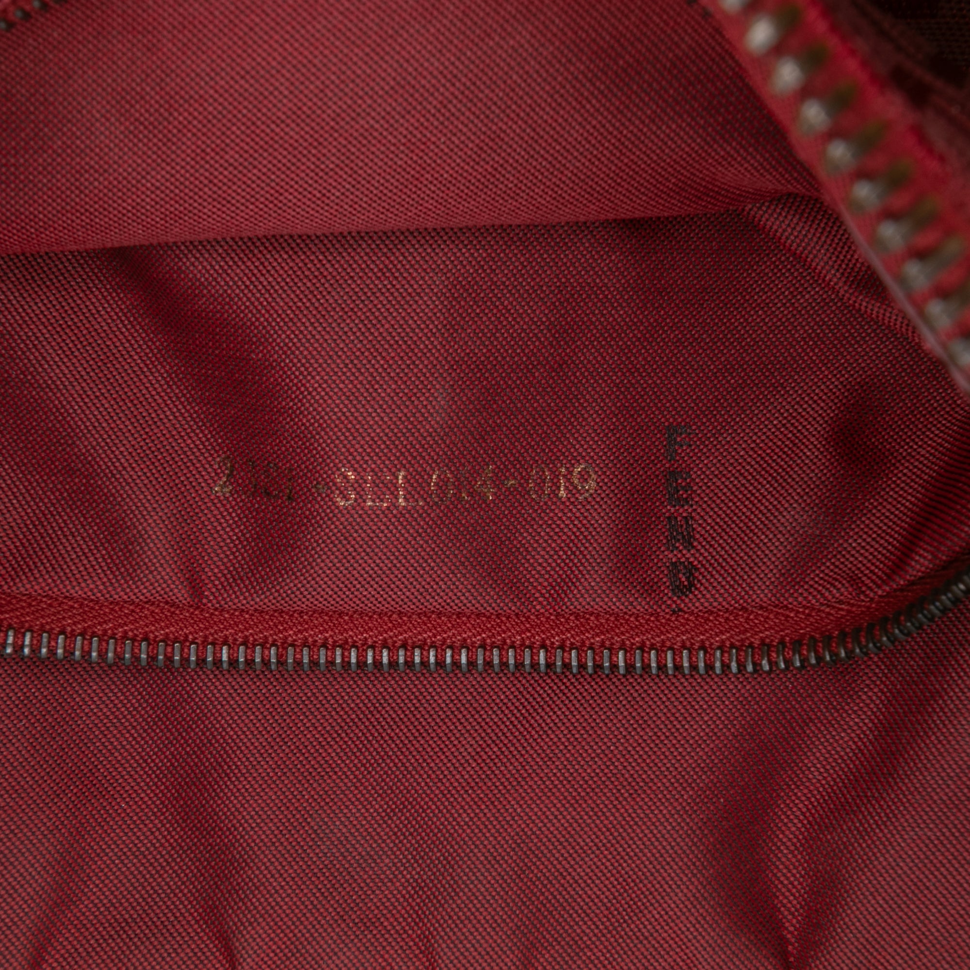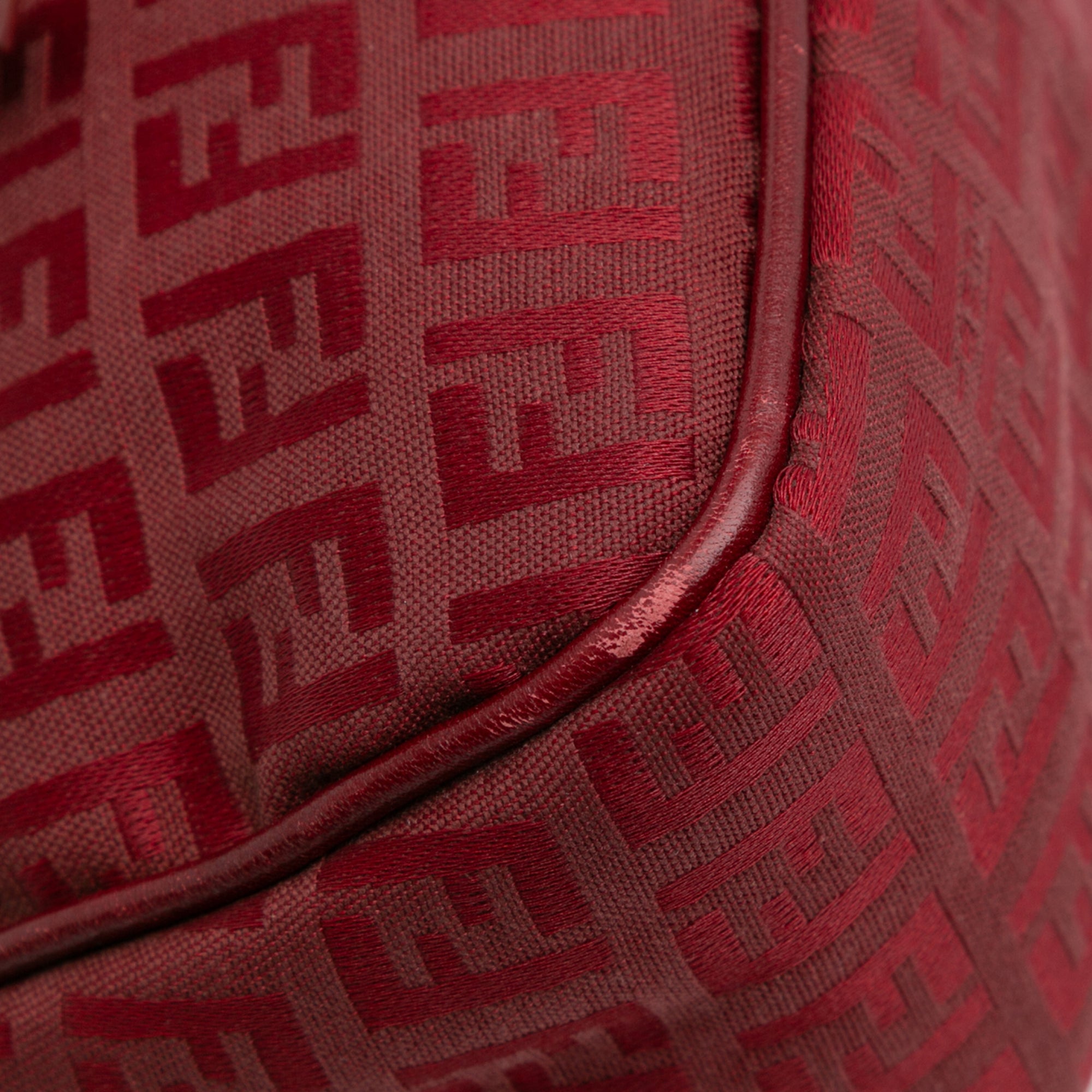 This handbag features a canvas body with leather trim, flat leather handles, a top zip closure, and an interior zip pocket. Retail Price: 810.00