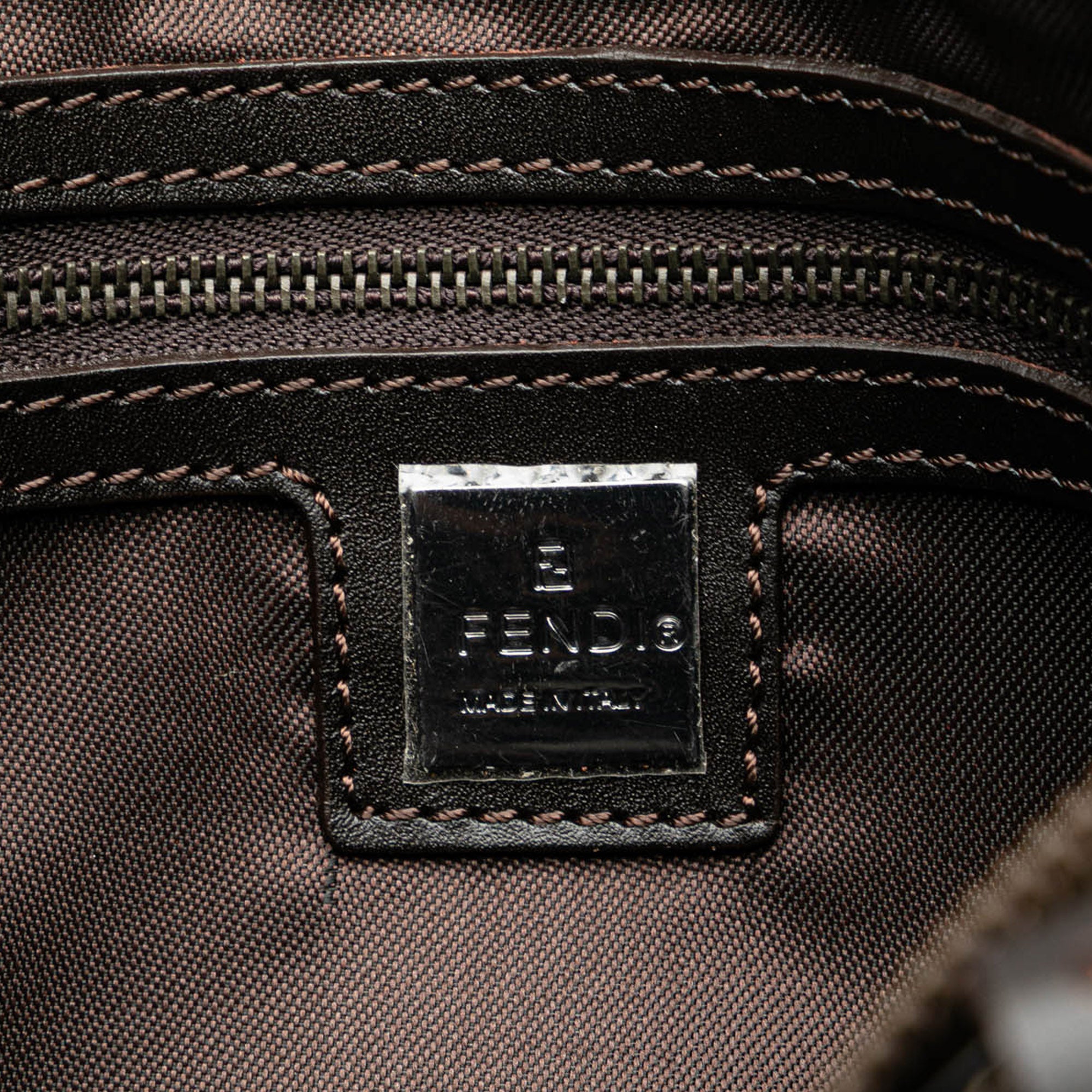 This handbag features a canvas body with leather trim, flat leather handles, a top zip closure, and an interior zip pocket. Retail Price: 1190.00