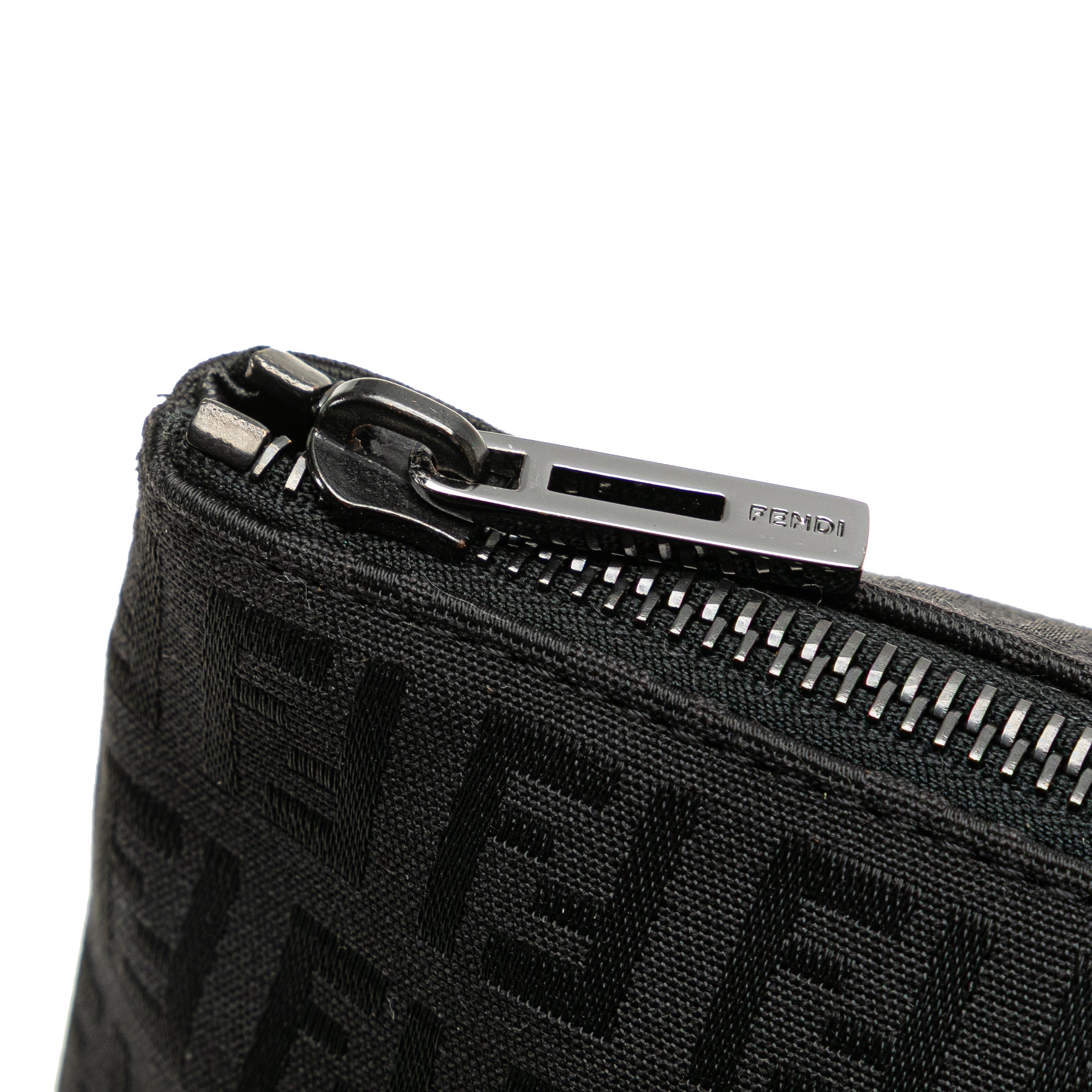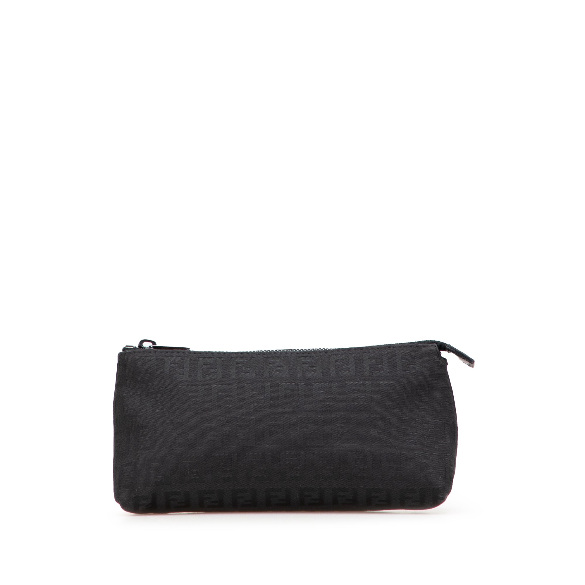 This pouch features a canvas body, and a top zip closure. Inclusion: Dust bag. Retail Price: 300.00