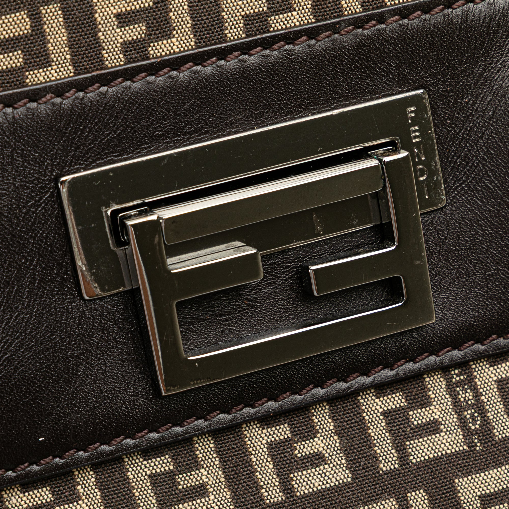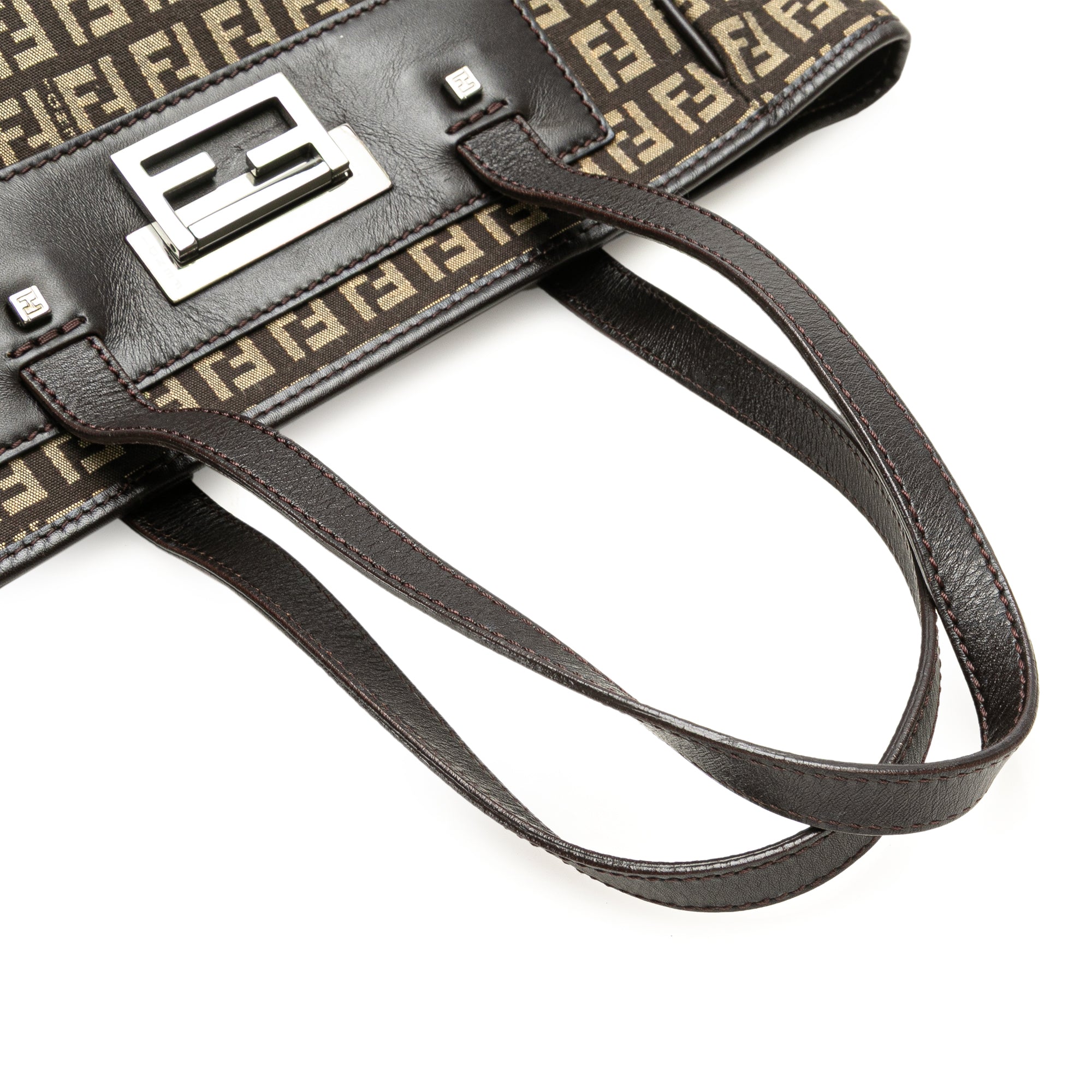 This tote features a canvas body with leather trim, flat leather handles, an open top with flip lock closure, and an interior slip pocket. Retail Price: 1000.00