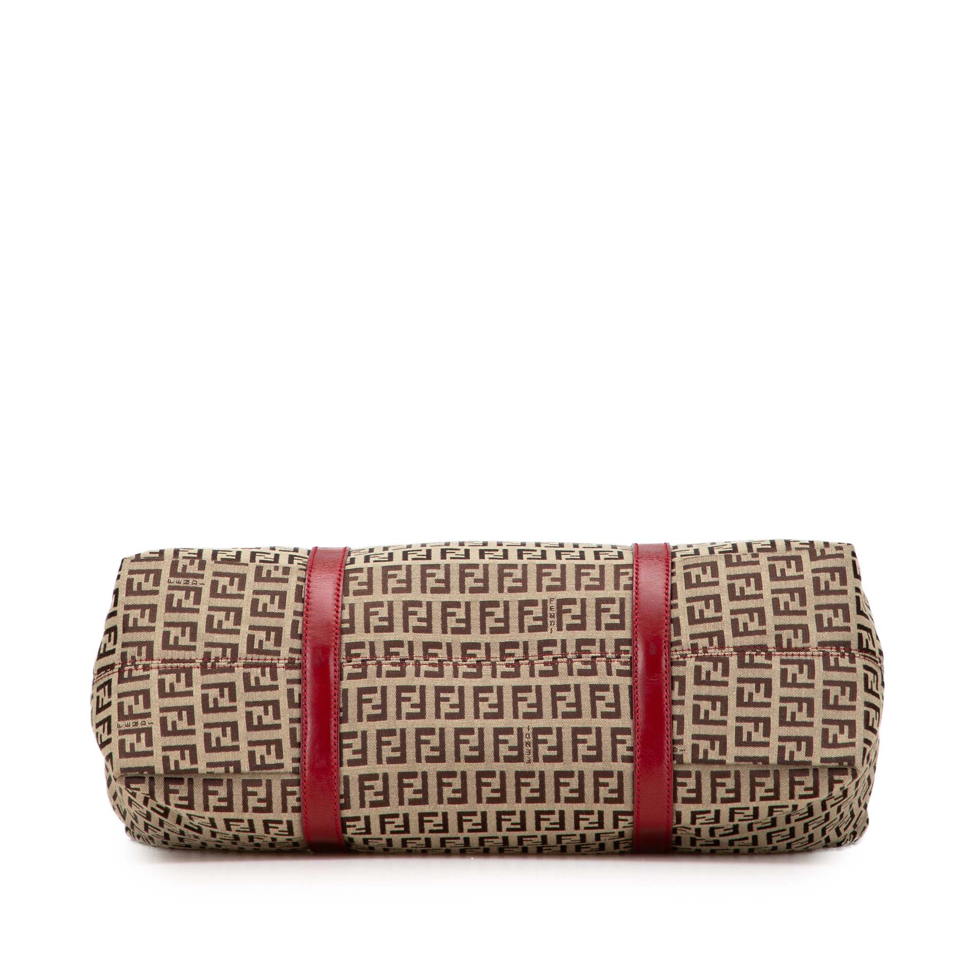This tote bag features a canvas body with leather trim, flat leather handles, an open top with magnetic snap closure, an interior zip compartment, and an interior slip pocket. Inclusion: Dust bag. Retail Price: 1200.00