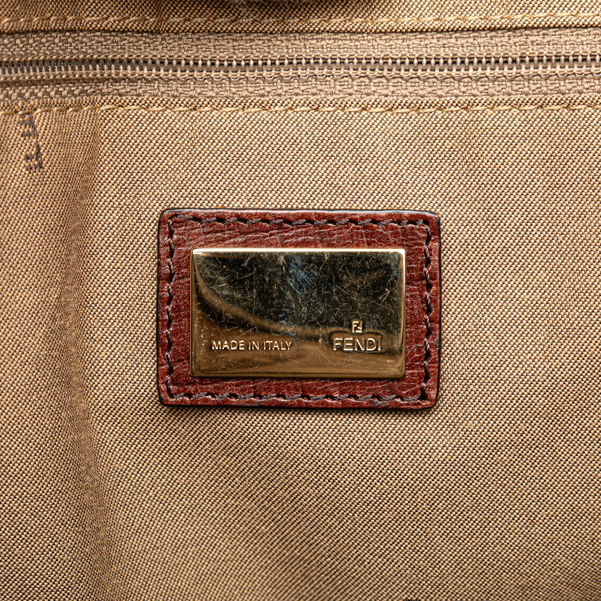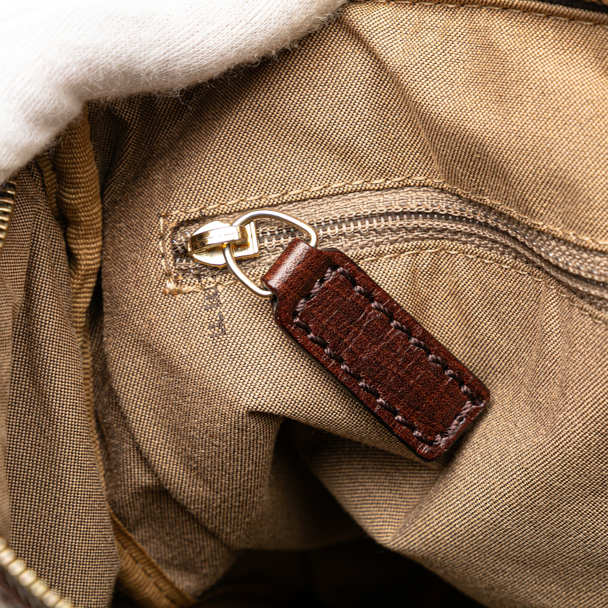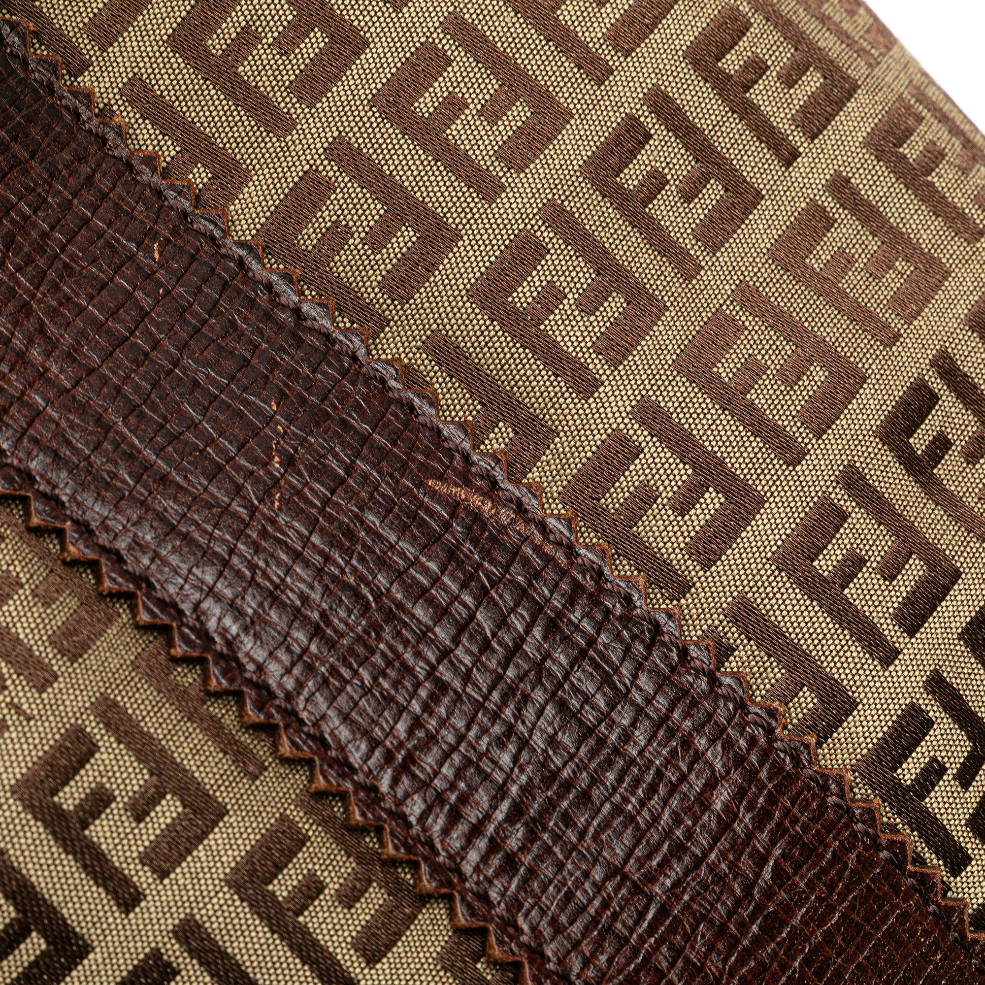 This tote bag features a canvas body with leather trim, flat leather straps, a top zip closure, and interior zip and slip pockets. Retail Price: 1000.00
