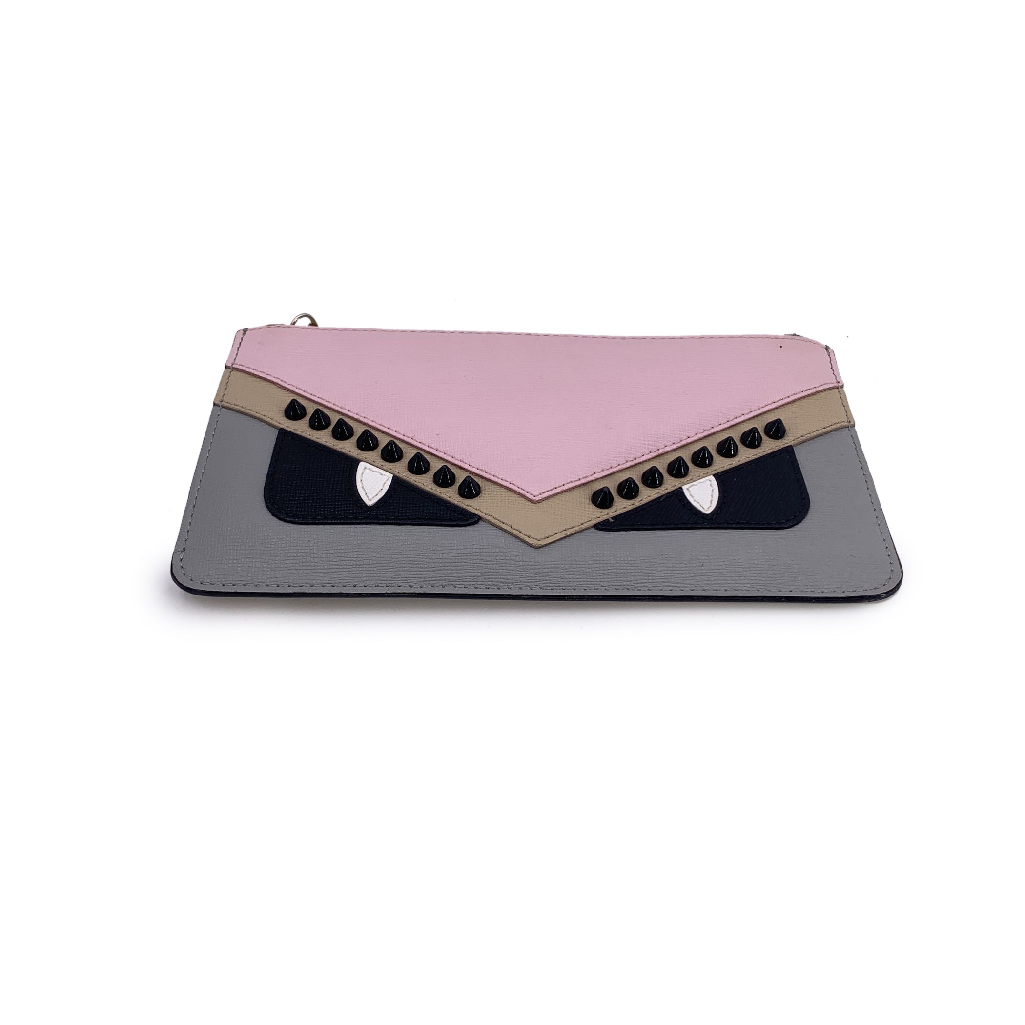 A Rare And Playful Statement Piece, This Fendi Pochette 'Monster' Zip Pouch Is a Striking Blend Of Luxury And Whimsy. Crafted From Smooth Leather In a Palette Of Pink, Grey, White Beige, And Black, The Pouch Brings The Iconic Monster Motif To Life With Bold Color Blocking And Fierce Black Spikes That Give It An Edgy, Animated Personality. The Zip Closure Opens To Reveal a Clean Fabric-lined Interior, Complete With The Original 'Fendi - Made In Italy' Tag, With The Serial Number Discreetly Tucked On Its Reverse. A Perfect Fusion Of Italian Craftsmanship And Contemporary Design, This Compact Yet Eye-catching Accessory Is Ideal For Collectors, Fashion Rebels, Or Anyone Looking To Add a Touch Of Playful Menace To Their Ensemble.