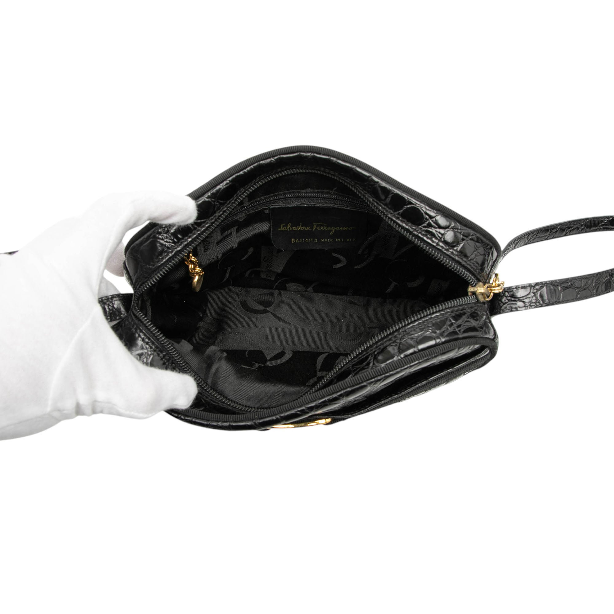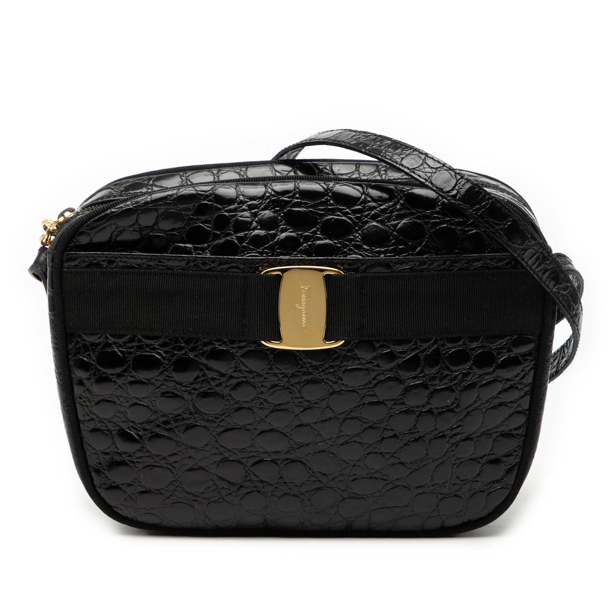 Ferragamo Croc Embossed Calfskin Vara Crossbody