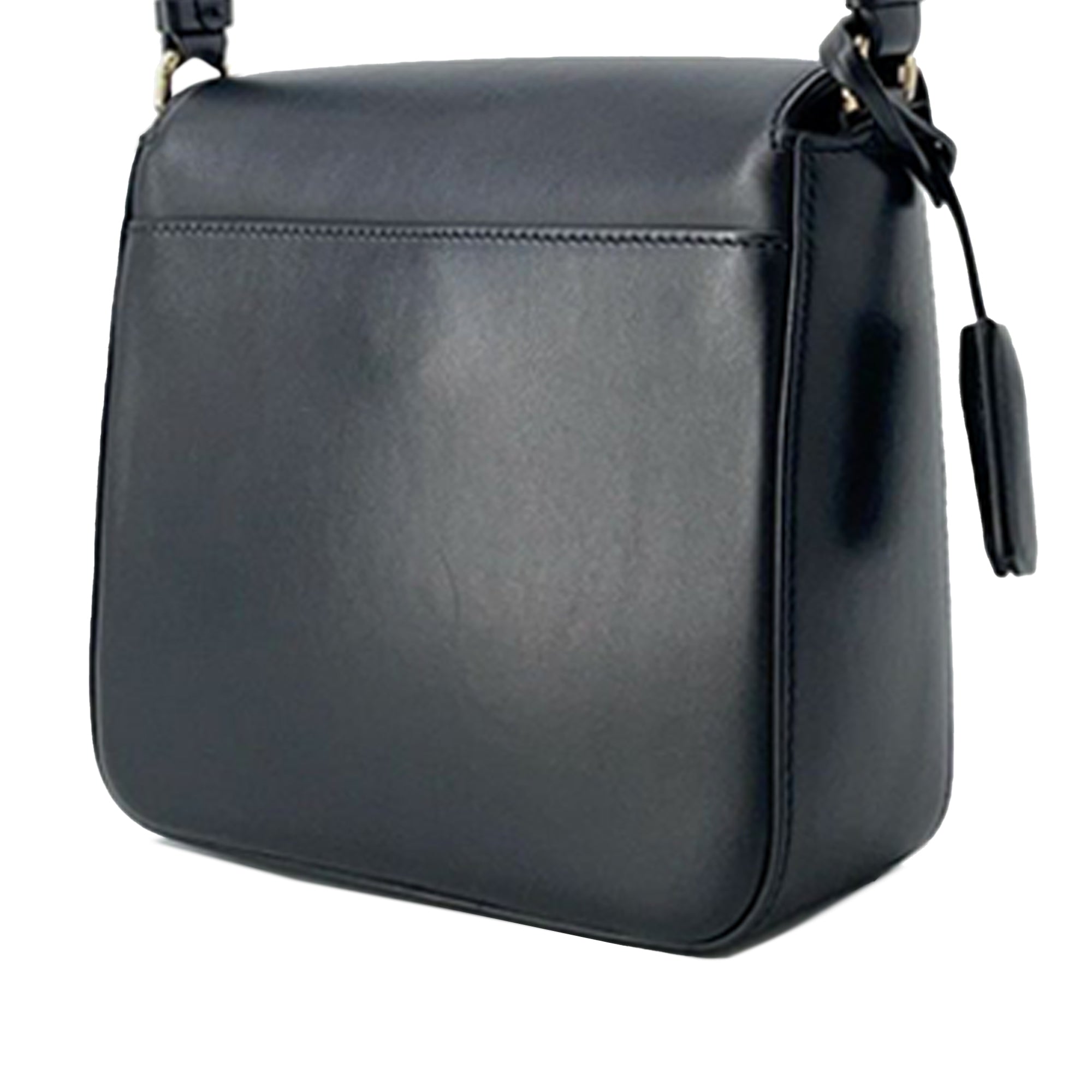 This crossbody features a leather body, a flat leather strap, a front flap with a push lock closure, and an interior slip pocket. Retail Price: 990.00