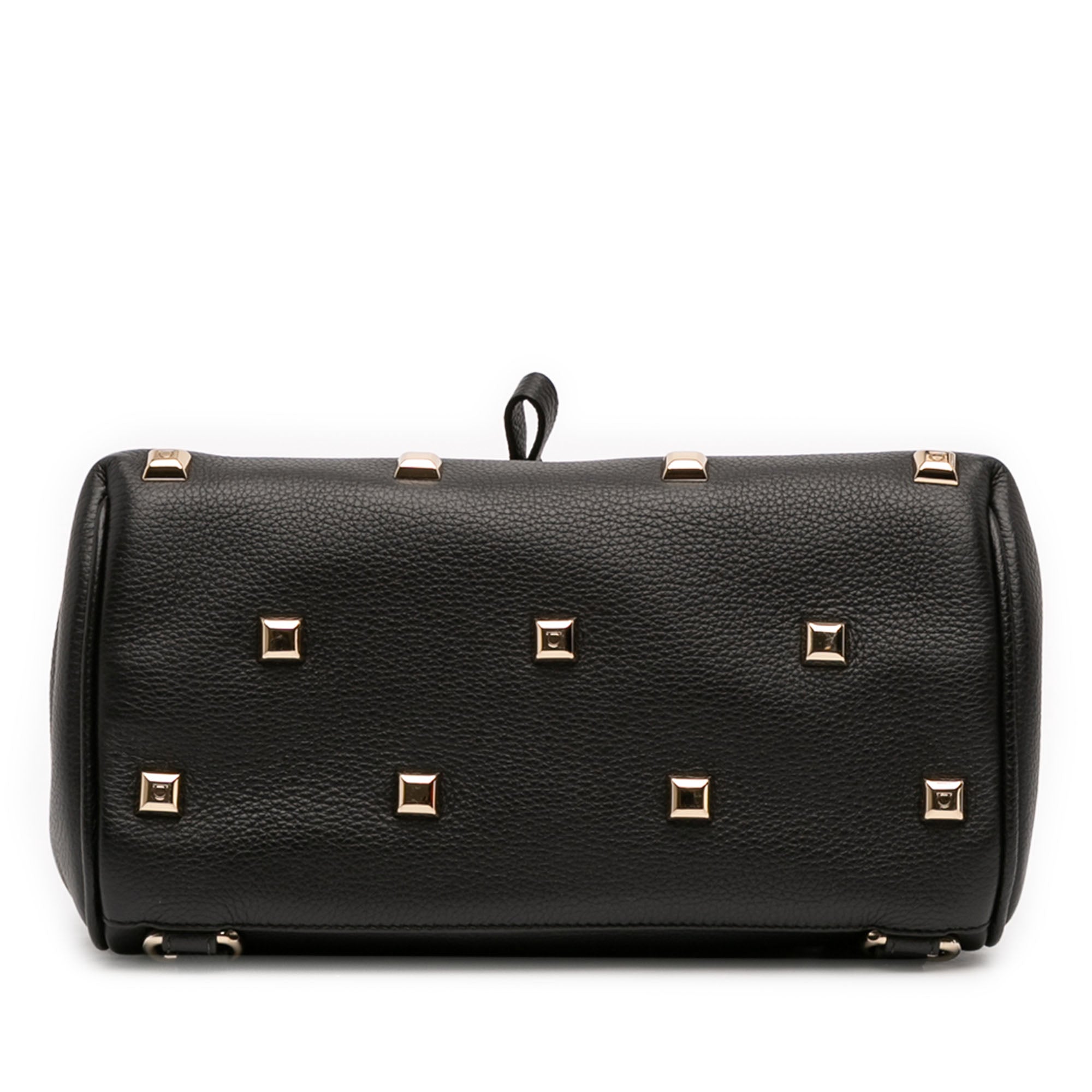 This backpack features a leather body with stud details, a rolled top handle, adjustable flat back straps, a top flap flip-lock closure, a drawstring closure, and interior zip and slip pockets. Inclusion: Dust bag. Retail Price: 990.00