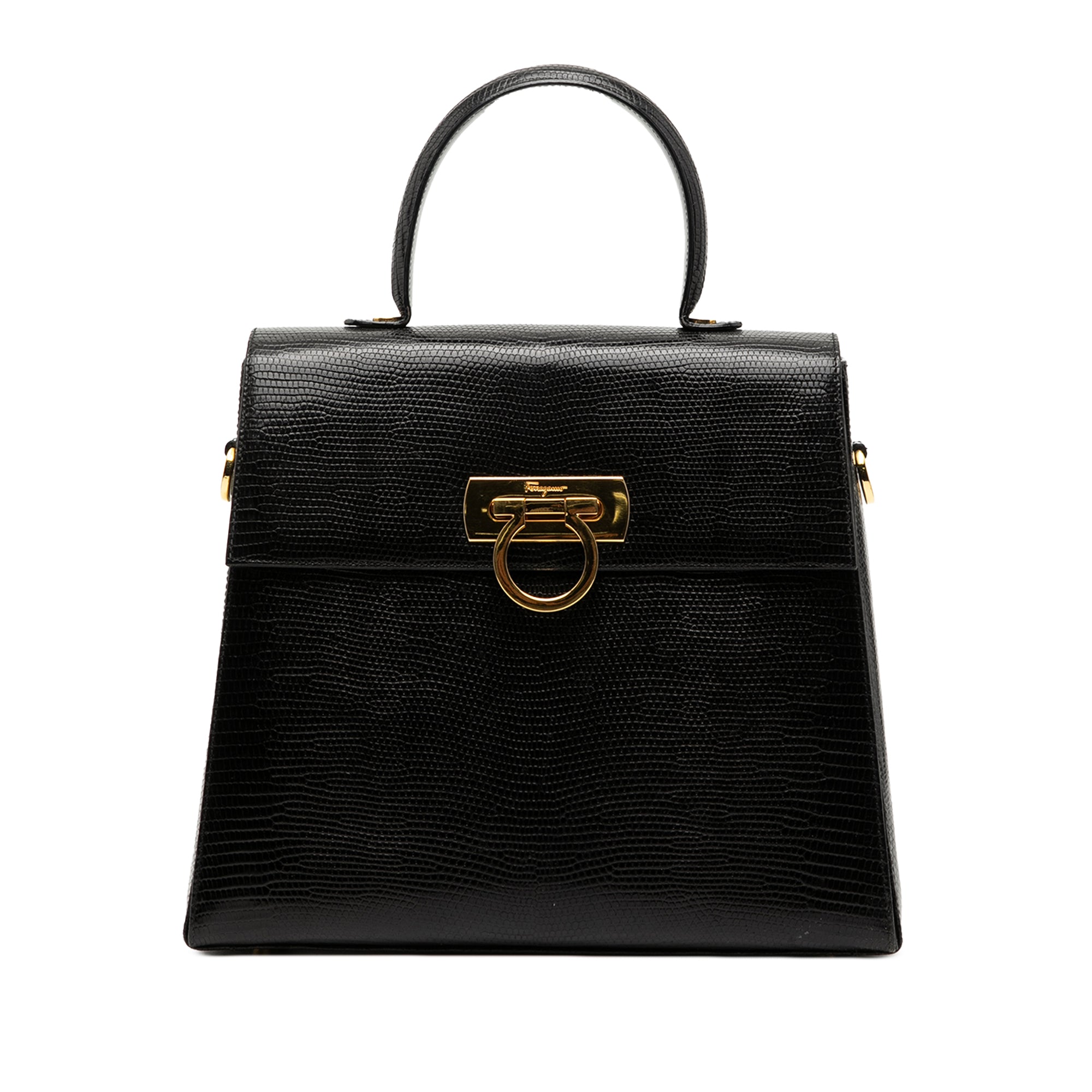 Ferragamo Lizard Embossed Leather Gancini Iconic Top Handle Bag