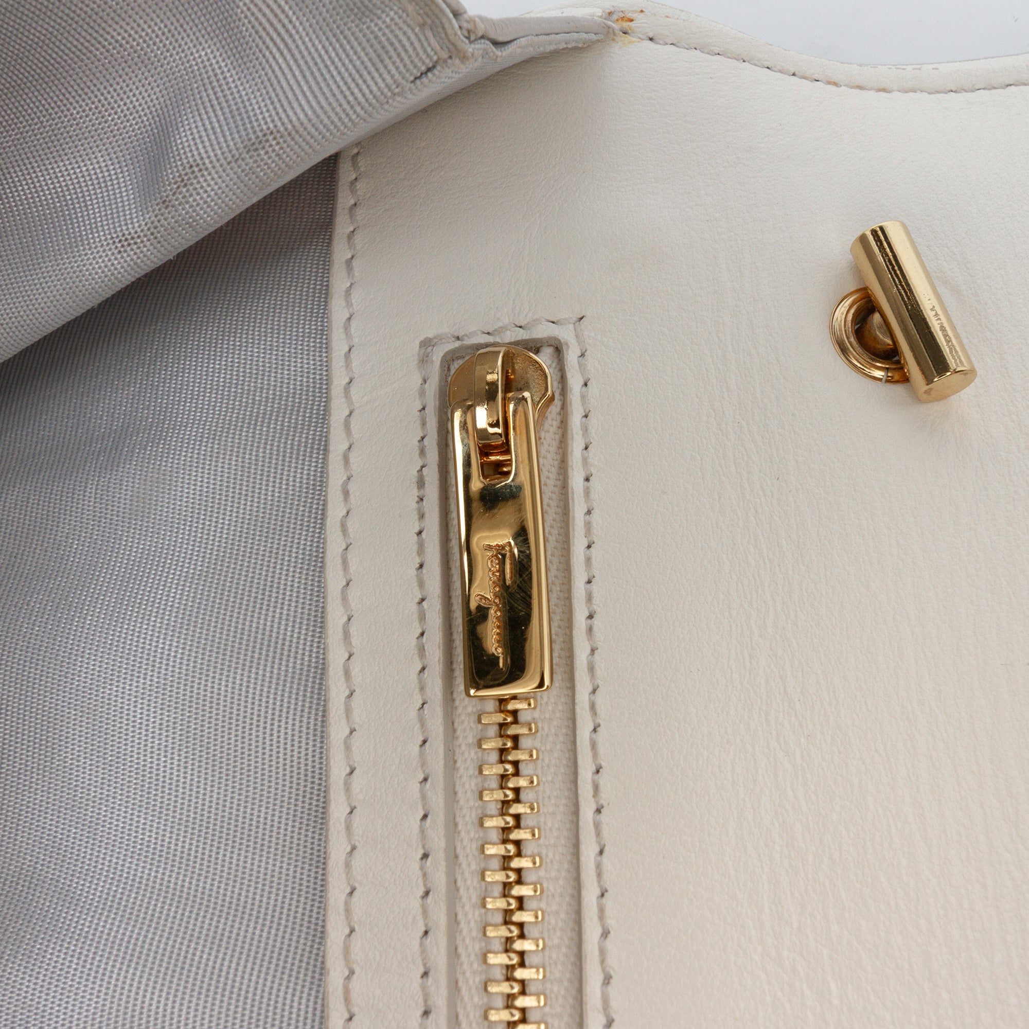 The Ginny features a perforated leather body, a leather-woven chain strap, a front flap with push lock closure, and an interior zip pocket. Retail Price: 925.00