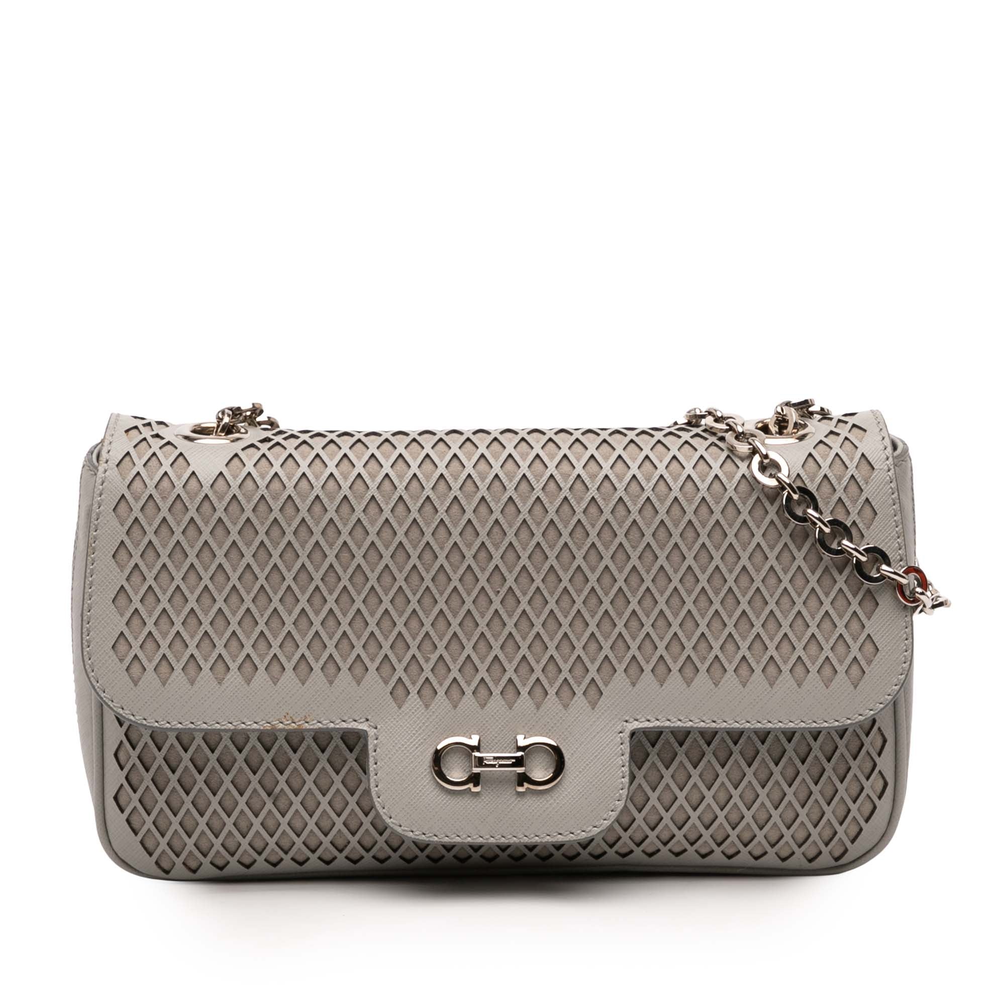 Ferragamo Perforated Leather Gancini Luciana Chain Flap