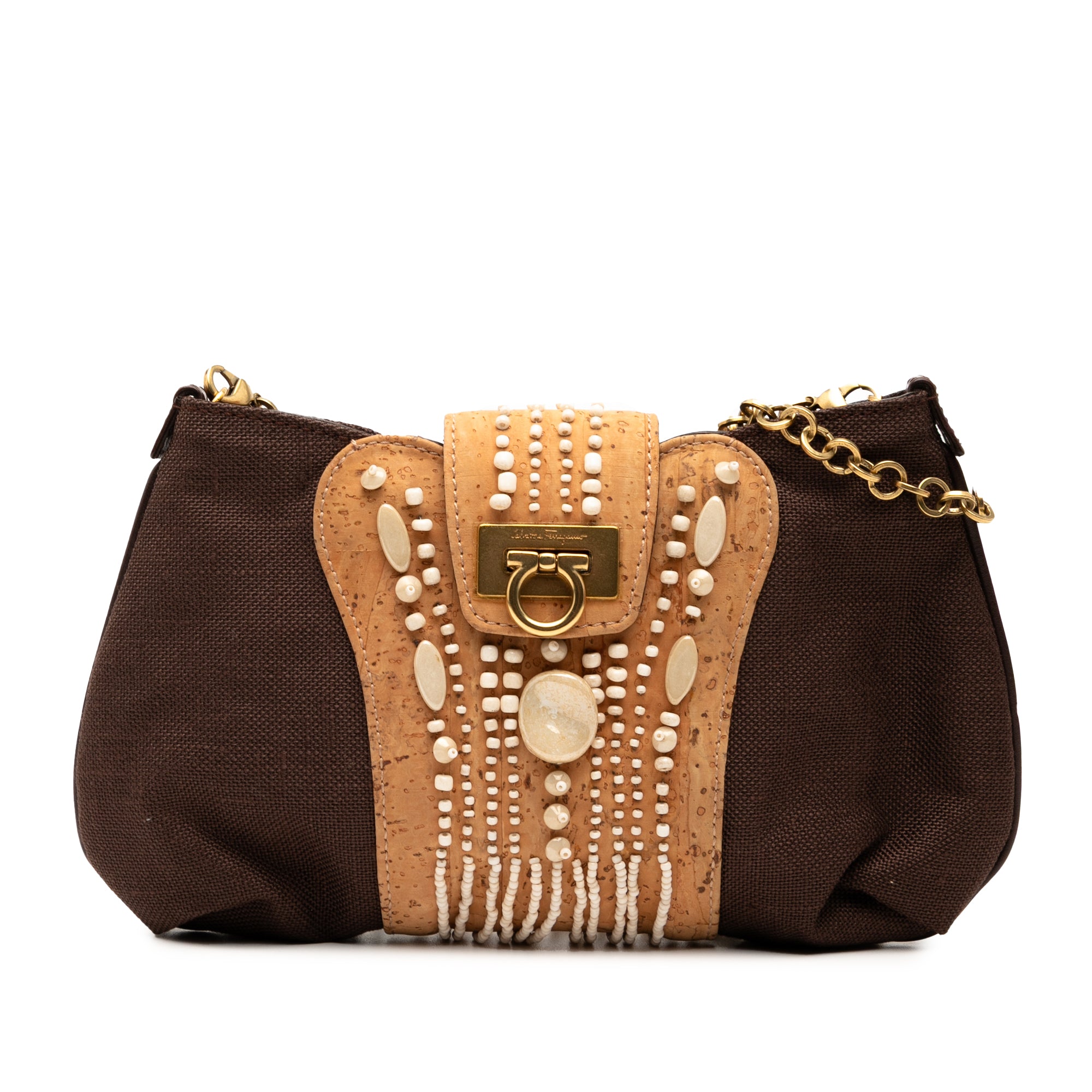 Ferragamo Studded Canvas Gancini Clutch on Chain