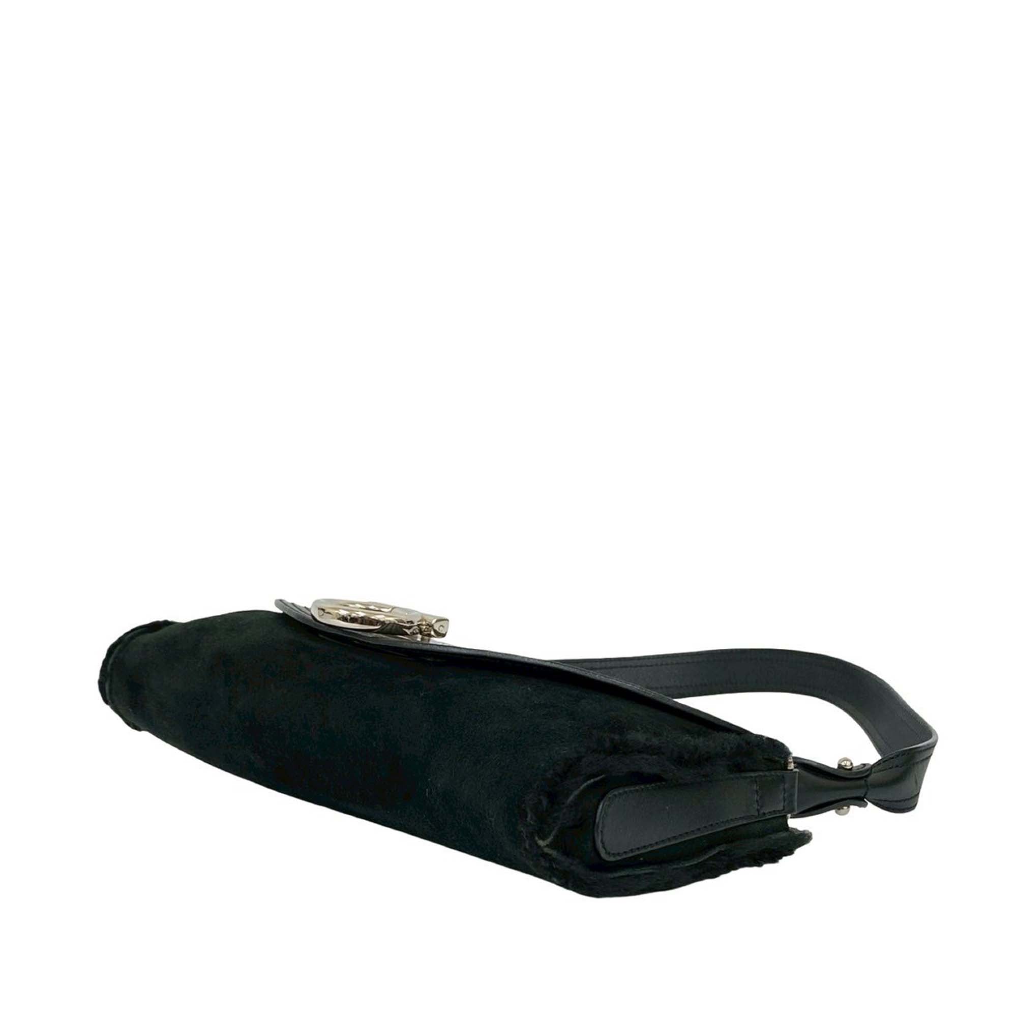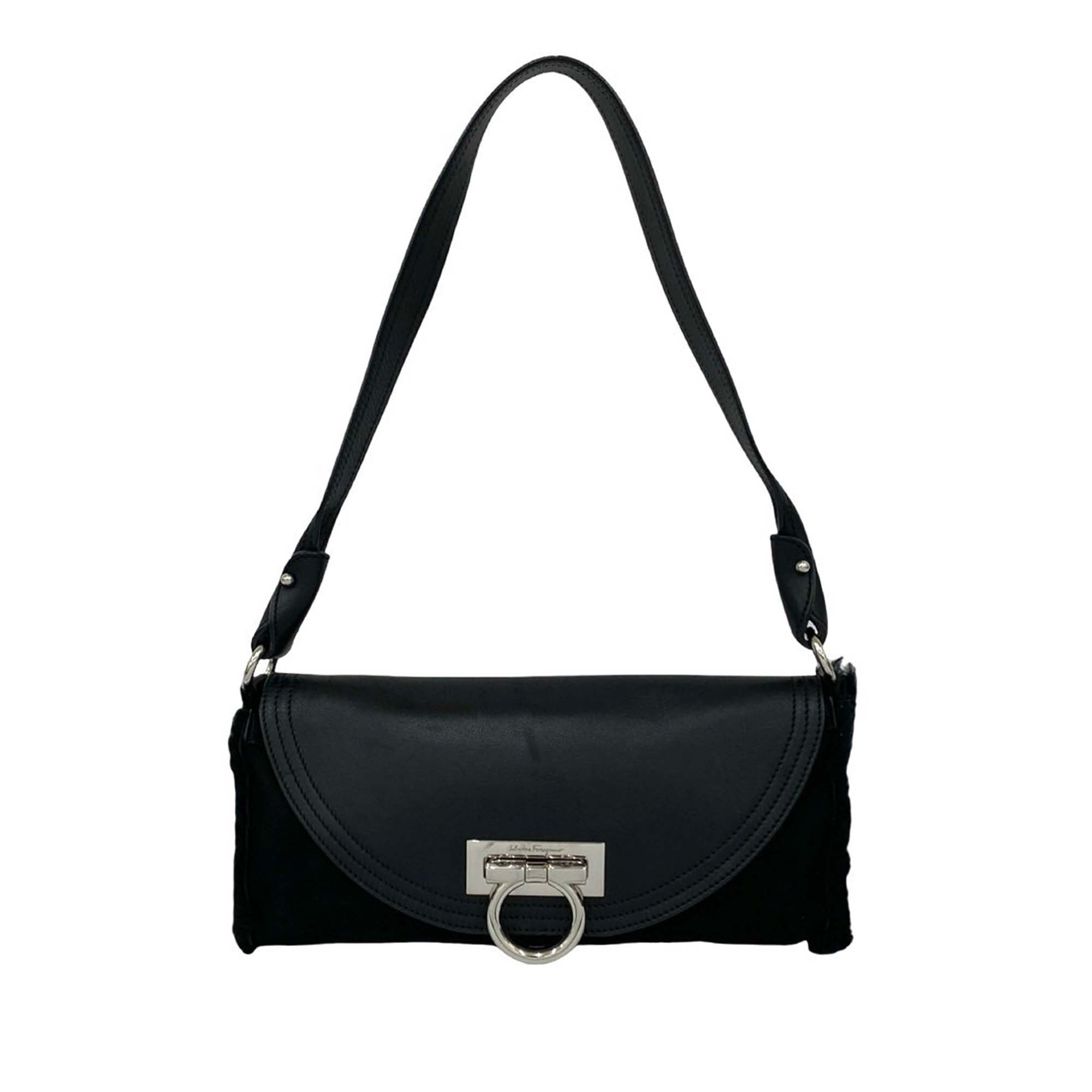 Ferragamo Suede and Calfskin Gancini Shoulder Bag