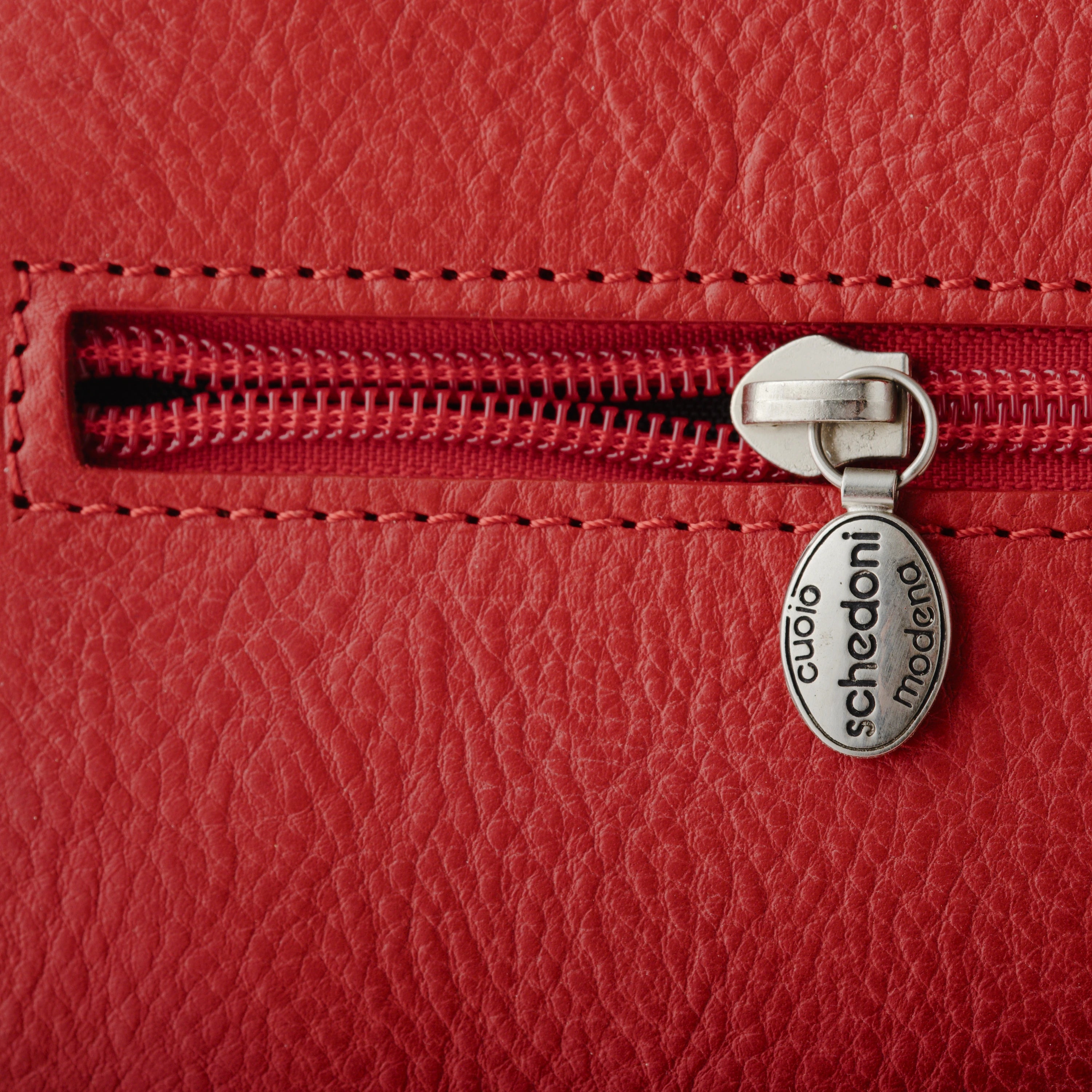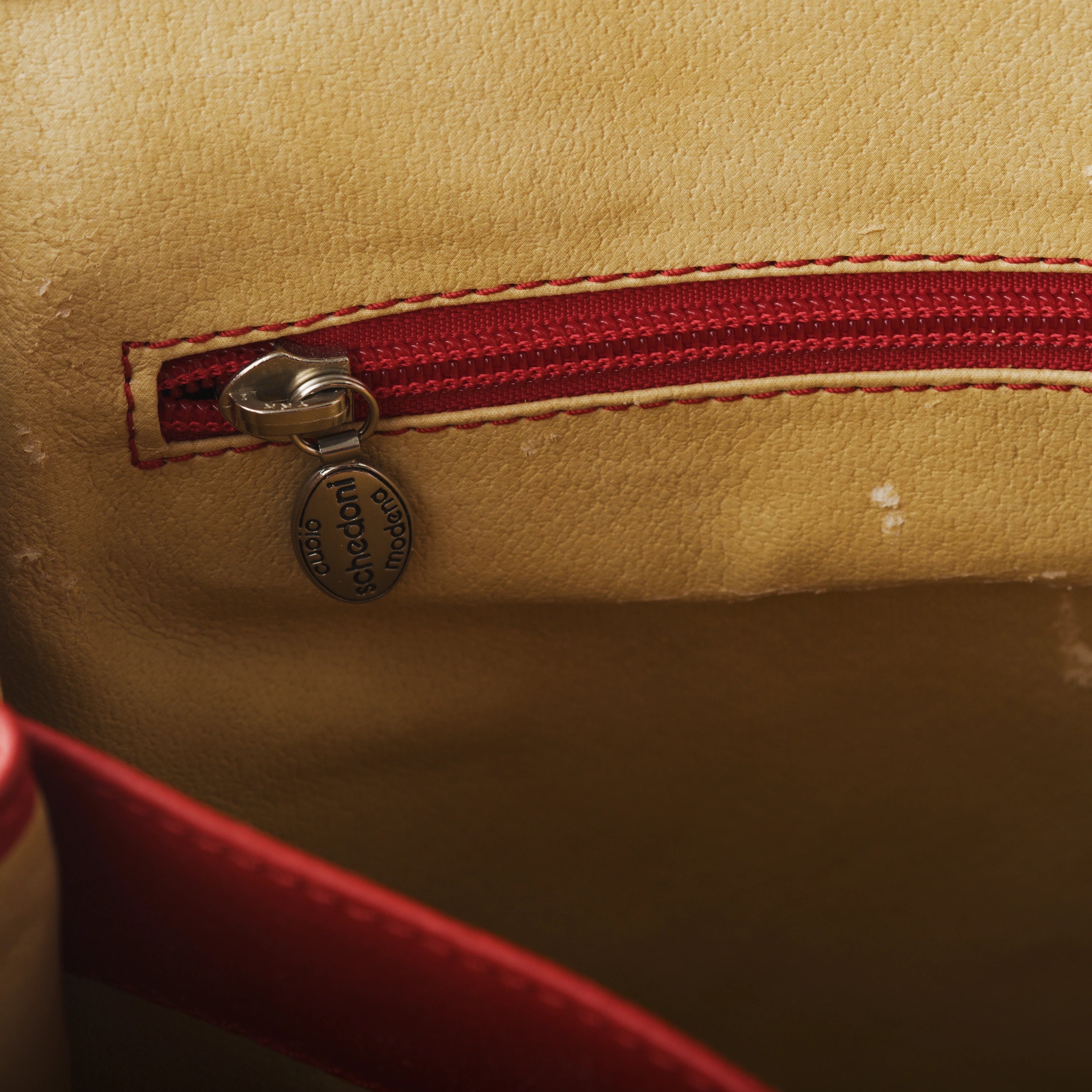 The Ferrari Schedoni Shoulder Bag Briefcase from the 1990s in red leather combines iconic design with functionality. Crafted from premium leather, it blends sporty style with refined details, offering organized space for a laptop, documents, and accessories. The adjustable shoulder strap, ergonomic handles, and secure closure ensure practicality, while the precise stitching reflects Ferrari Schedoni’s craftsmanship, making it a unique collectible piece.