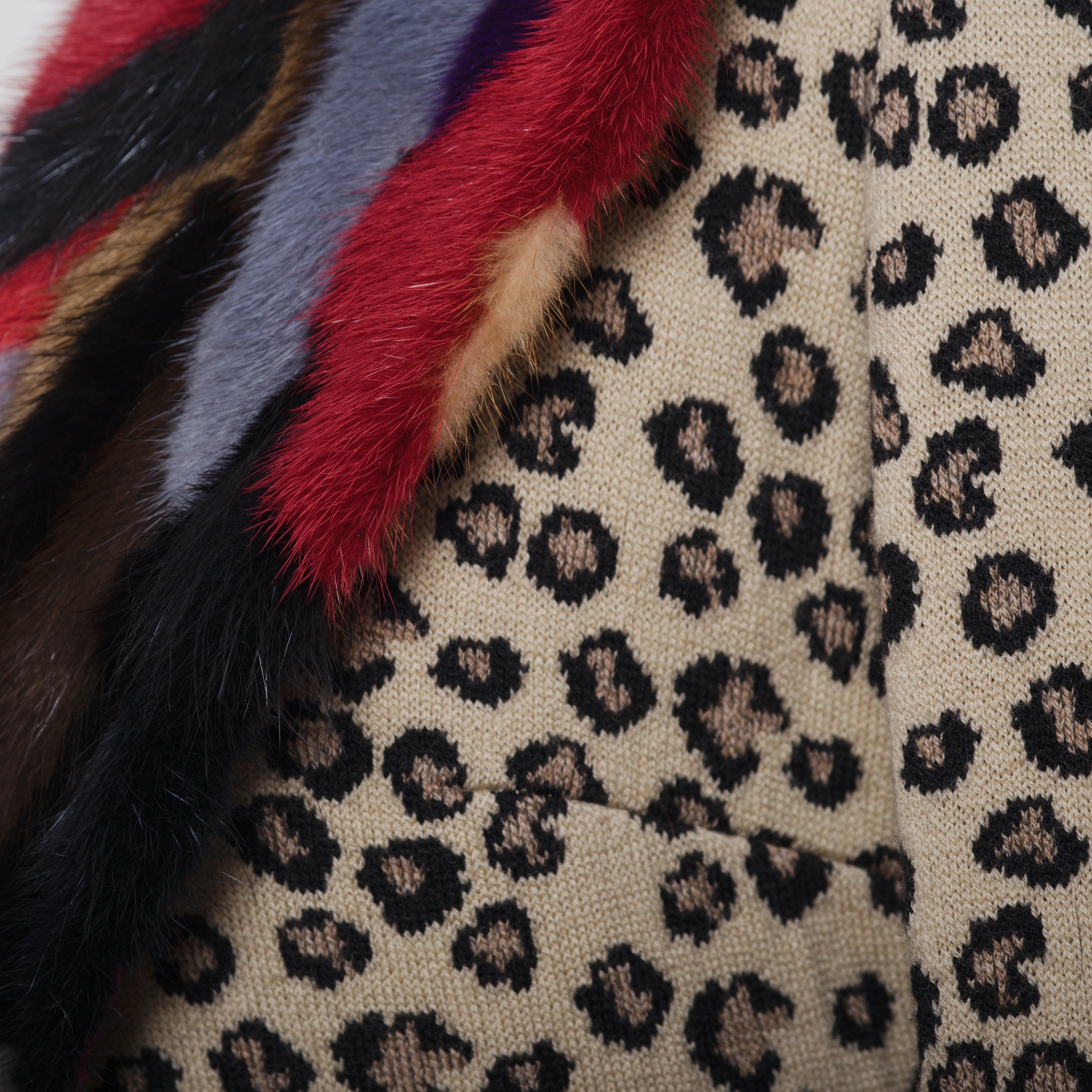 Leopard Print Coat with Multicolor Fur by Gaetano Navarra, a piece that combines the classic animal print with vibrant fur details, creating a look that is sophisticated yet playful.