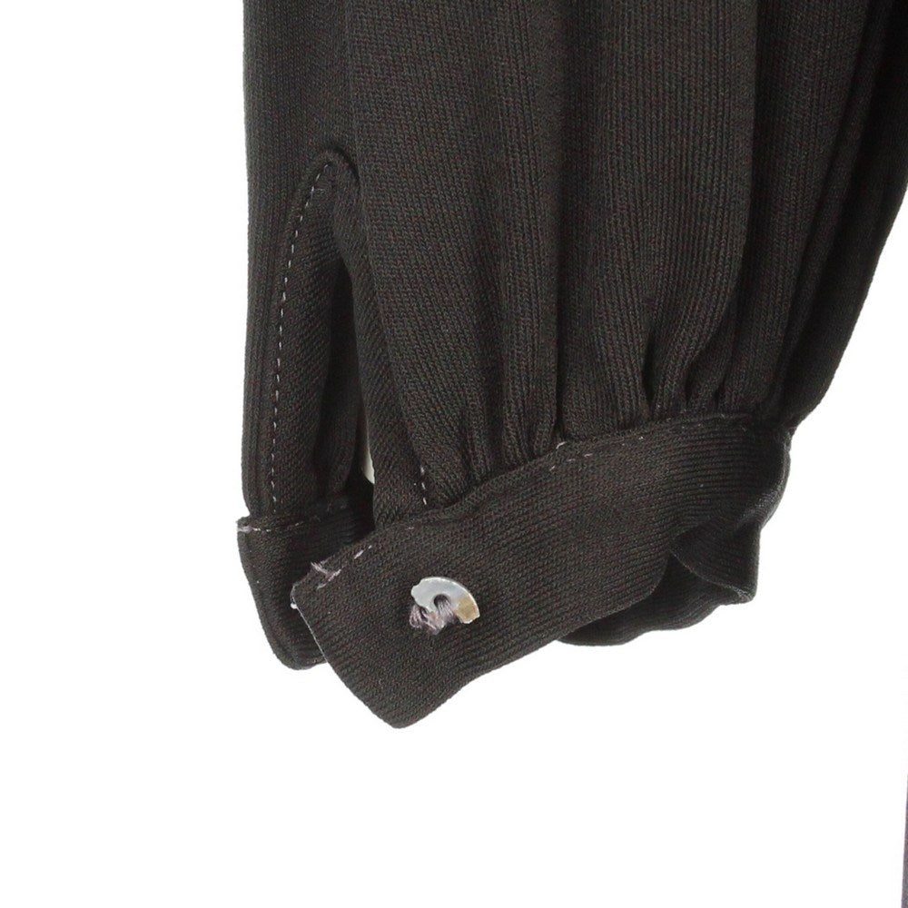 Gianfranco Ferré black dress with decorative frontal ruches. Crew-neck, long sleeves with curly details and buttoned cuffs. The item has a button ruined, as shown in the pictures.