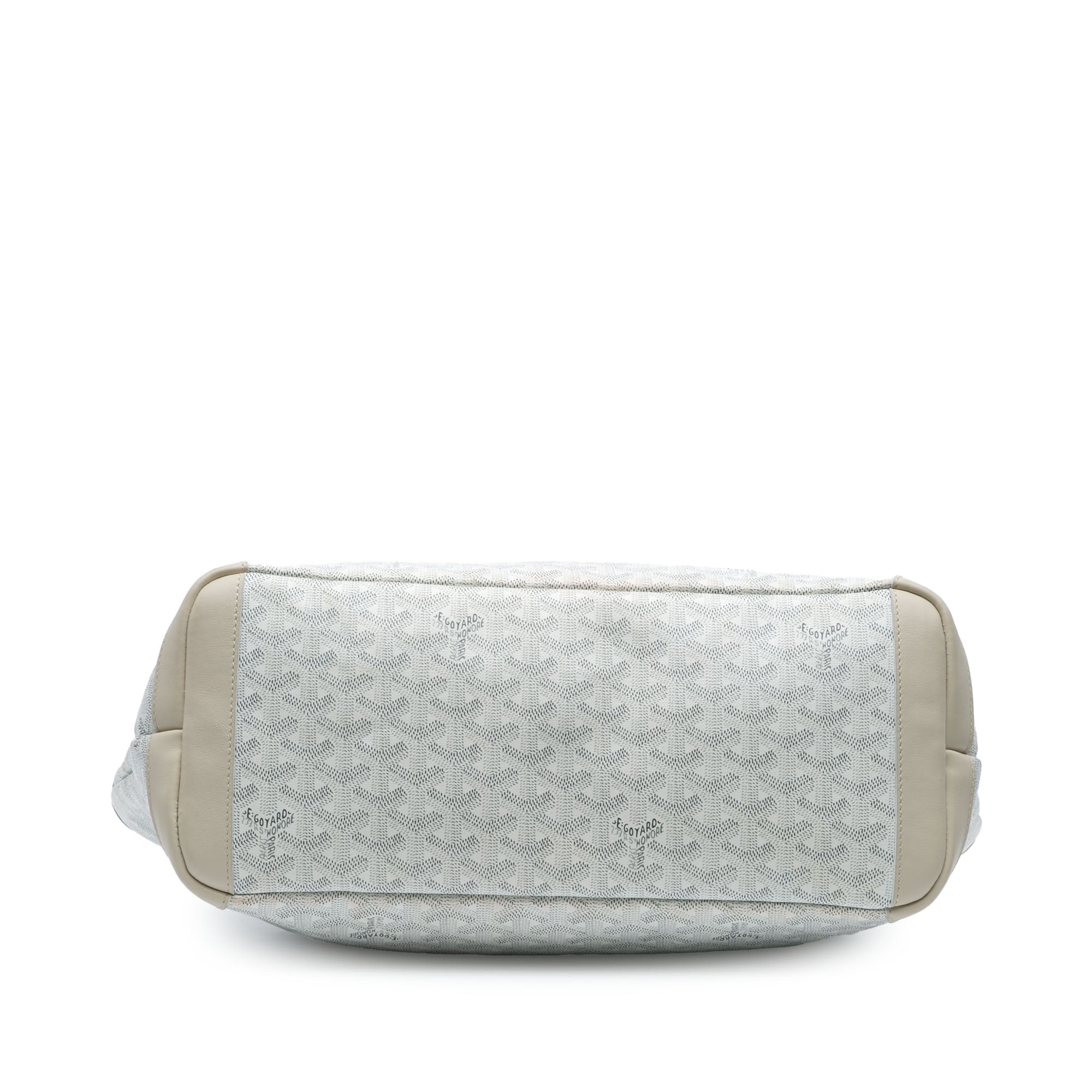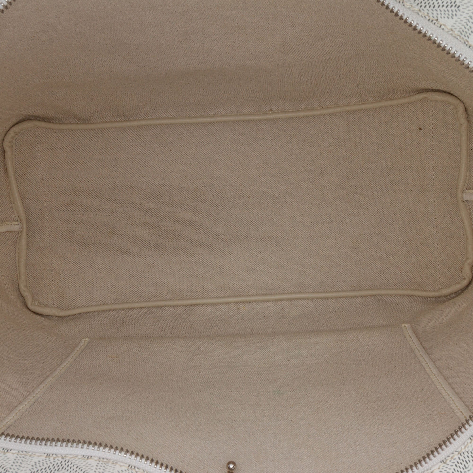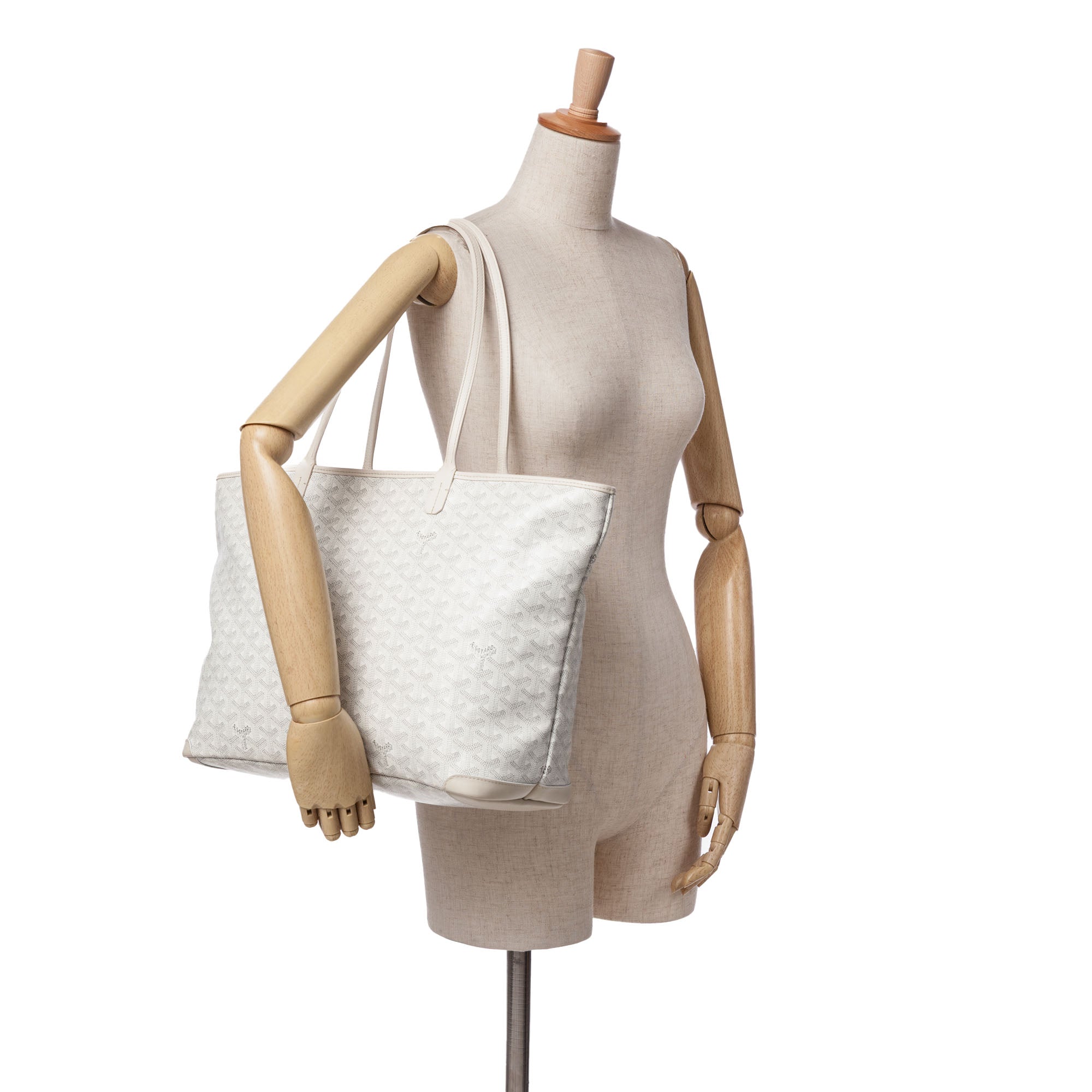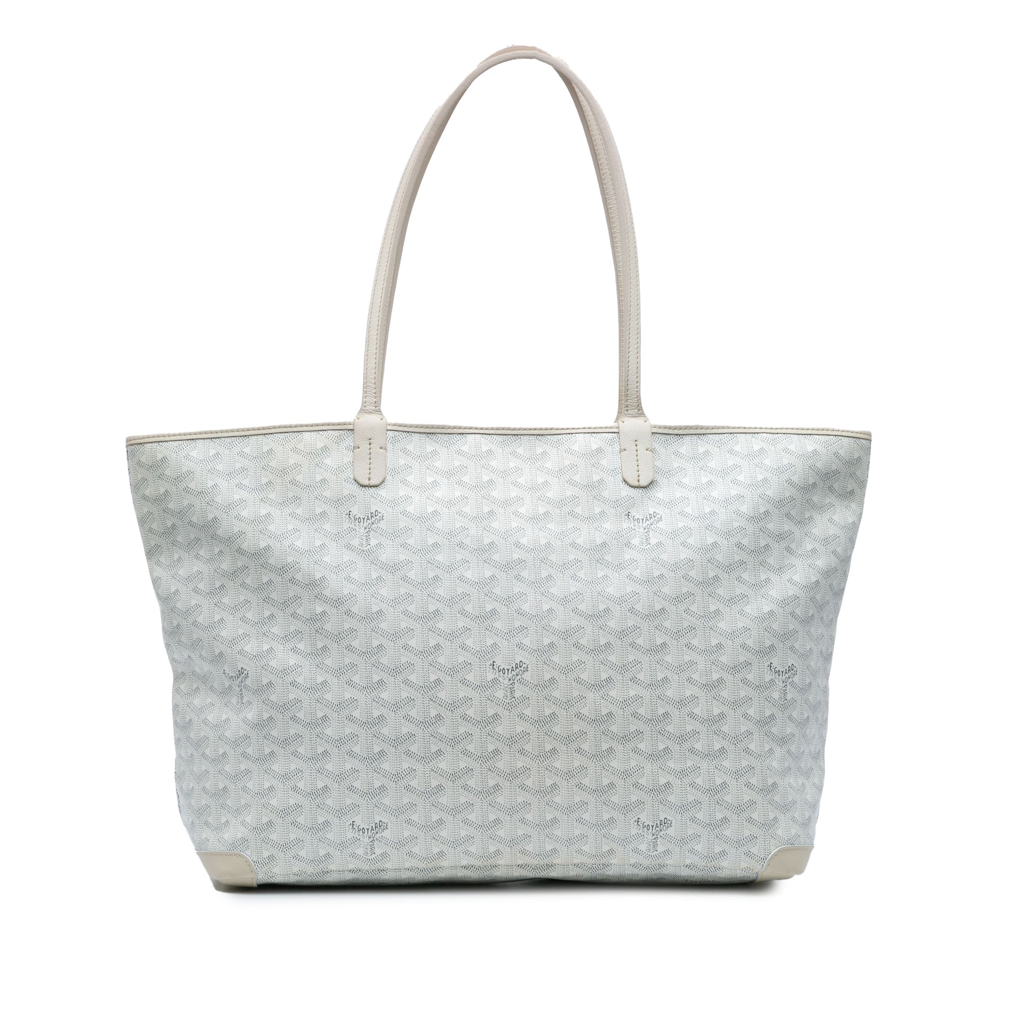 The Goyardine Artois PM features a coated canvas body with leather trim, flat leather straps, a top zip closure, and an interior zip pocket. Retail Price: 2190.00