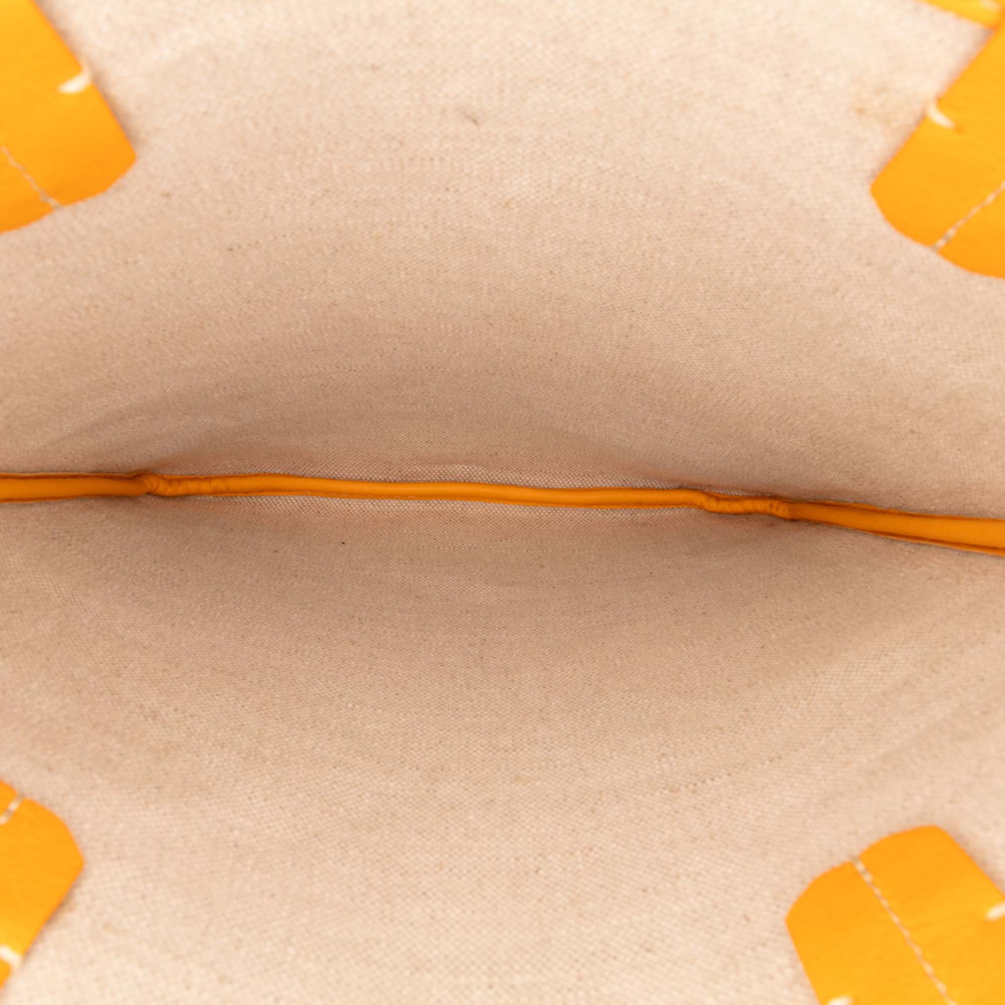 The Poitiers Tote bag features a coated canvas body with leather trim, flat leather handles, and an open top. Retail Price: 2950.00