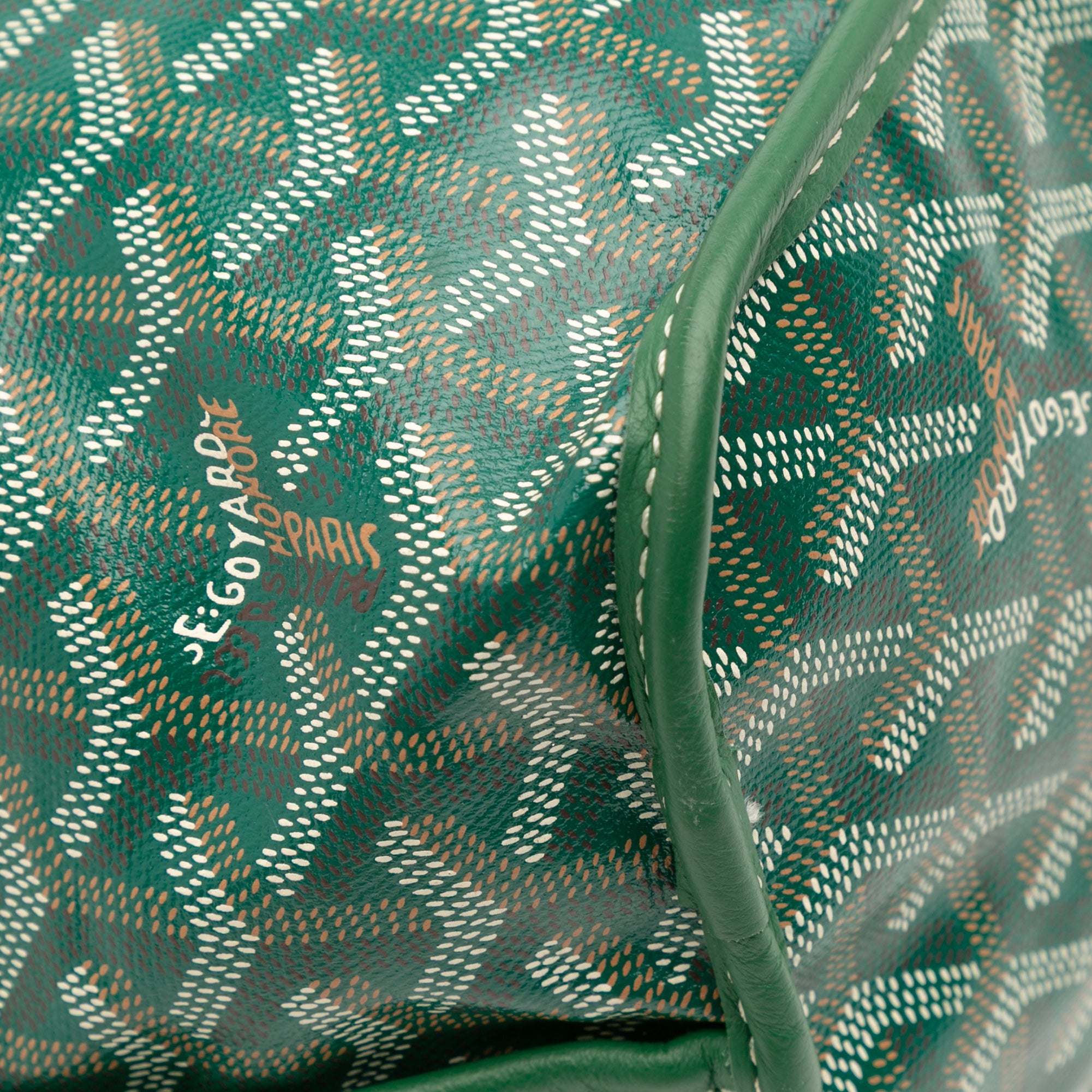 The Anjou PM features a reversible coated canvas body with leather trim, flat leather straps, an open top, and an interior pouch. Retail Price: 3123.00