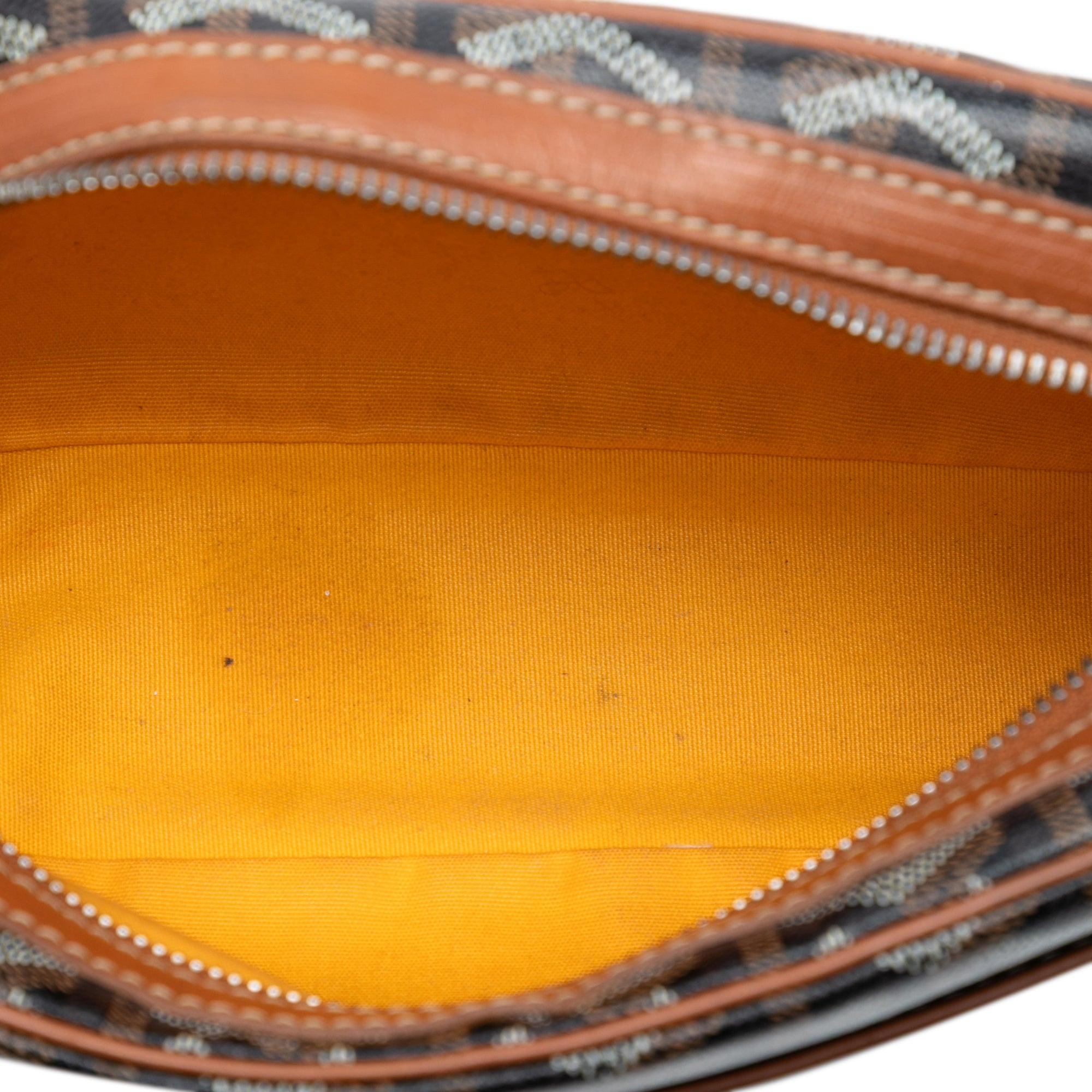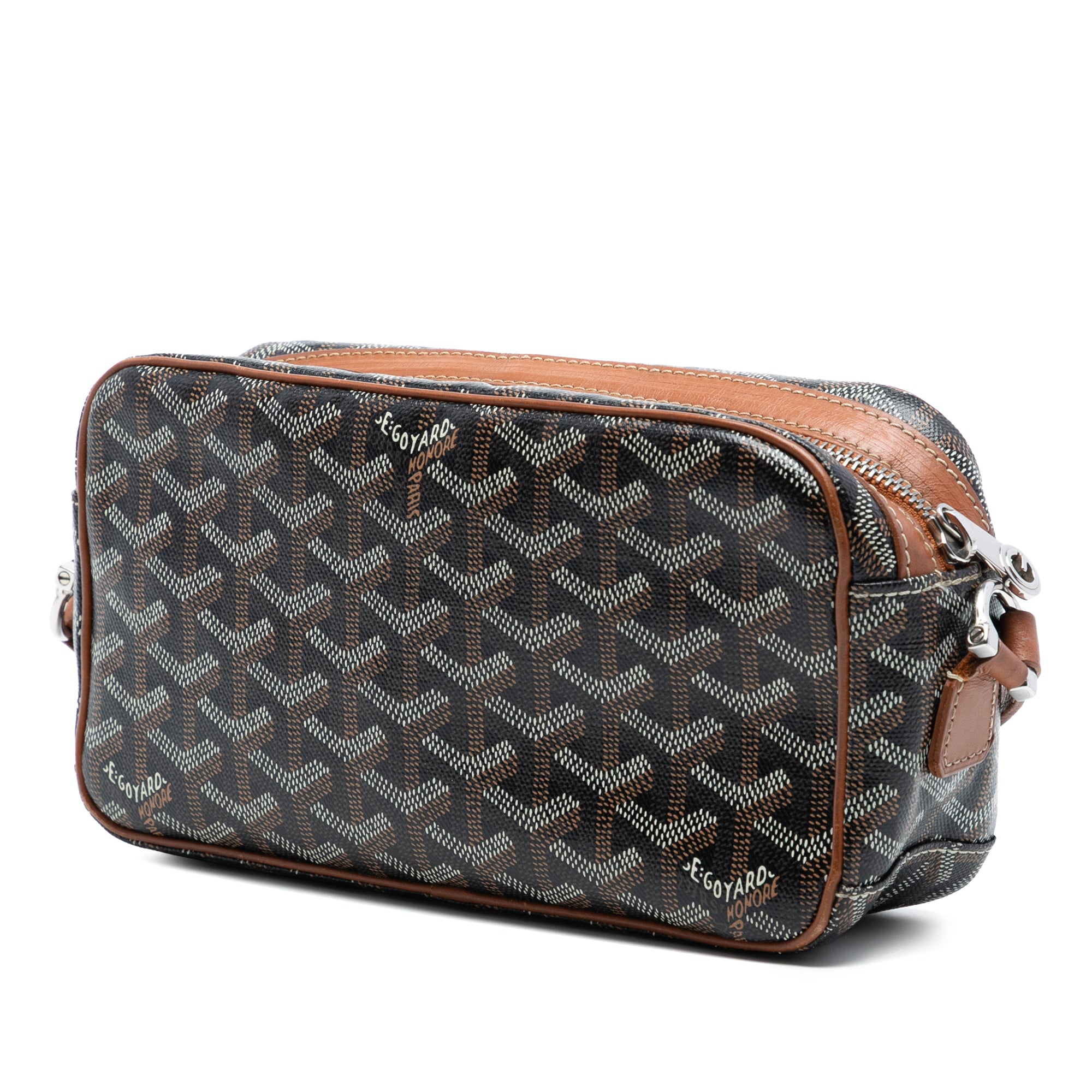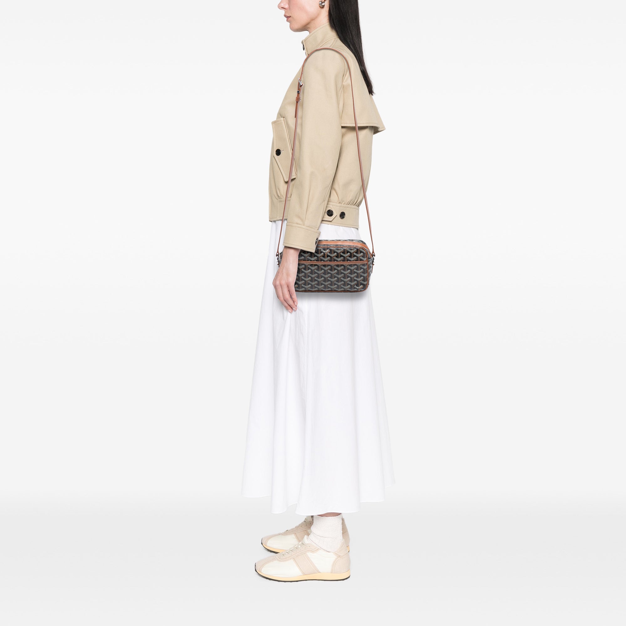 The Sac Cap Vert features a coated canvas body with leather trim, an adjustable flat leather shoulder strap, a top zip closure, an exterior front slip pocket, and an interior slip pocket. Retail Price: 2070.00