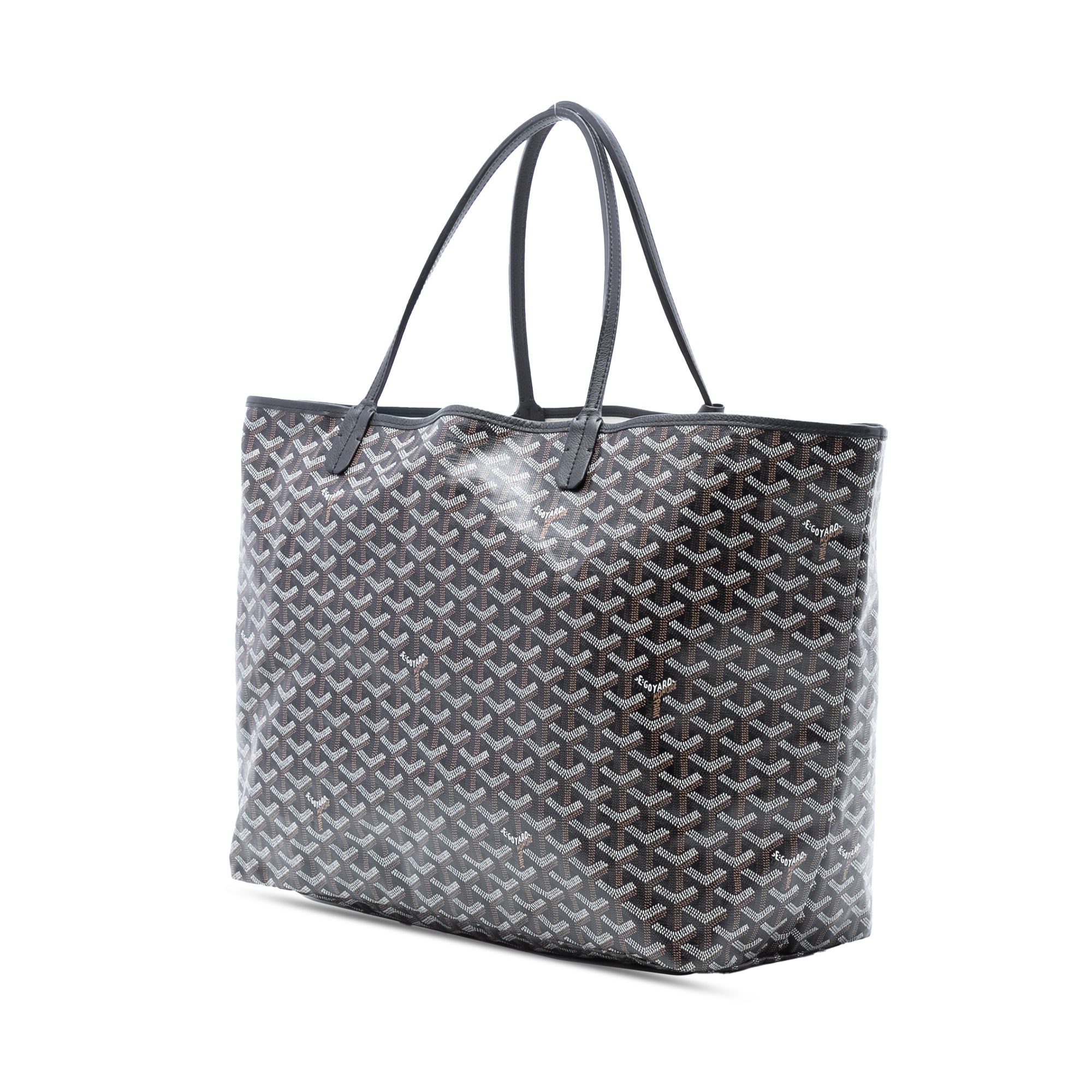 The Saint Louis GM features a coated canvas body with leather trim, flat leather handles, an open top, and a pouch inclusion. Retail Price: 3500.00